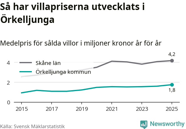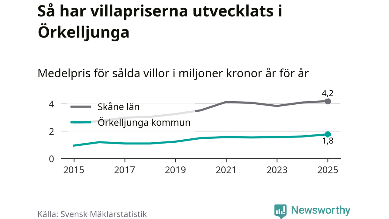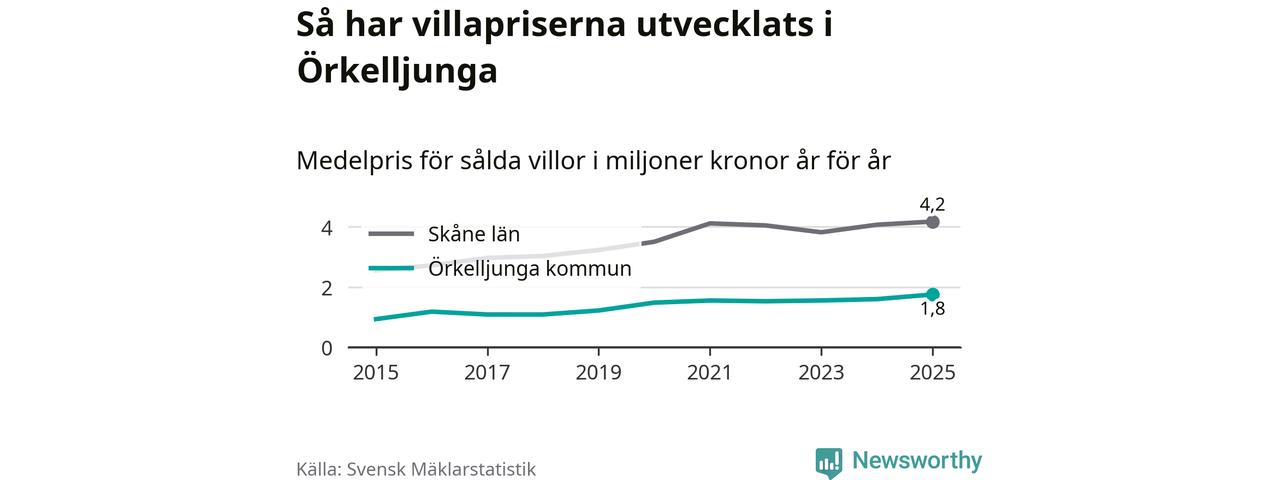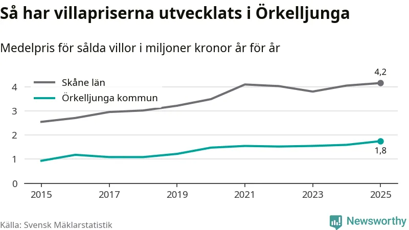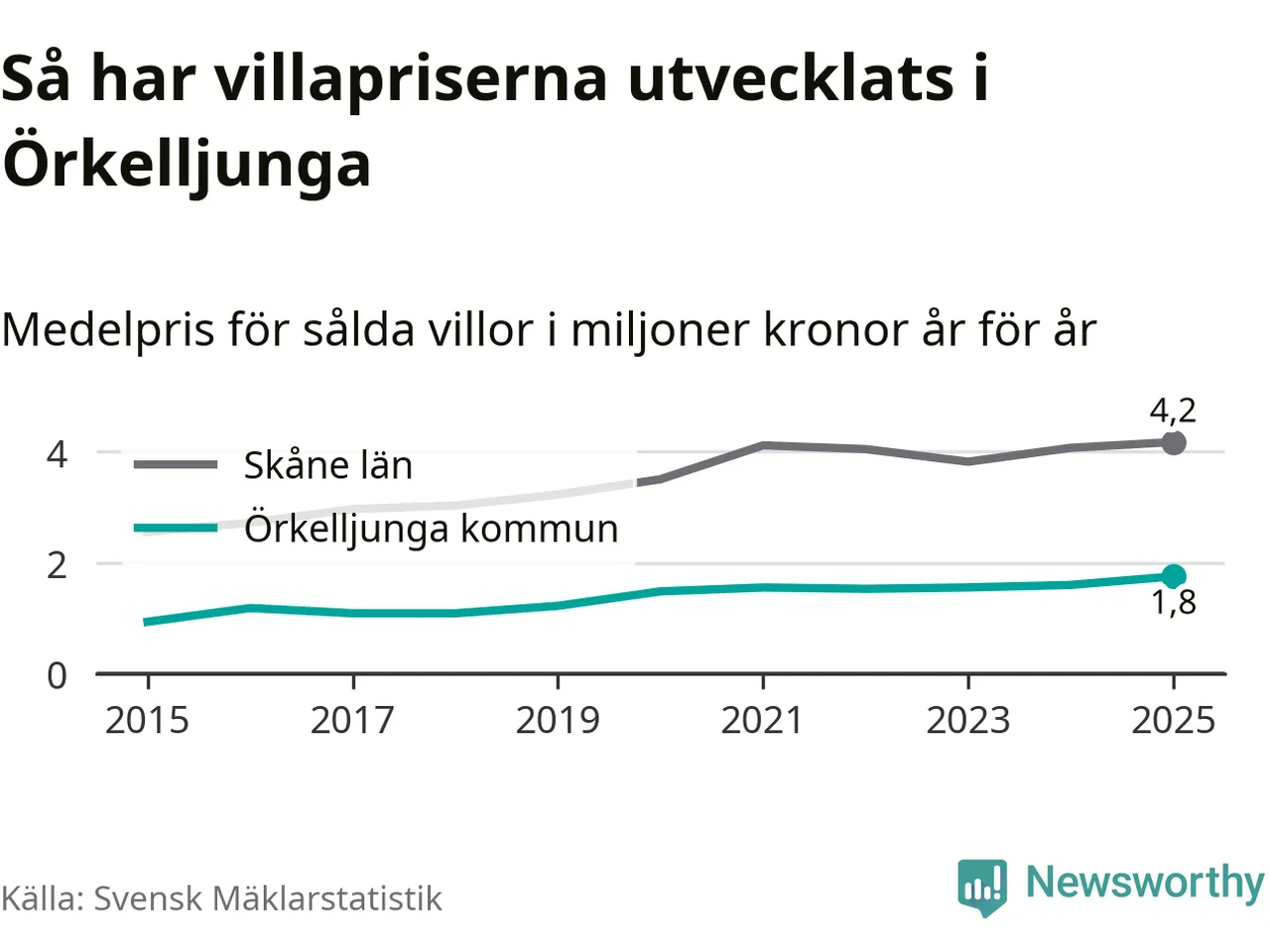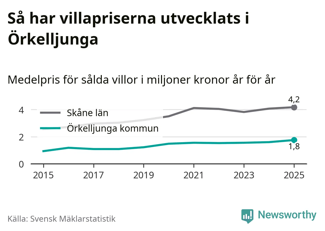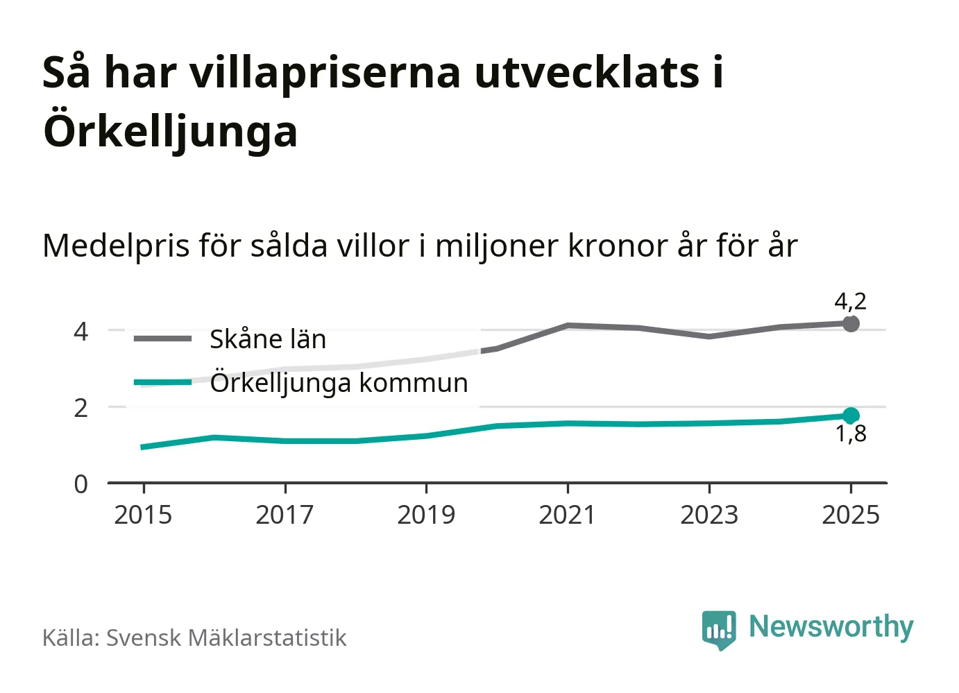 Bostadsmarknaden i Sverige närmar sig nivån före räntesmockan 2022. I Örkelljunga nådde priserna på villor en ny rekordnivå.