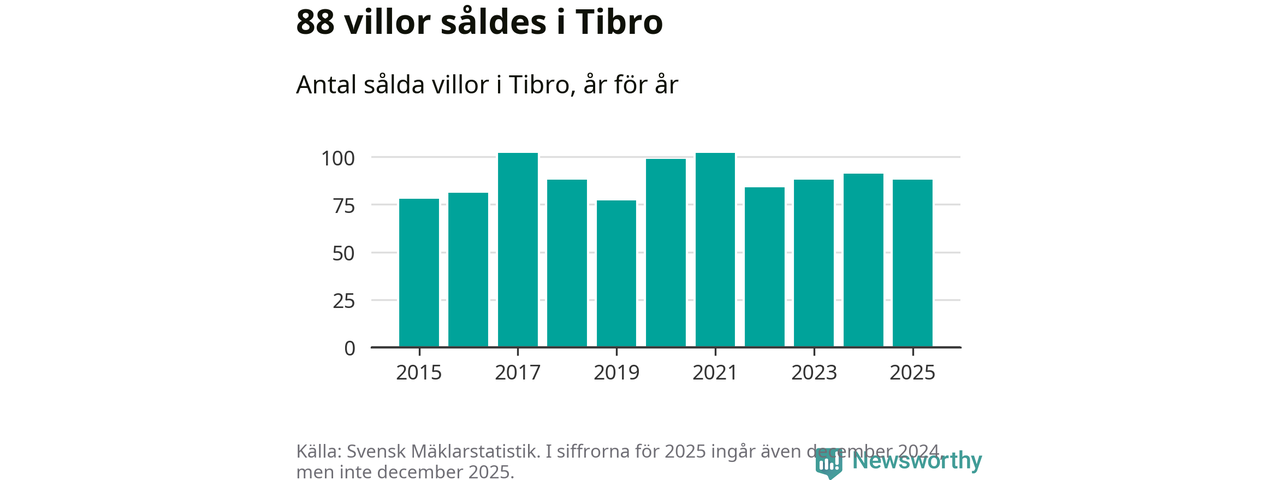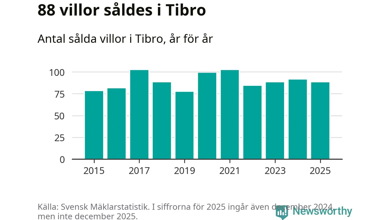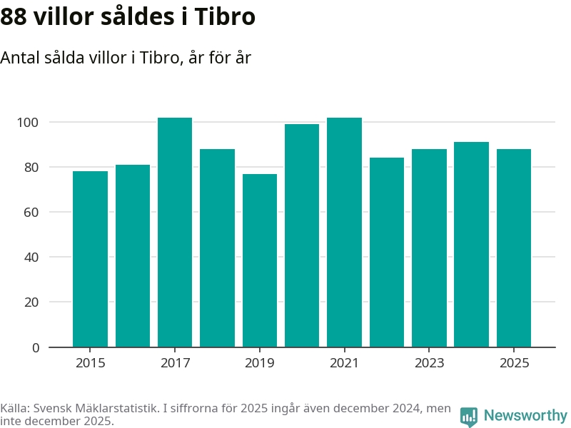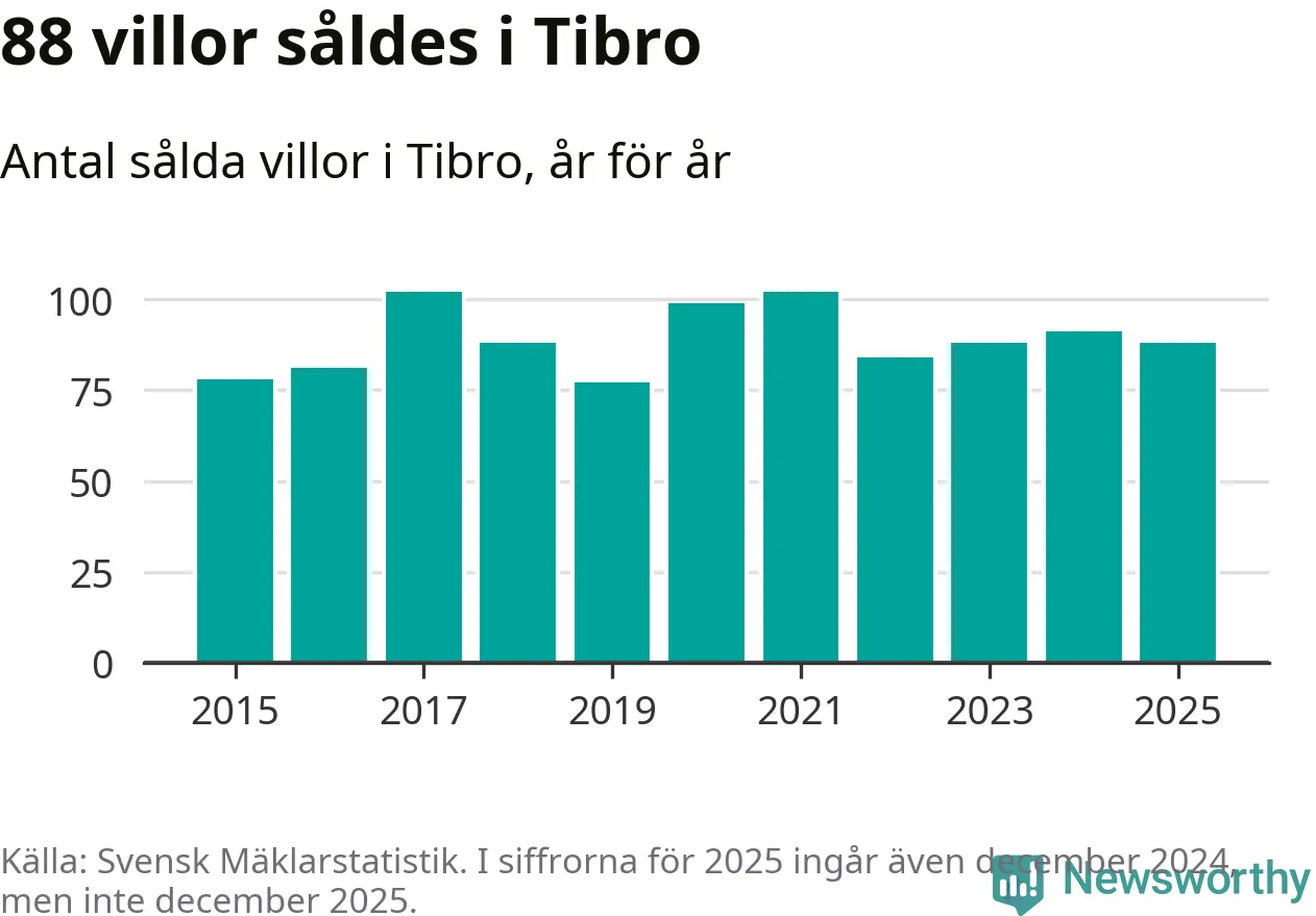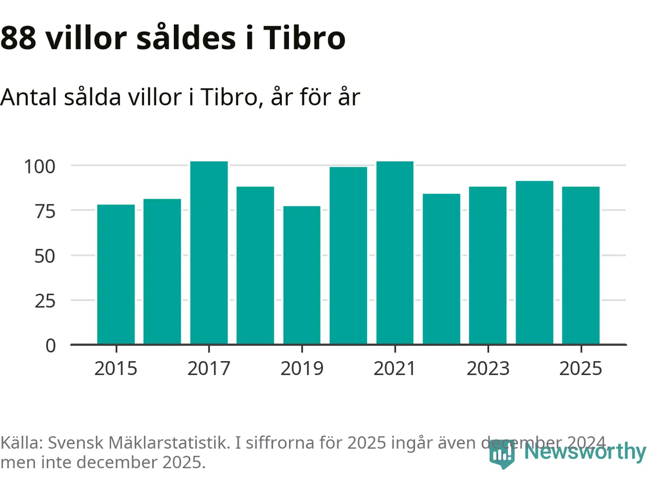 Däremot minskade antalet sålda villor något. Totalt såldes 88 villor, att jämföra med 91 under 2024.