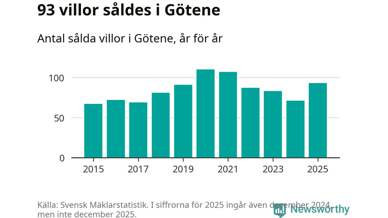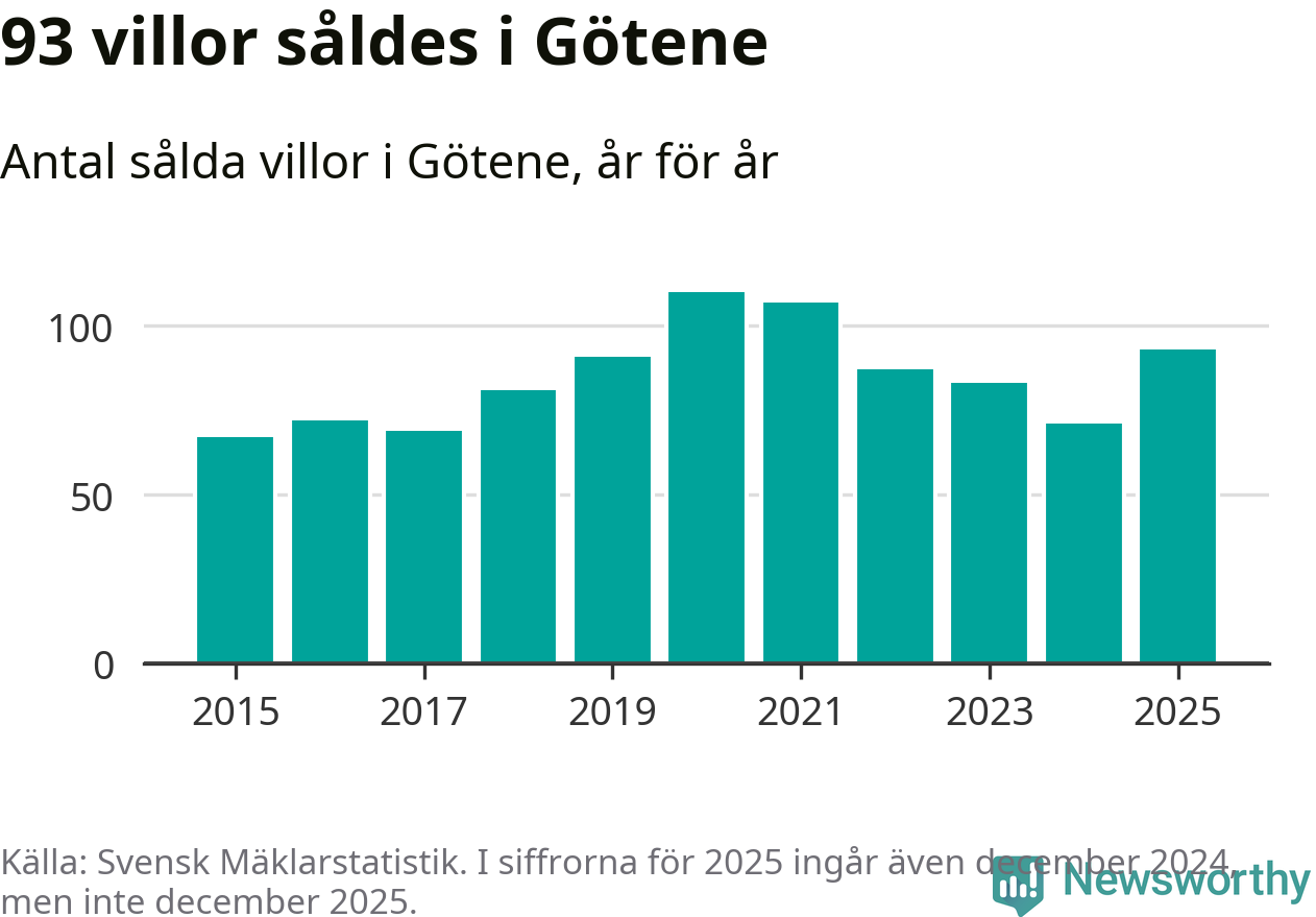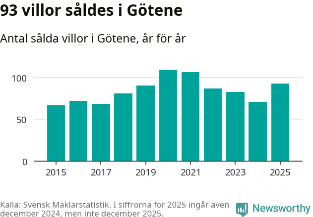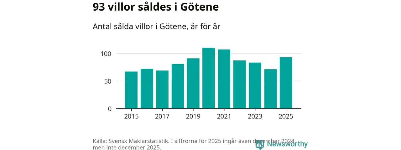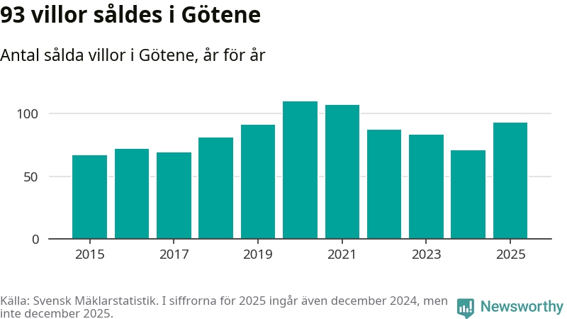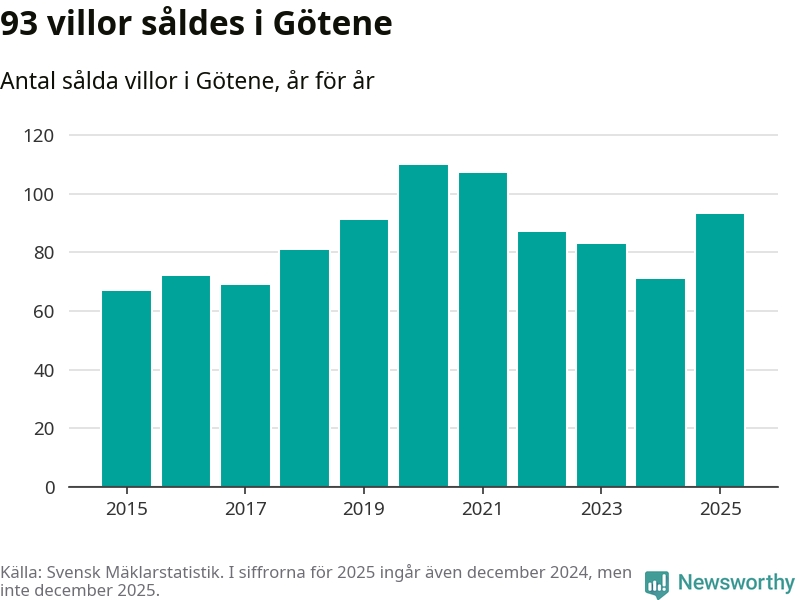 Antalet sålda villor ökade också. Totalt såldes 93 villor, att jämföra med 71 under 2024.