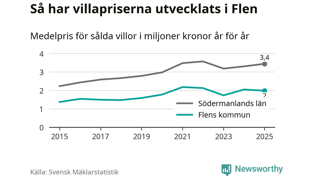 Bostadsmarknaden i Sverige närmar sig nivån före räntesmockan 2022. Men i Flen såldes färre villor än på över ett decennium.