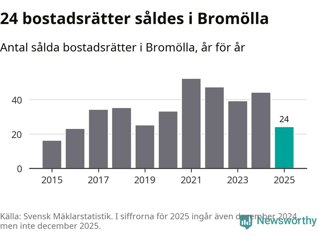 Det visar årsstatistik från Svensk Mäklarstatistik som Newsworthy har sammanställt.