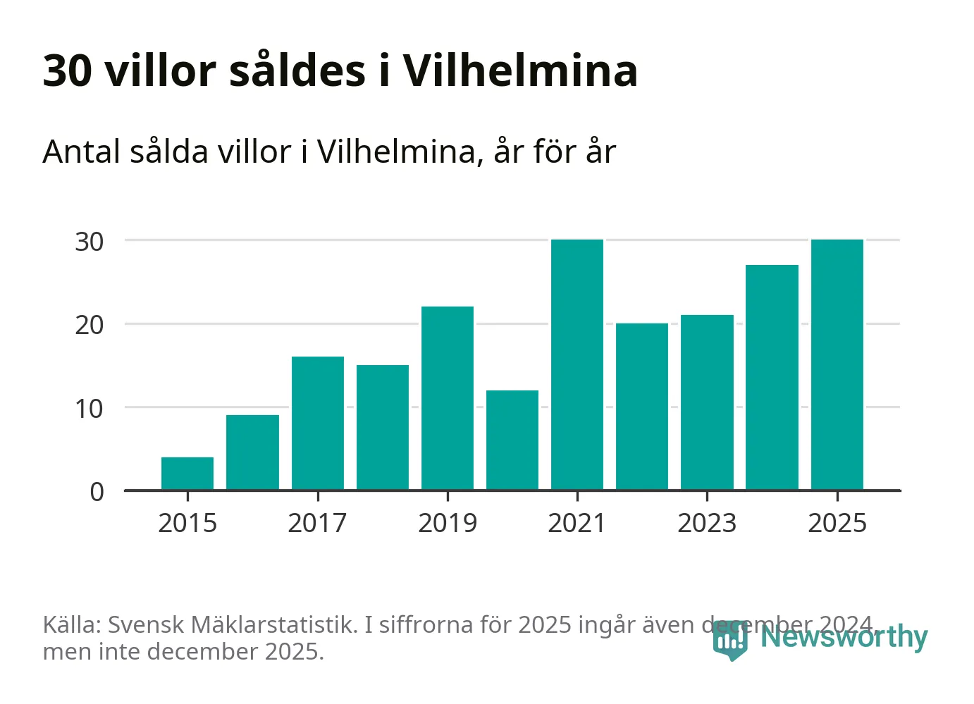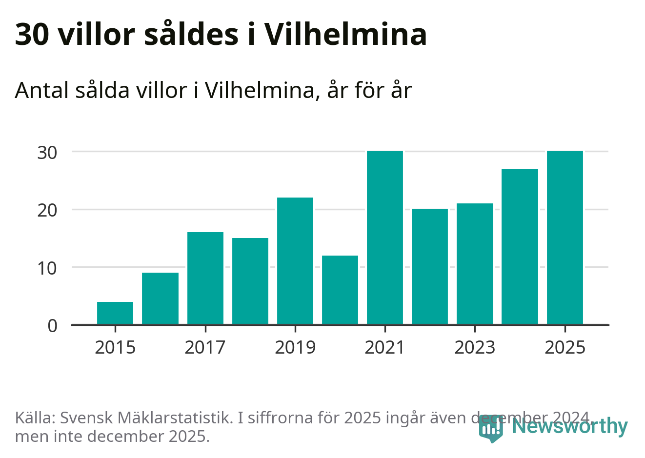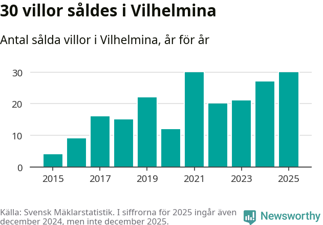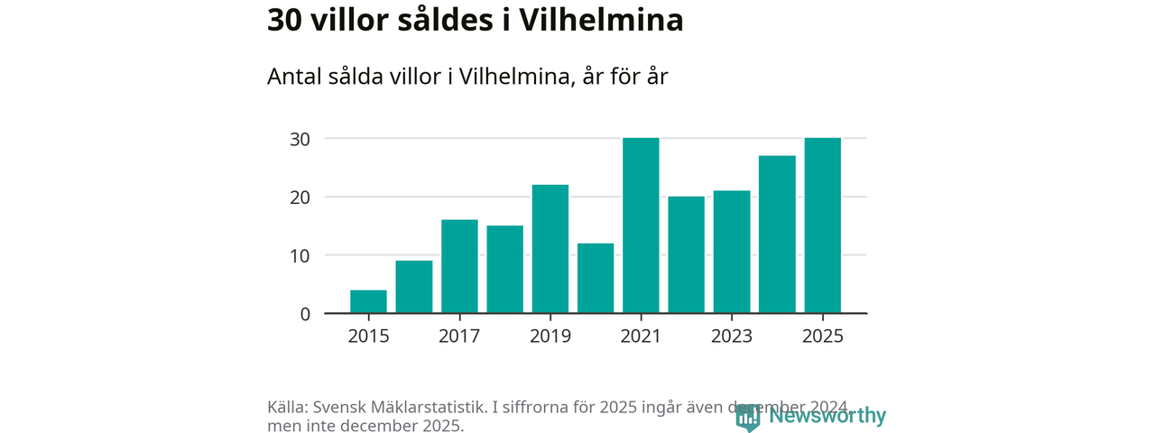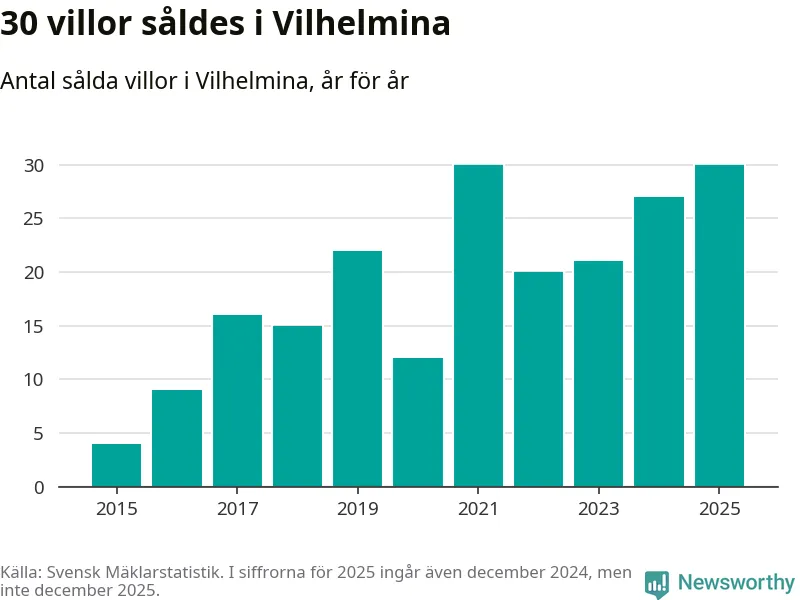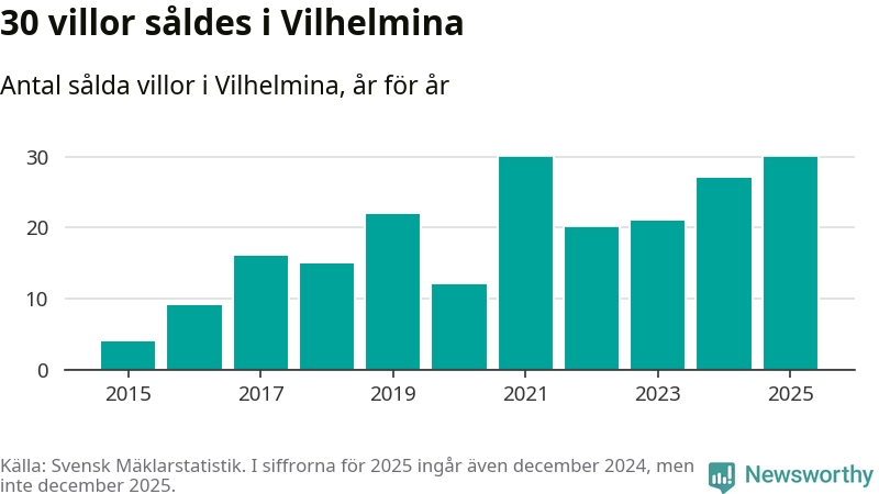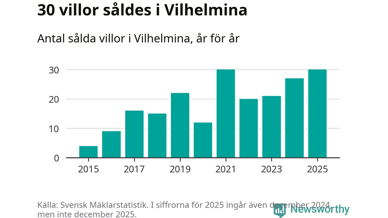 Antalet sålda villor ökade också något. Totalt såldes 30 villor, att jämföra med 27 under 2024. Det är tredje året i rad som antalet sålda villor ökar i kommunen.