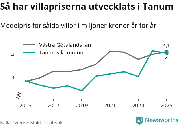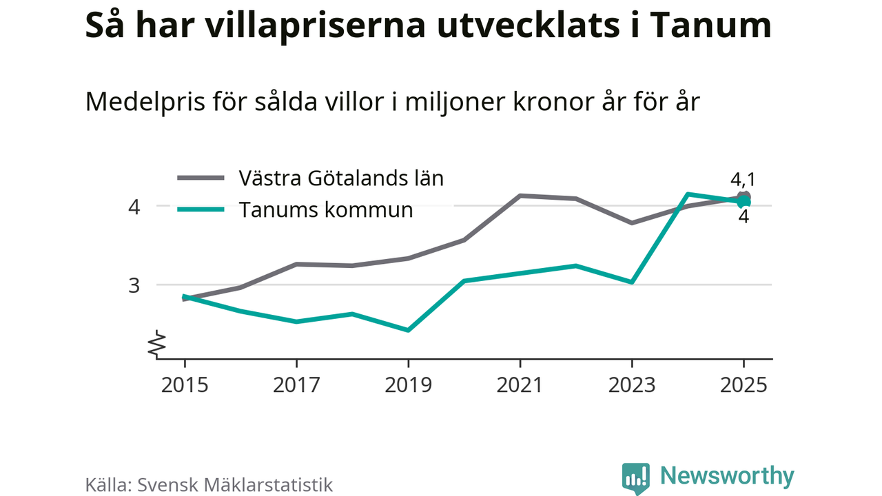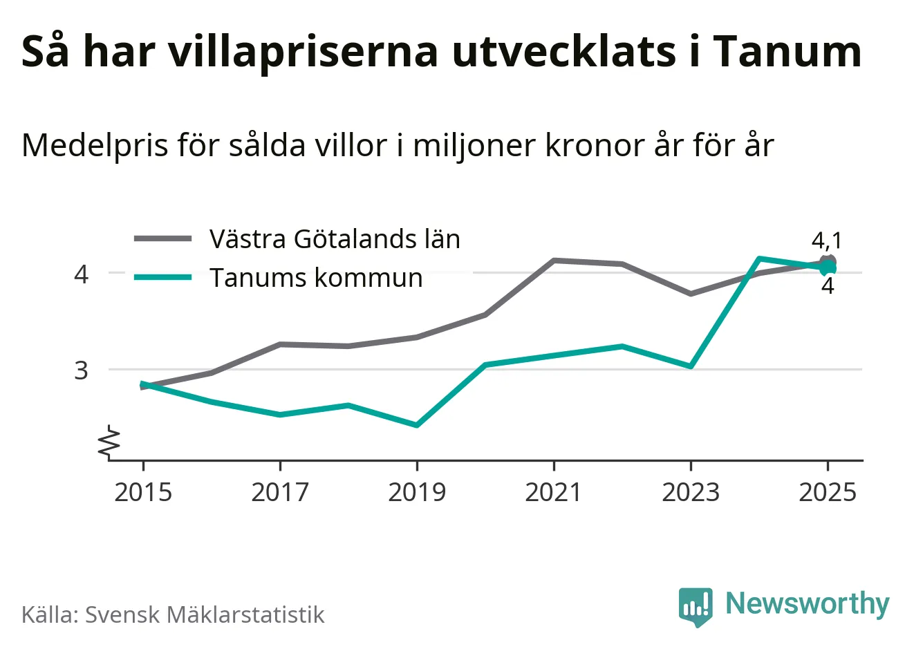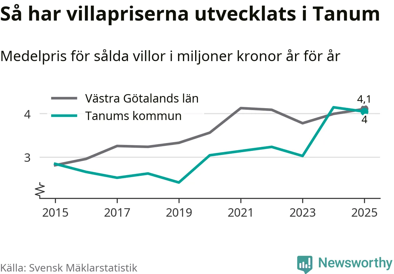 Bostadsmarknaden i Sverige närmar sig nivån före räntesmockan 2022. I Tanum sjönk dock villapriserna.