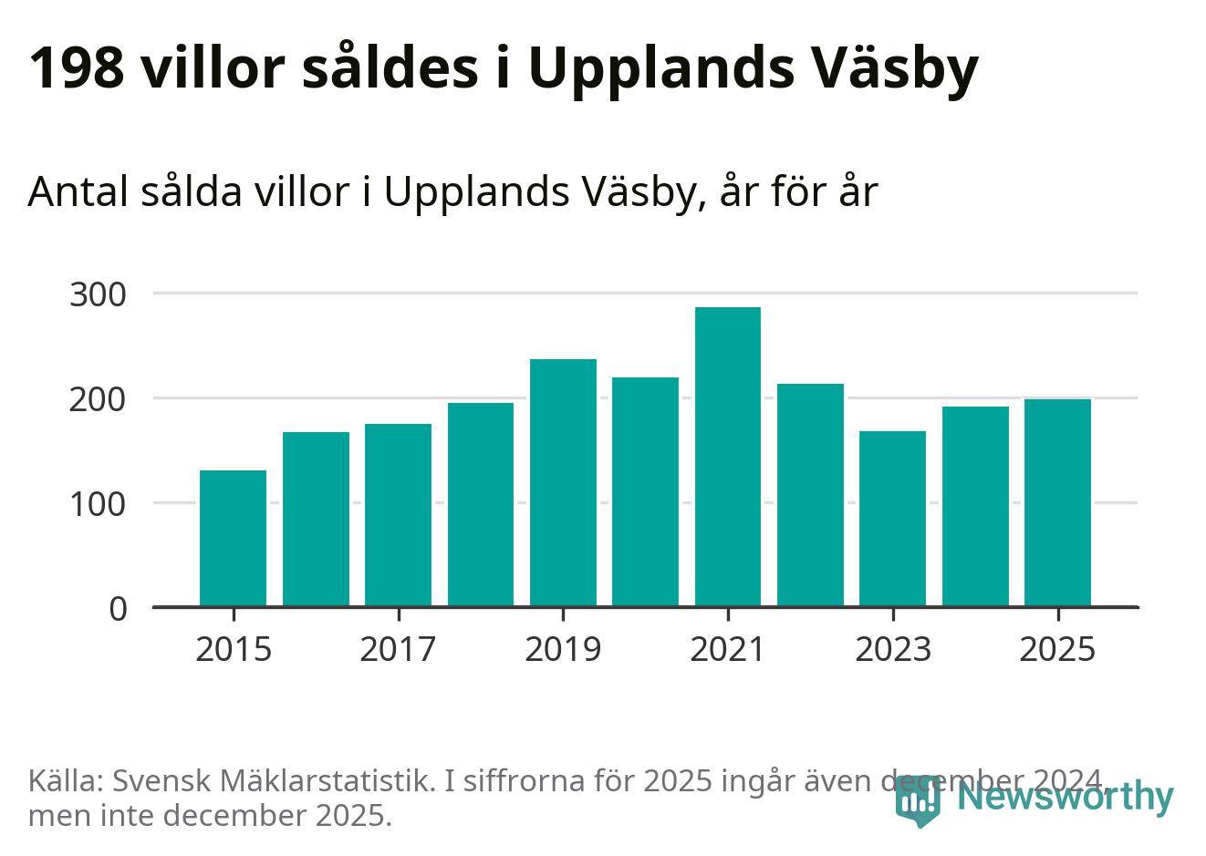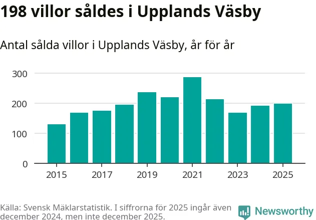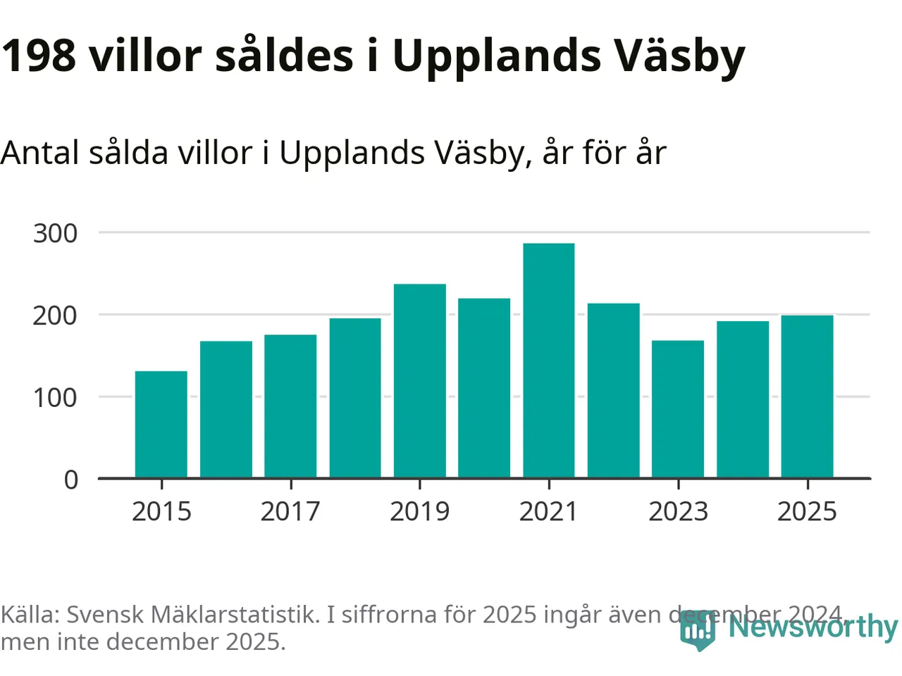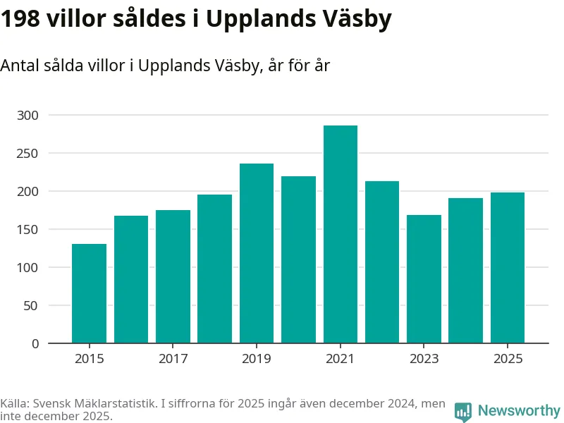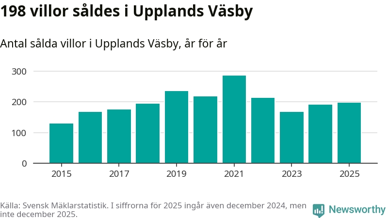 Antalet sålda villor ökade också. Totalt såldes 198 villor, att jämföra med 191 under 2024. Det är andra året i rad som antalet sålda villor ökar i kommunen.