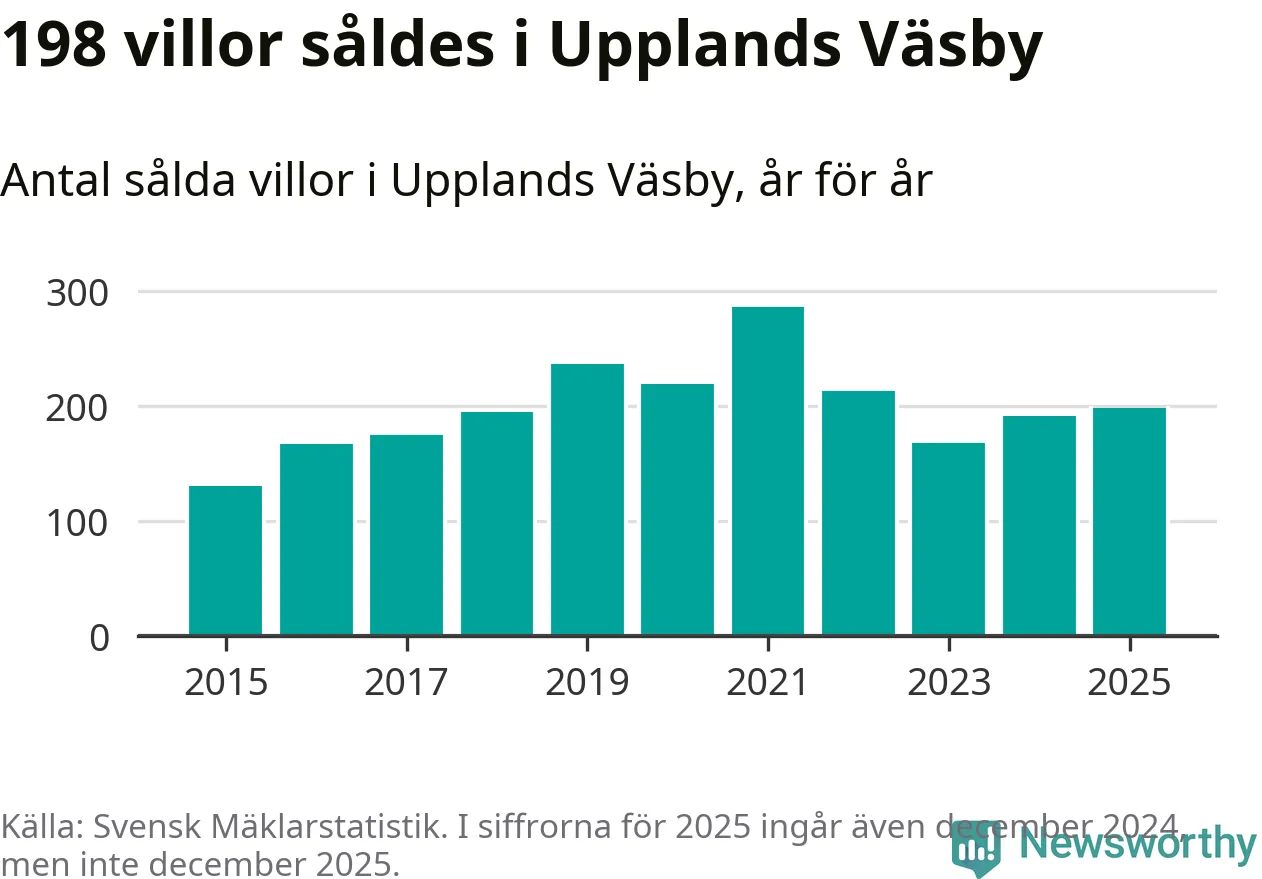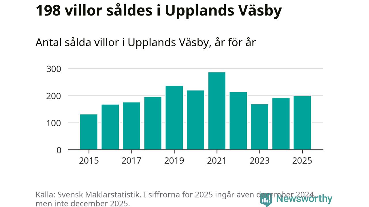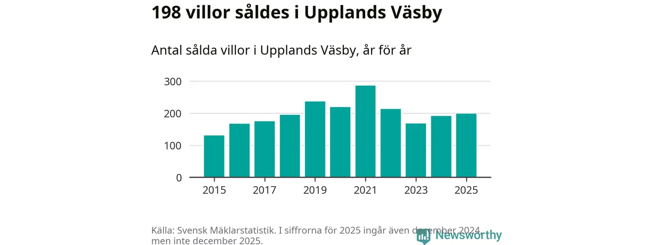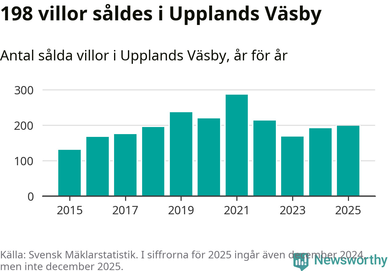 Antalet sålda villor ökade också. Totalt såldes 198 villor, att jämföra med 191 under 2024. Det är andra året i rad som antalet sålda villor ökar i kommunen.