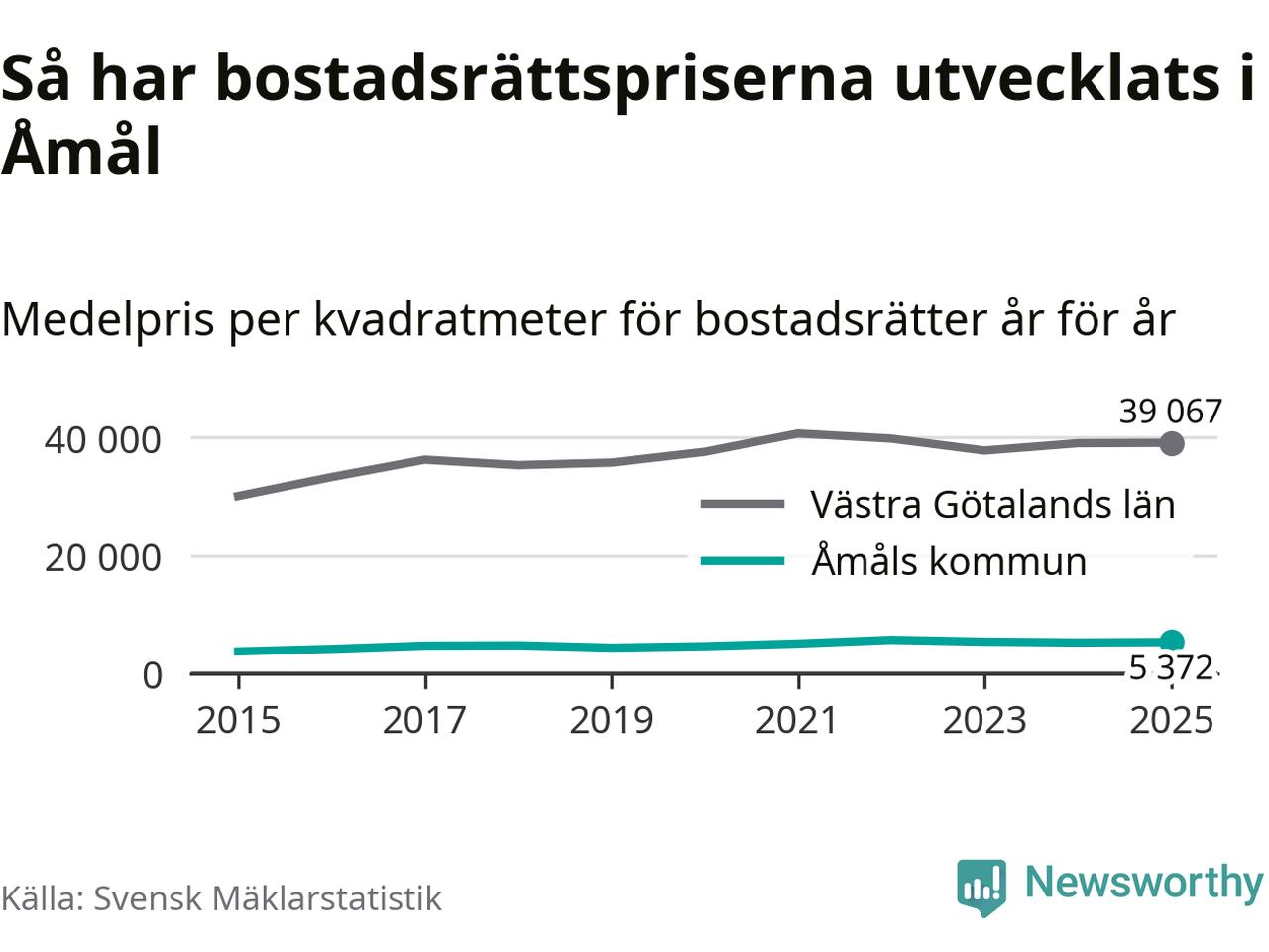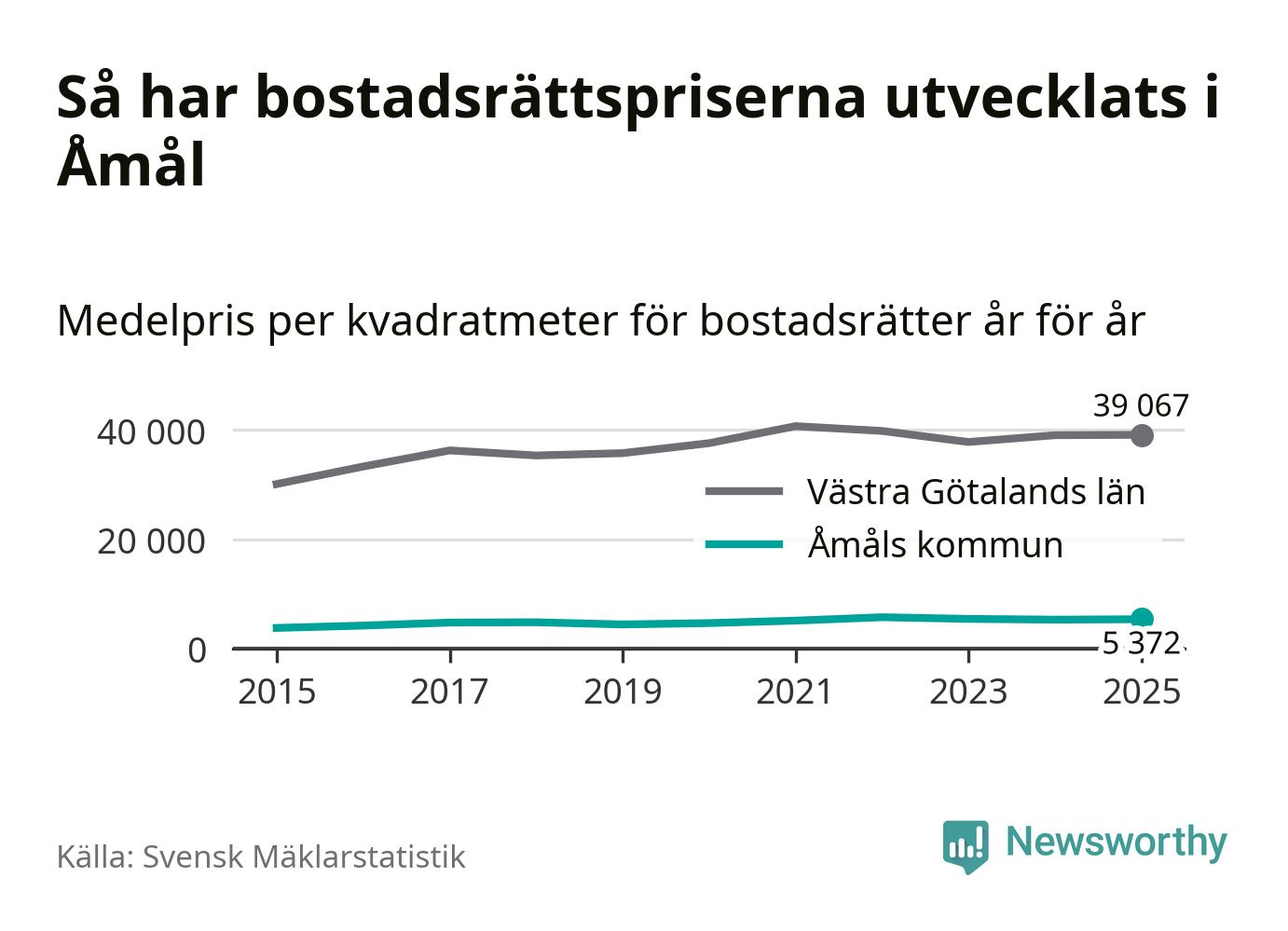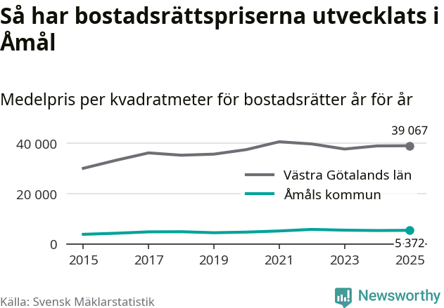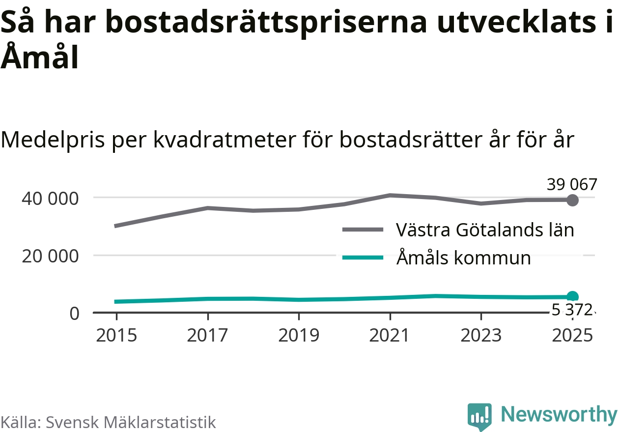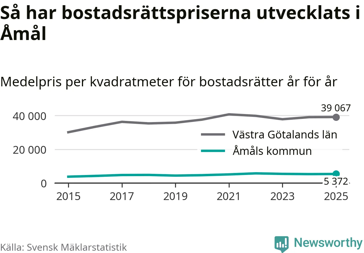 Det såldes totalt 55 bostadsrätter i Åmåls kommun under året. Det är färre än något annat år sedan 2015. Genomsnittspriset per kvadratmeter landade på 5 372 kronor. Det är en ökning med en procent i kommunen på ett år.