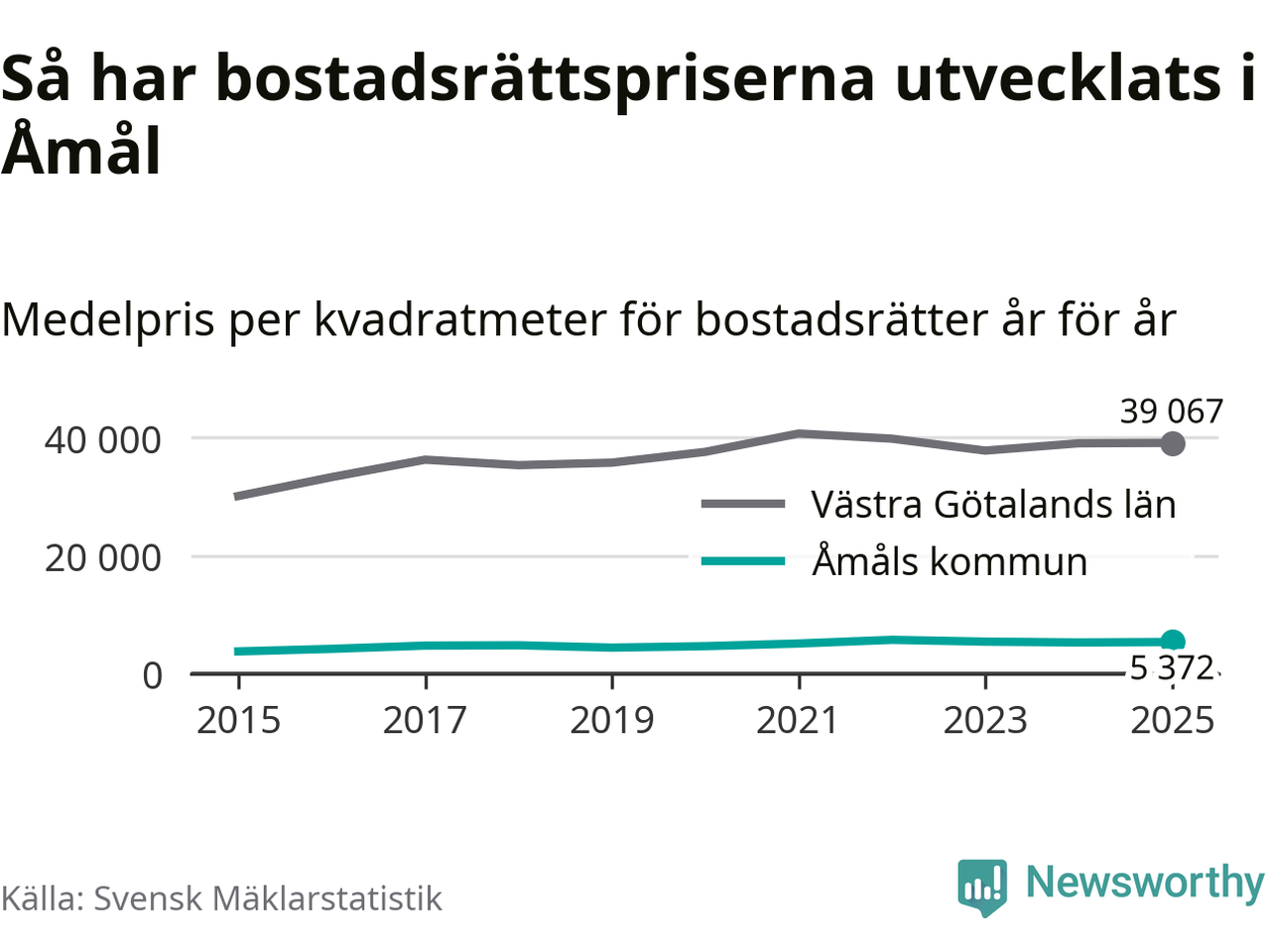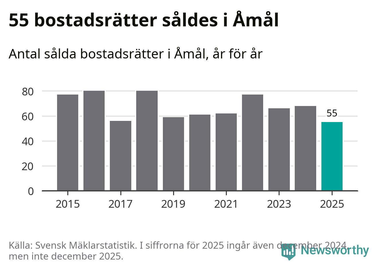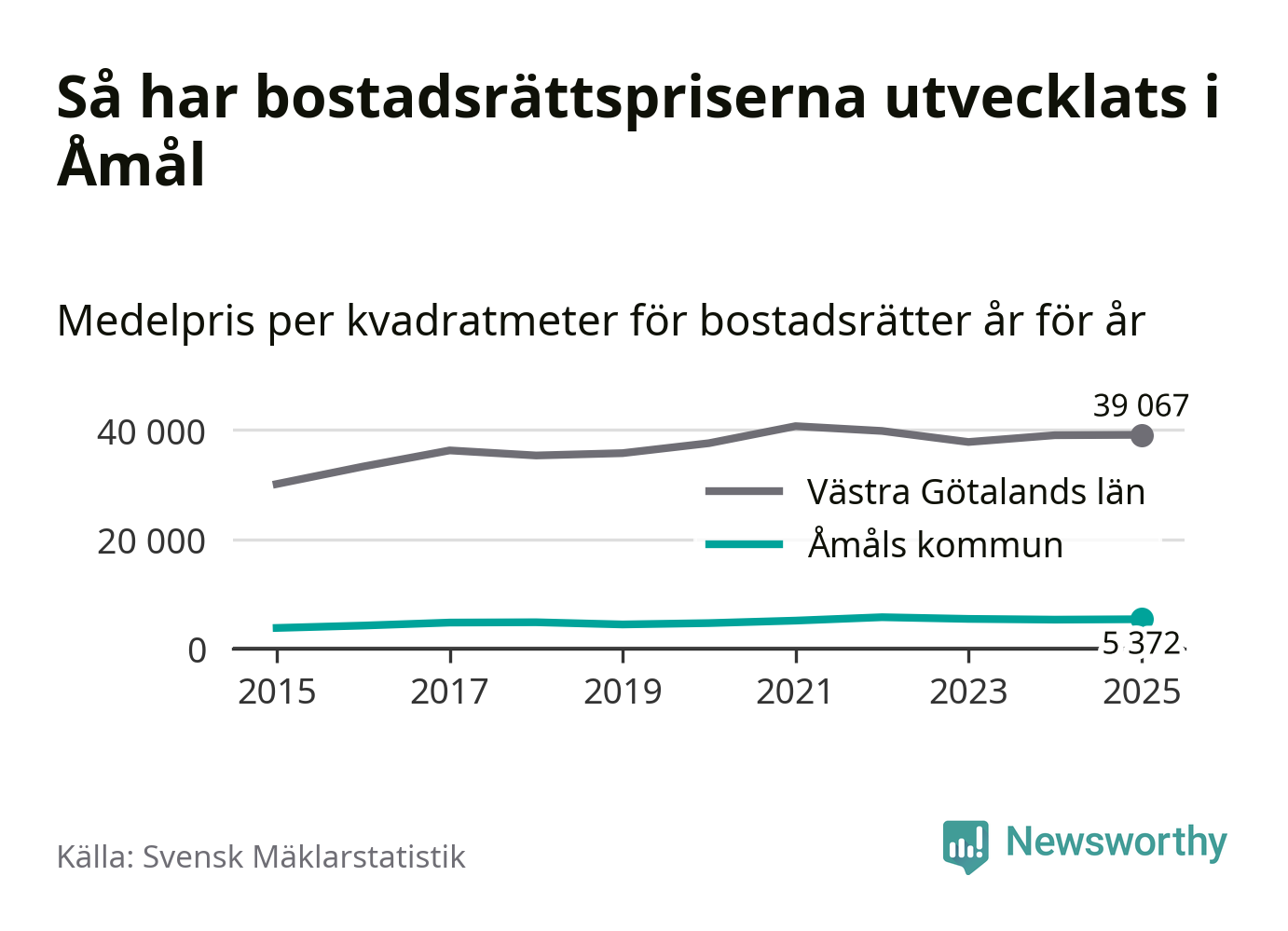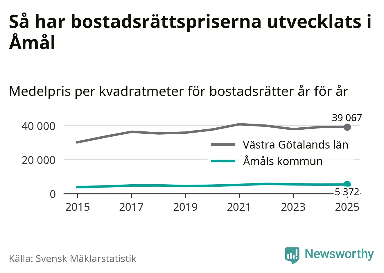 Det såldes totalt 55 bostadsrätter i Åmåls kommun under året. Det är färre än något annat år sedan 2015. Genomsnittspriset per kvadratmeter landade på 5 372 kronor. Det är en ökning med en procent i kommunen på ett år.