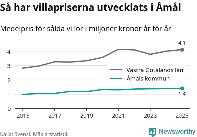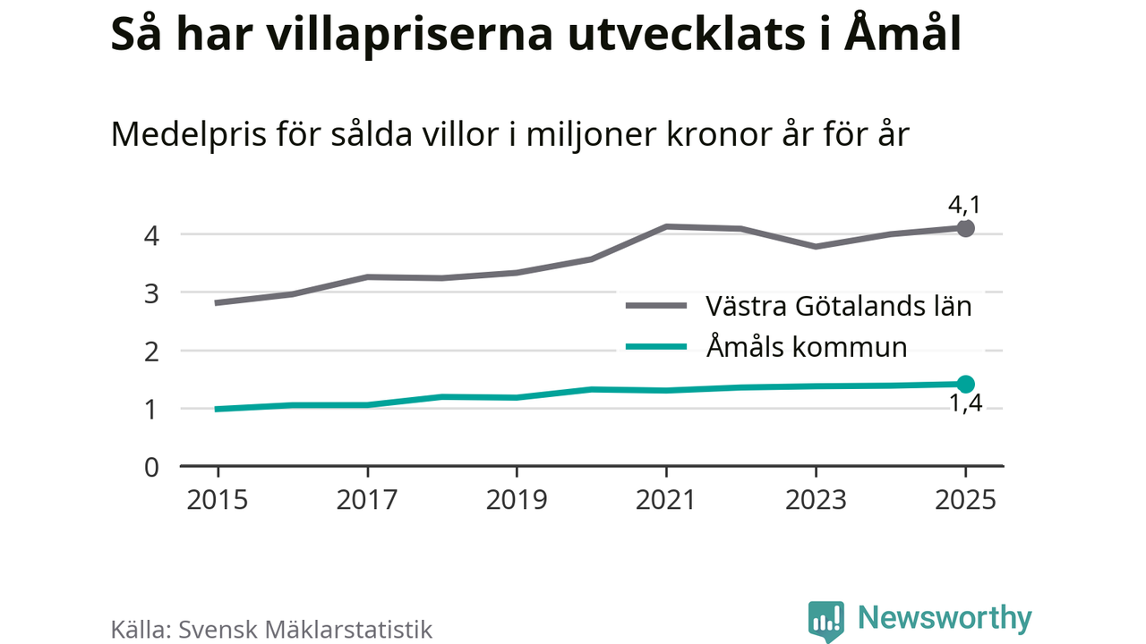 Bostadsmarknaden i Sverige närmar sig nivån före räntesmockan 2022. I Åmål nådde priserna på villor en ny rekordnivå.