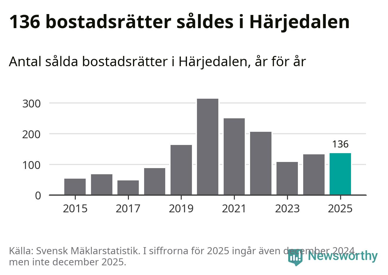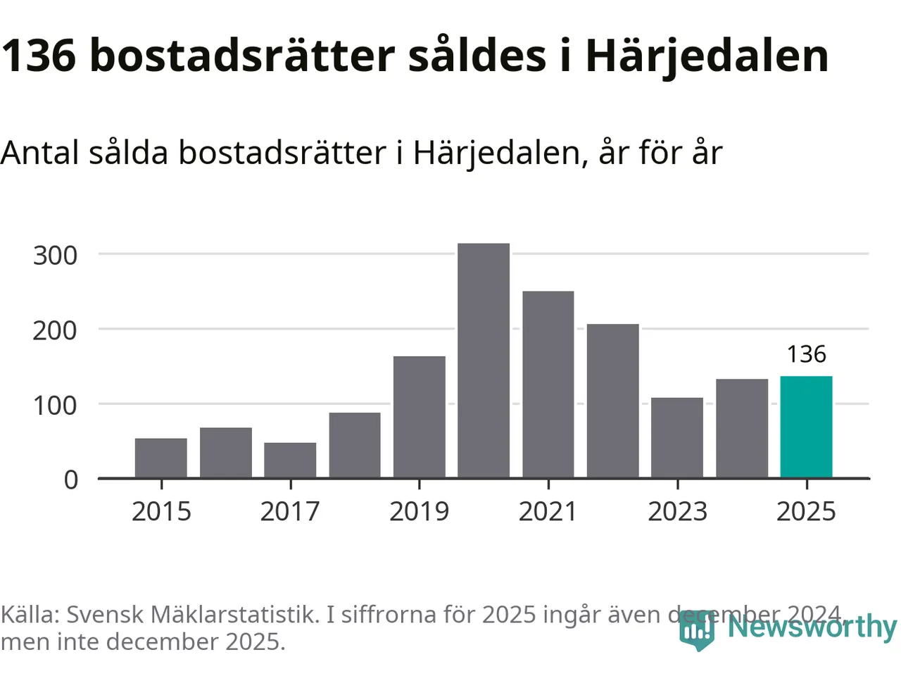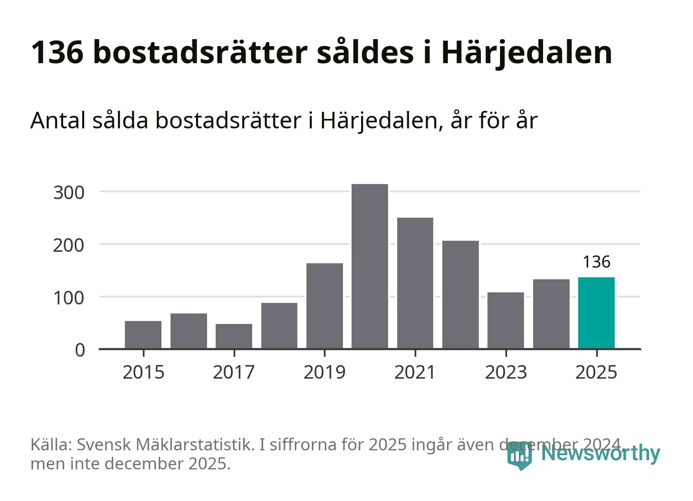 Det visar årsstatistik från Svensk Mäklarstatistik som Newsworthy har sammanställt.