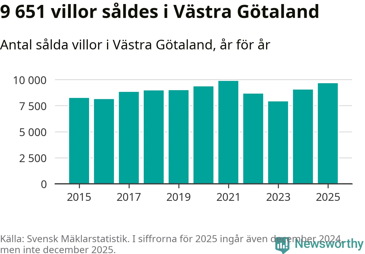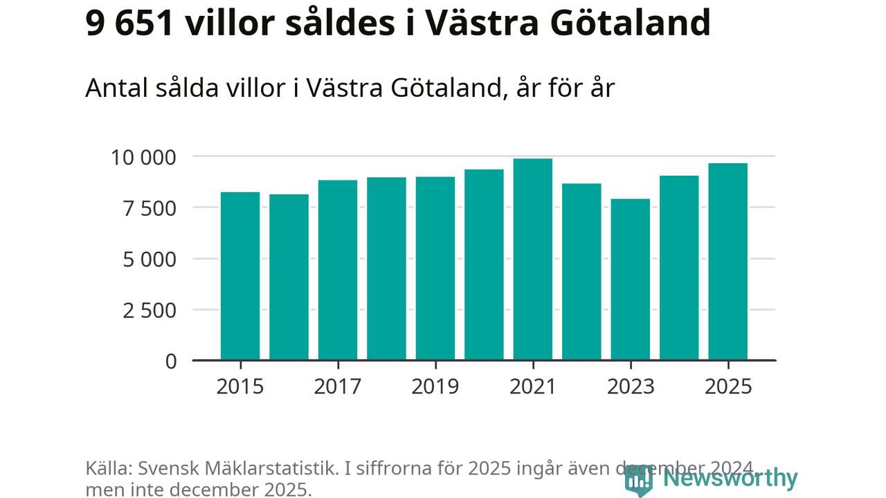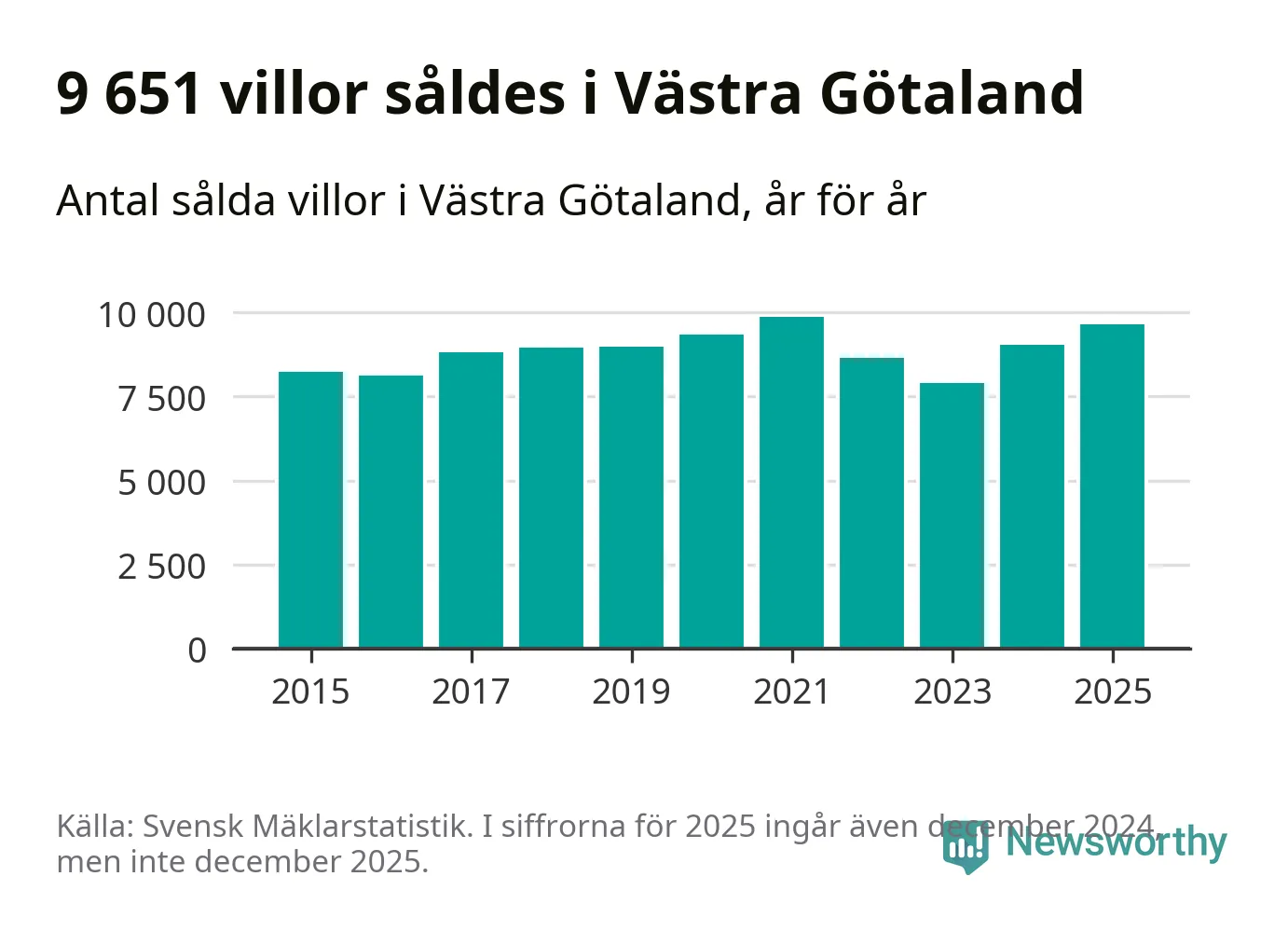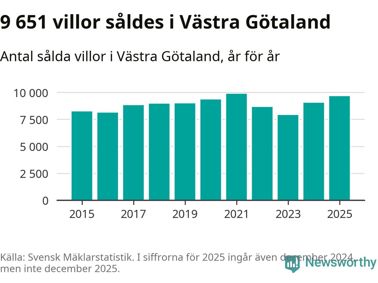 Totalt såldes 59 375 villor i hela Sverige under 2025, vilket är 3 020 fler än året före. Villapriserna ökade också överlag med tre procent i riket som helhet.