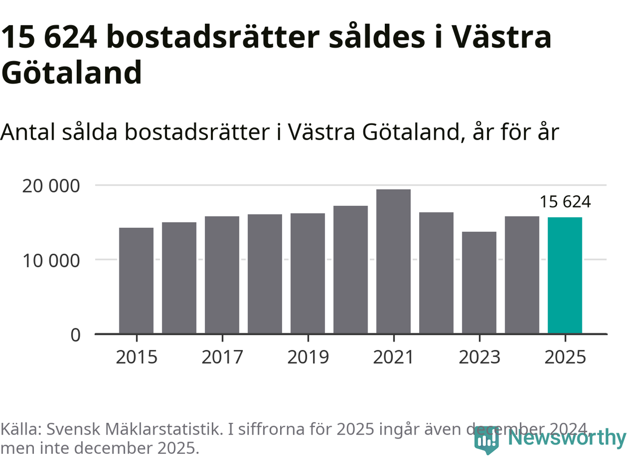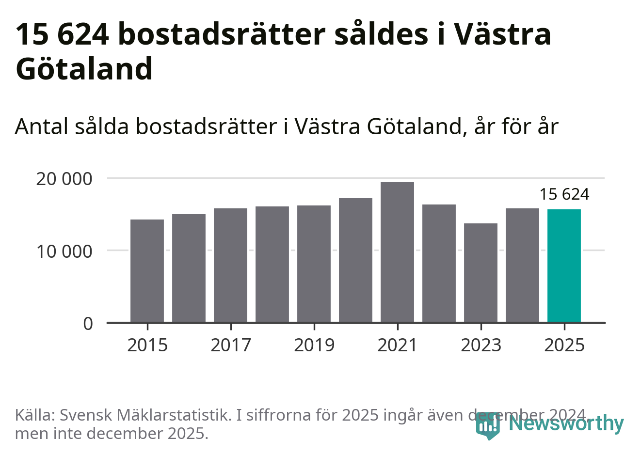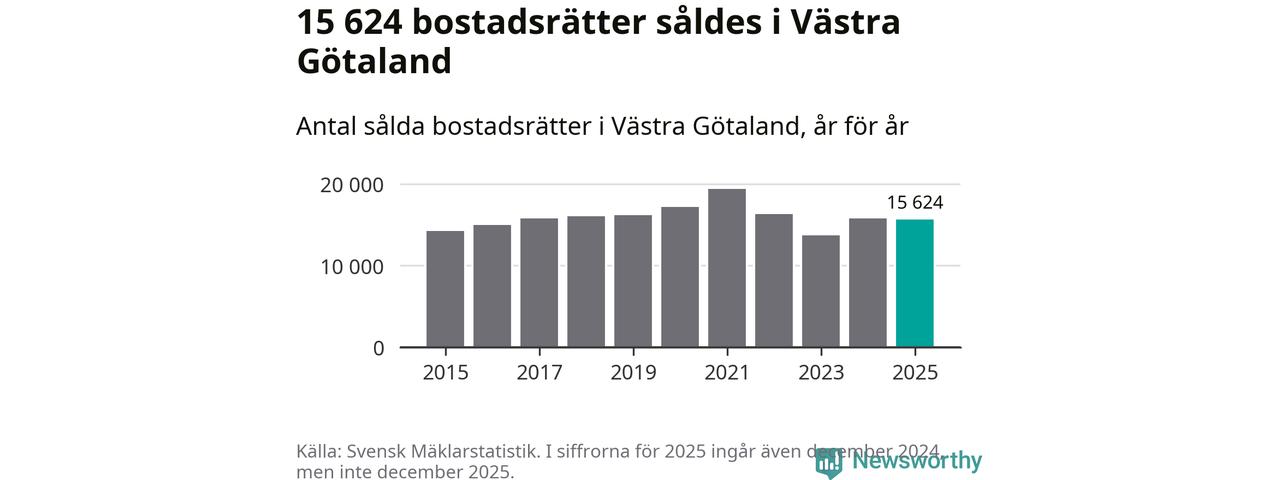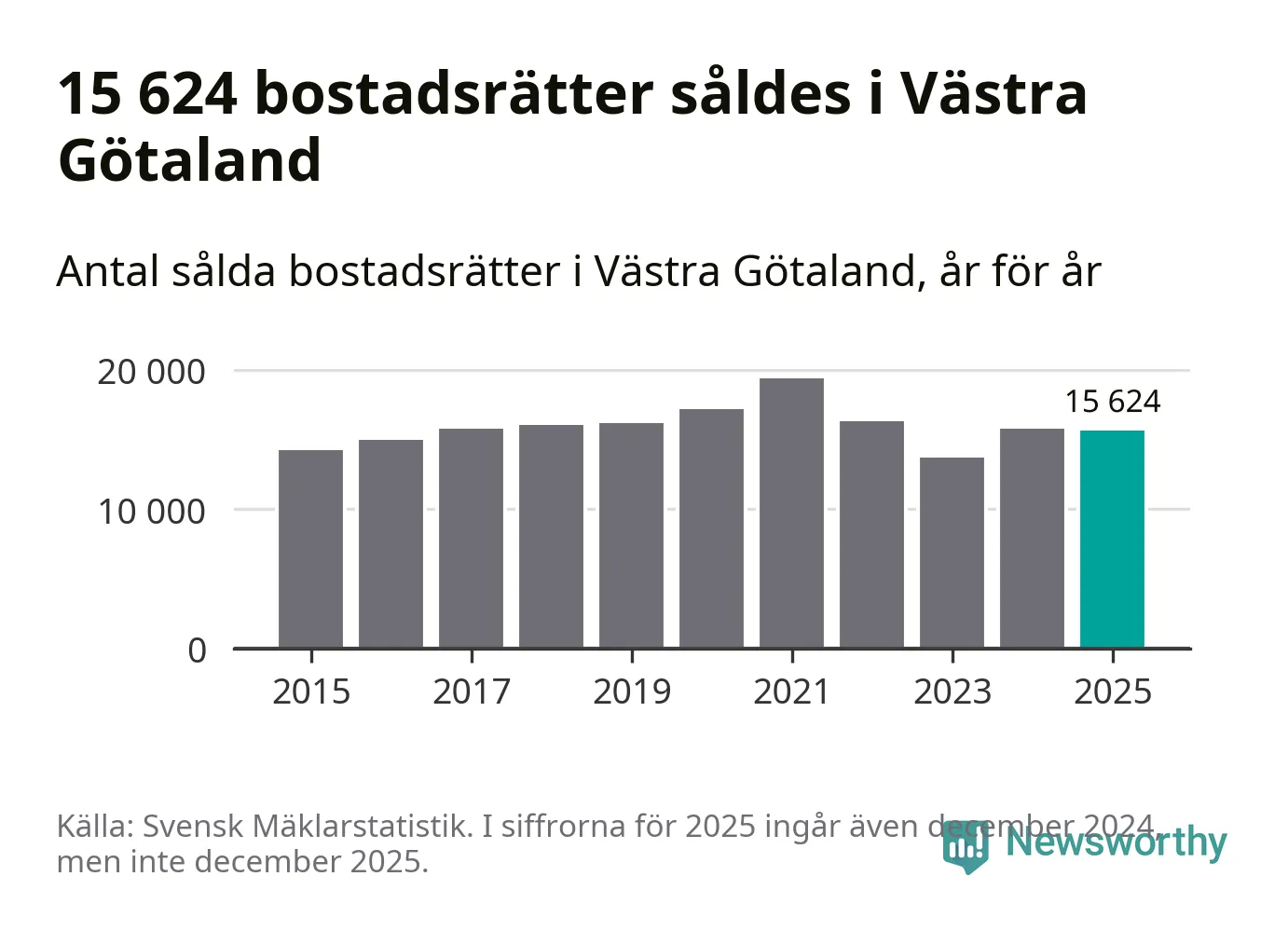 Så många bostadsrätter såldes i Västra Götalands län 2025