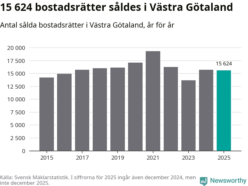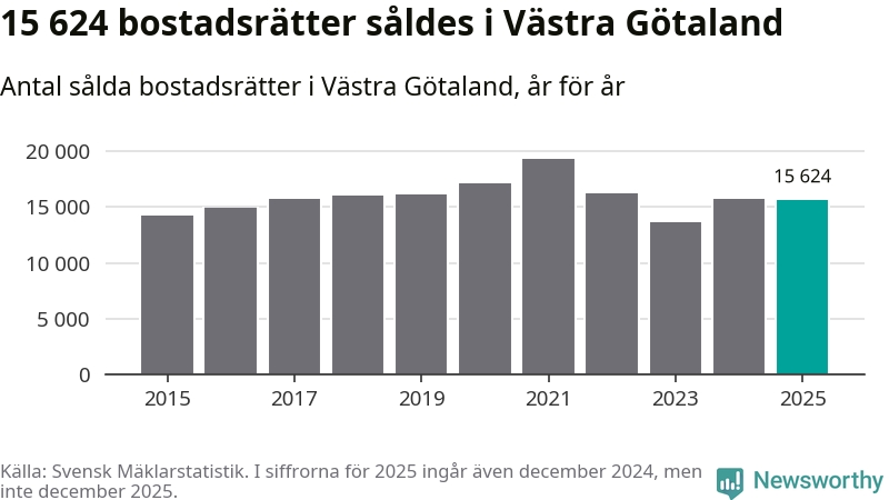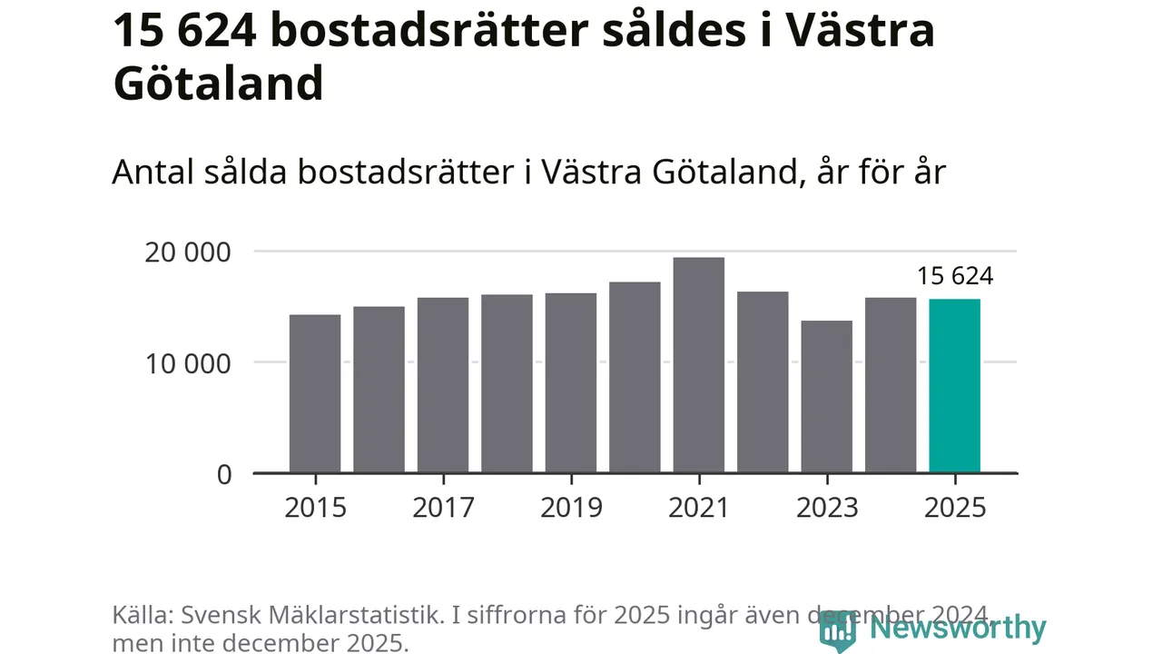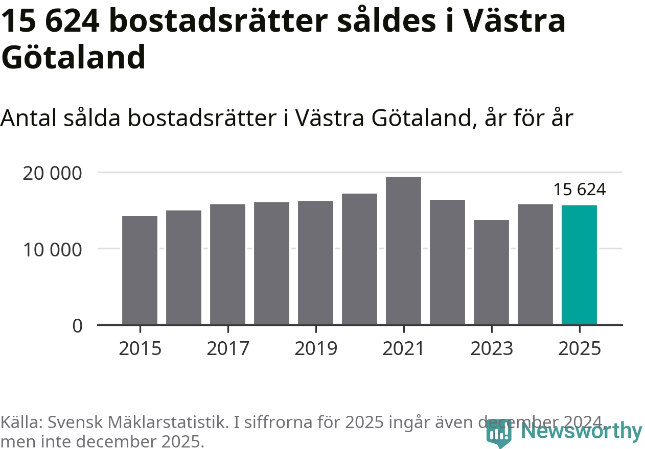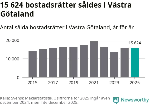 Så många bostadsrätter såldes i Västra Götalands län 2025