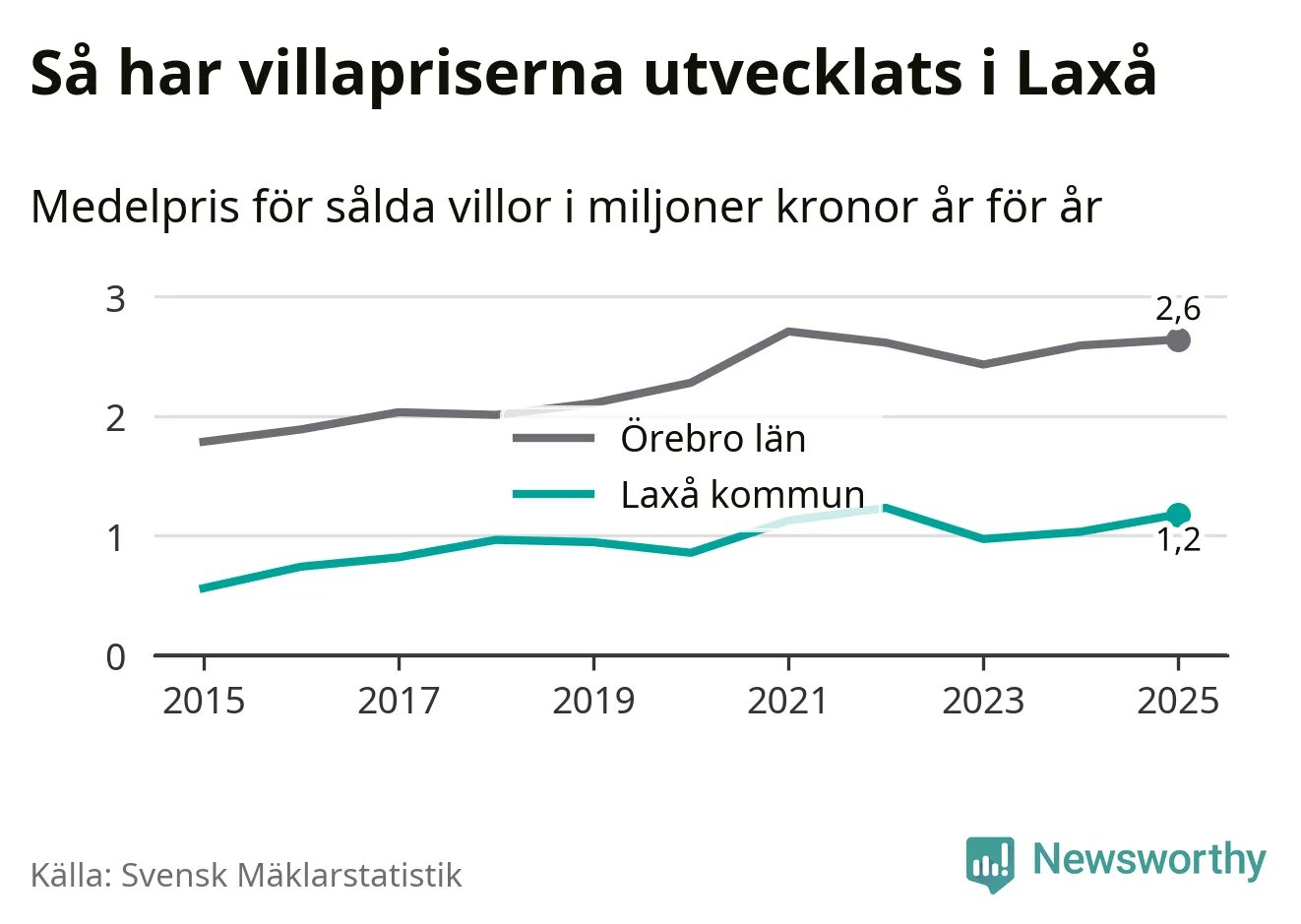 Bostadsmarknaden i Sverige närmar sig nivån före räntesmockan 2022. I Laxå ökade villapriserna för andra året i rad.