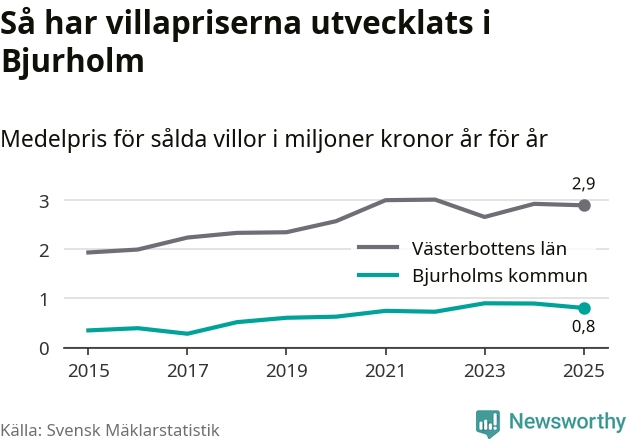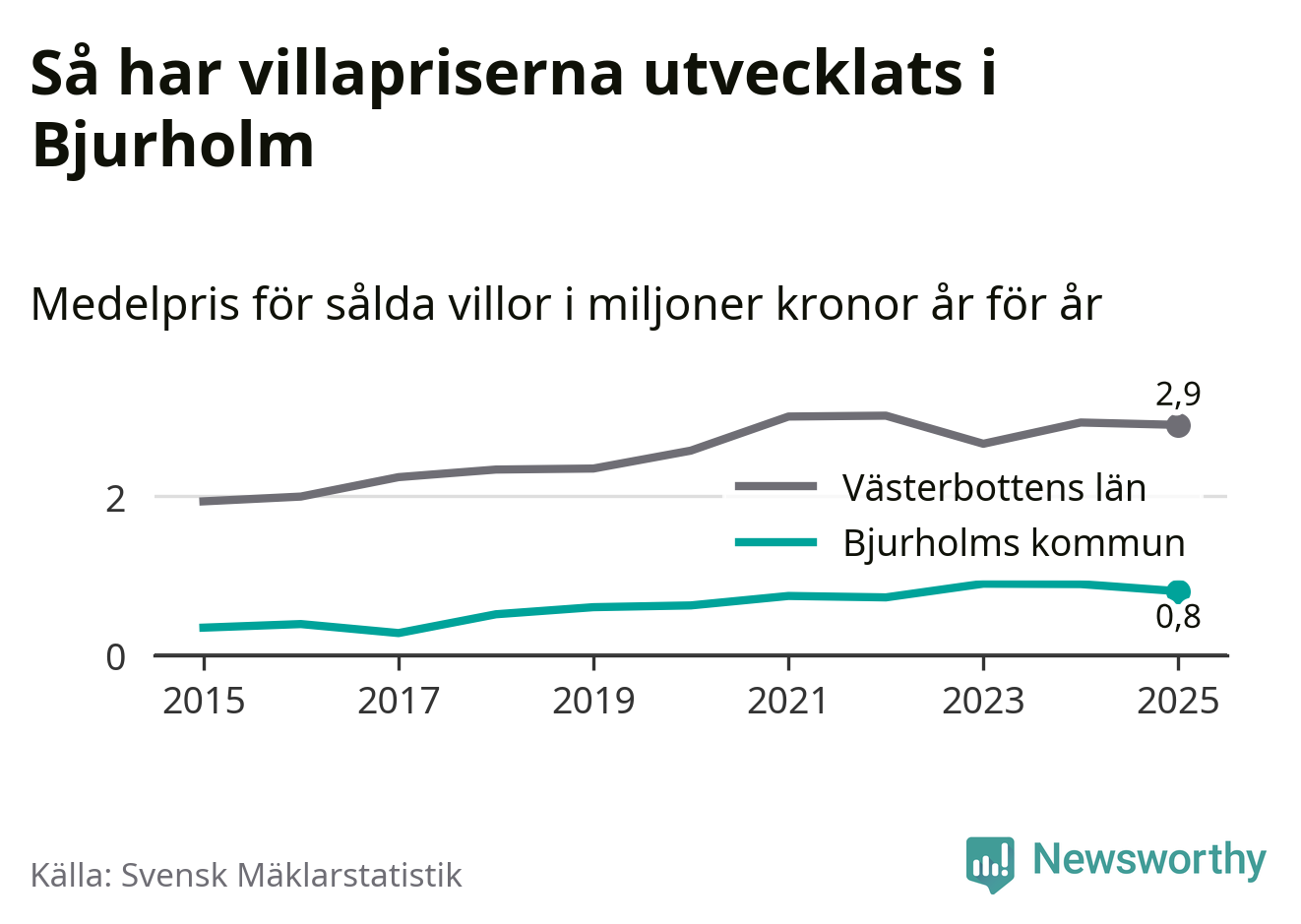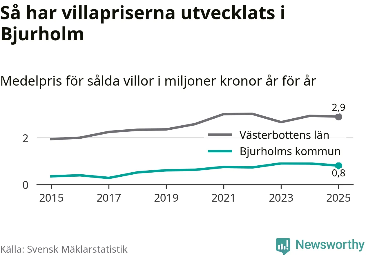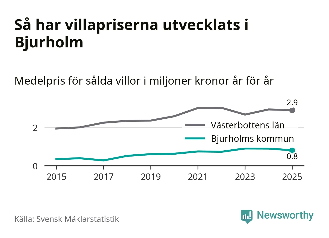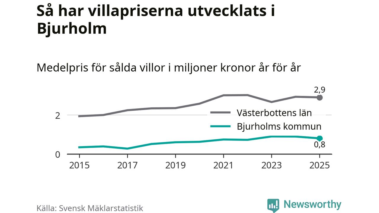 Bostadsmarknaden i Sverige närmar sig nivån före räntesmockan 2022. I Bjurholm sjönk dock villapriserna för andra året i rad.