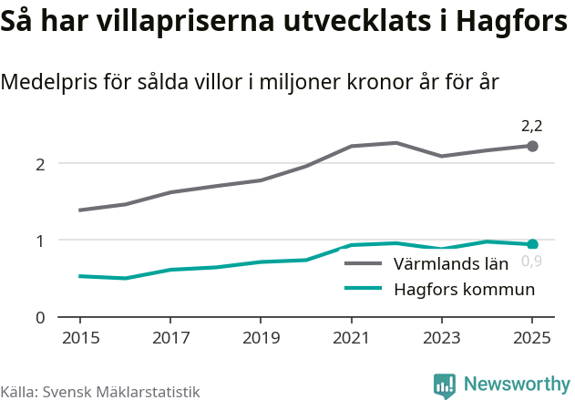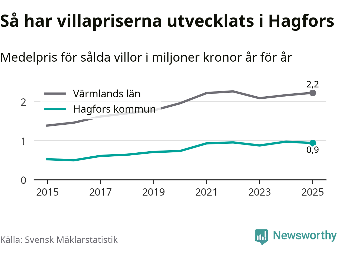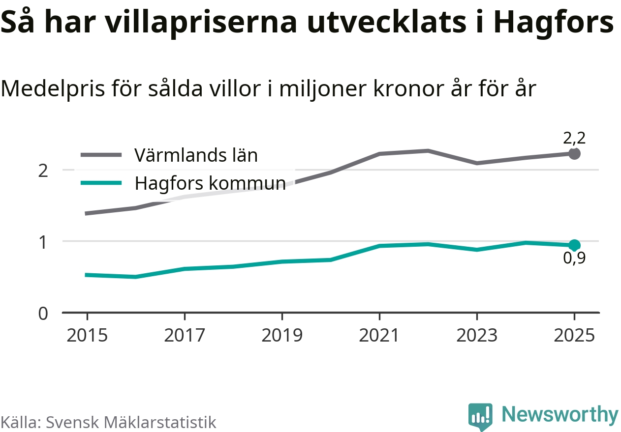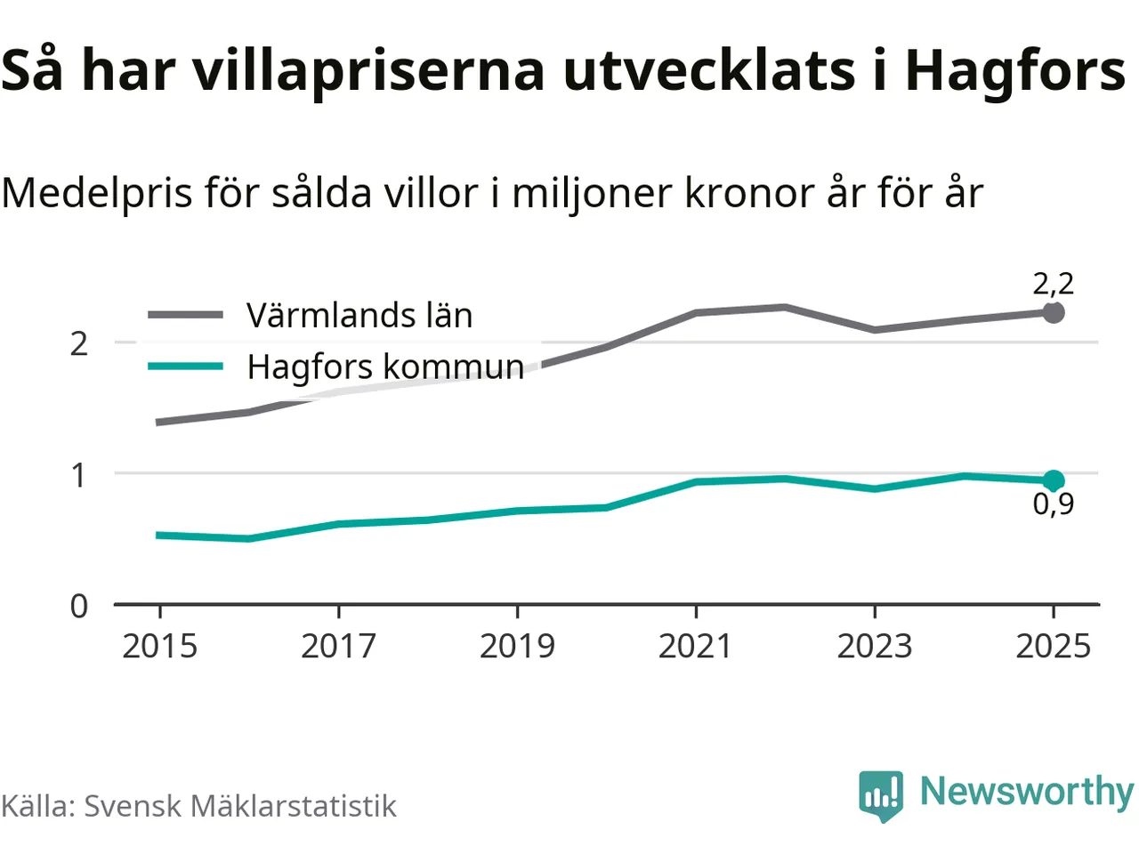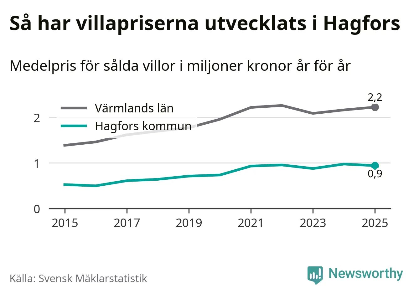 Bostadsmarknaden i Sverige närmar sig nivån före räntesmockan 2022. I Hagfors sjönk dock villapriserna.