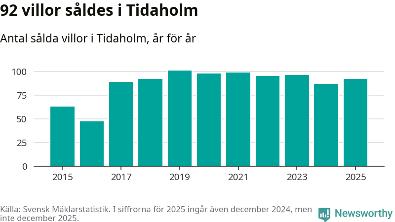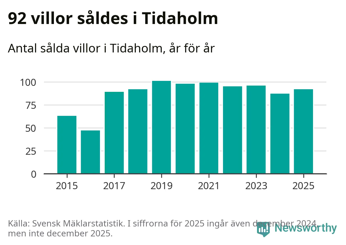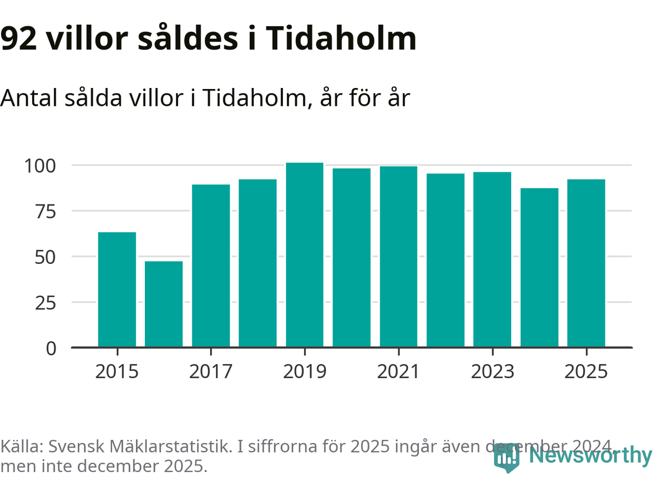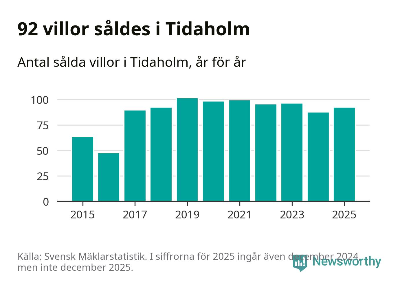 Däremot ökade antalet sålda villor. Totalt såldes 92 villor, att jämföra med 87 under 2024.