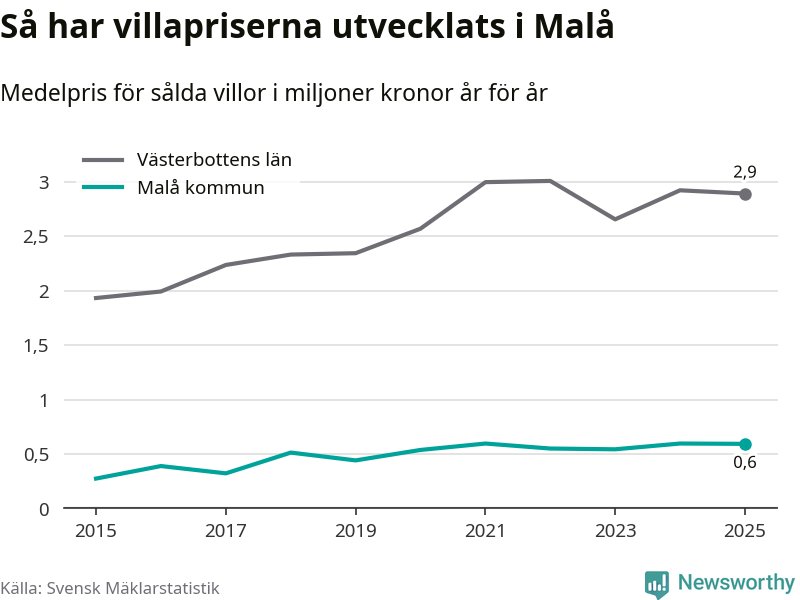 Bostadsmarknaden i Sverige närmar sig nivån före räntesmockan 2022. I Malå har priserna legat i stort sett stilla under året, däremot såldes fler villor.