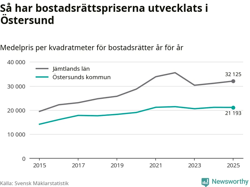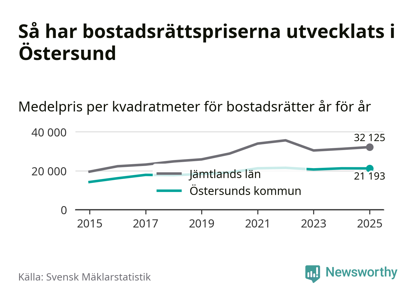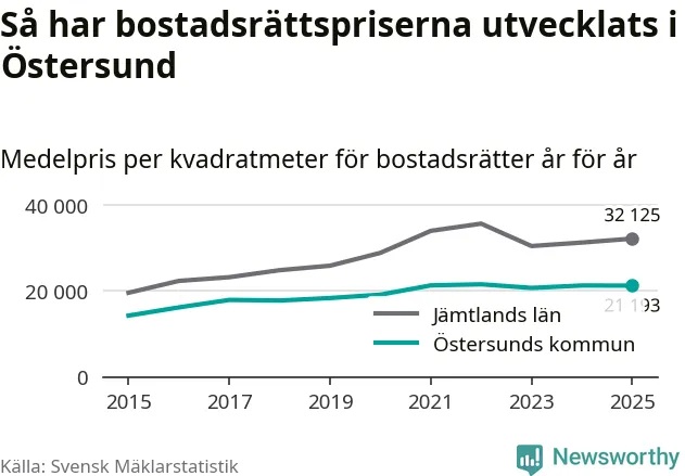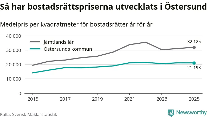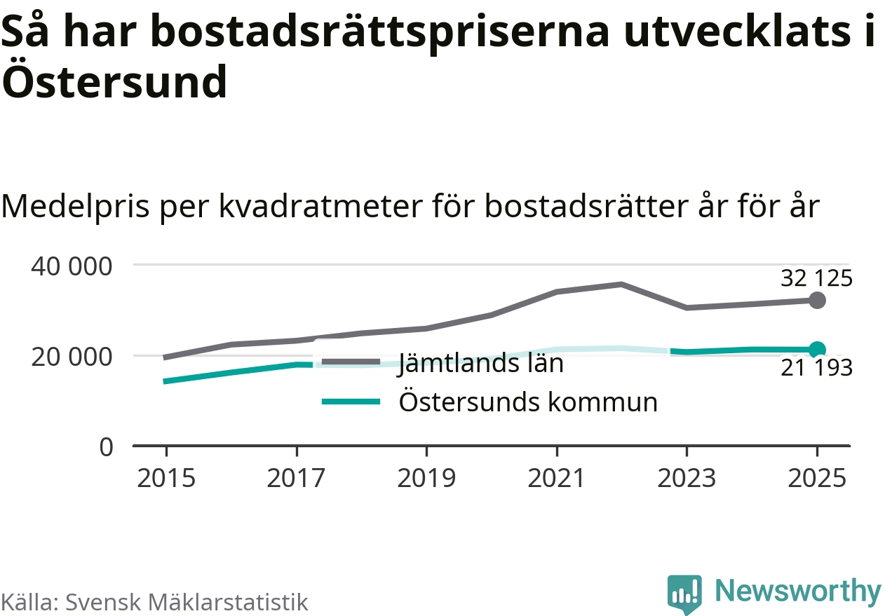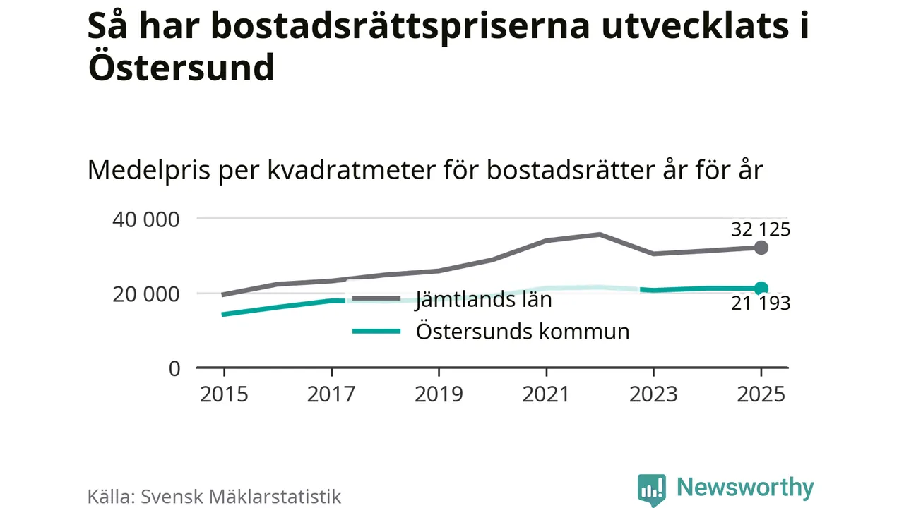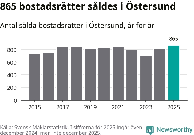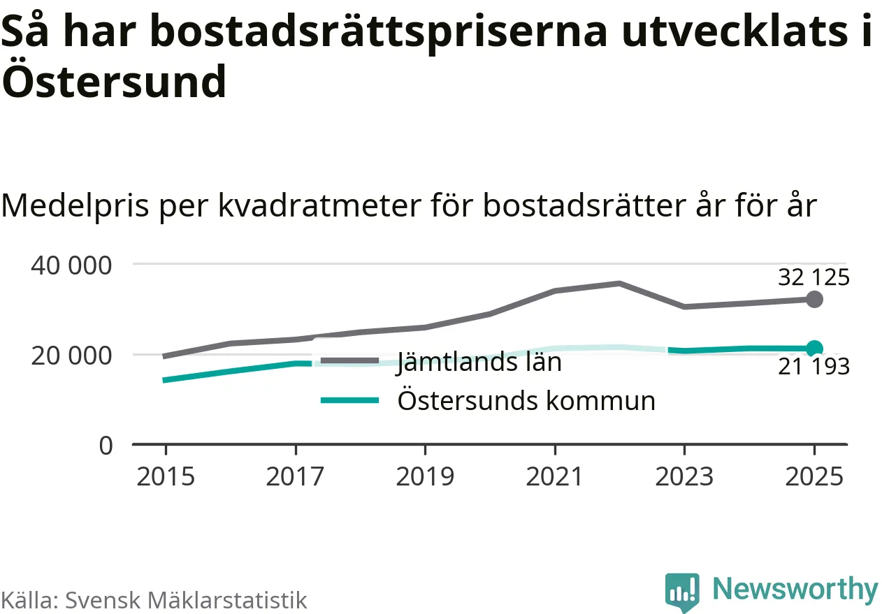 Det såldes totalt 865 bostadsrätter i Östersunds kommun under året. Det är fler än något annat år sedan 2015. Genomsnittspriset per kvadratmeter landade på 21 193 kronor, vilket är ungefär samma nivå som förra året.
