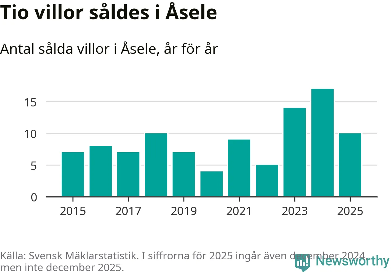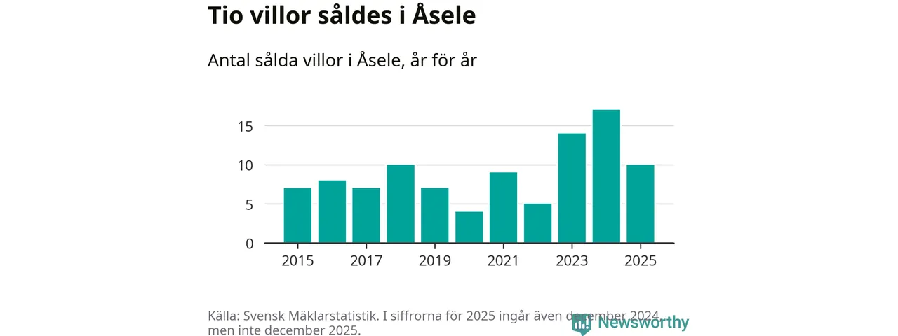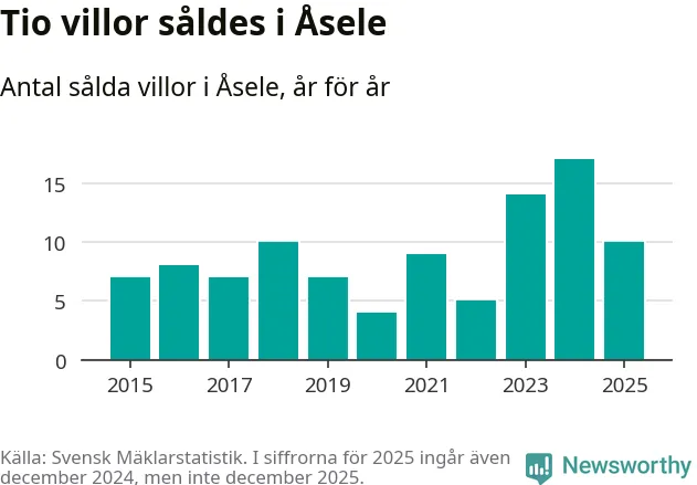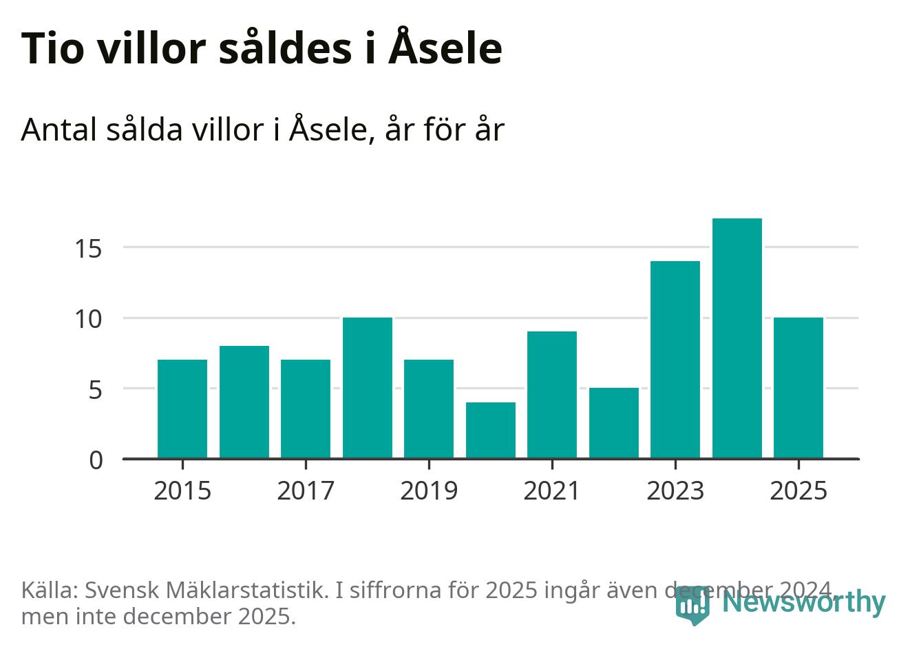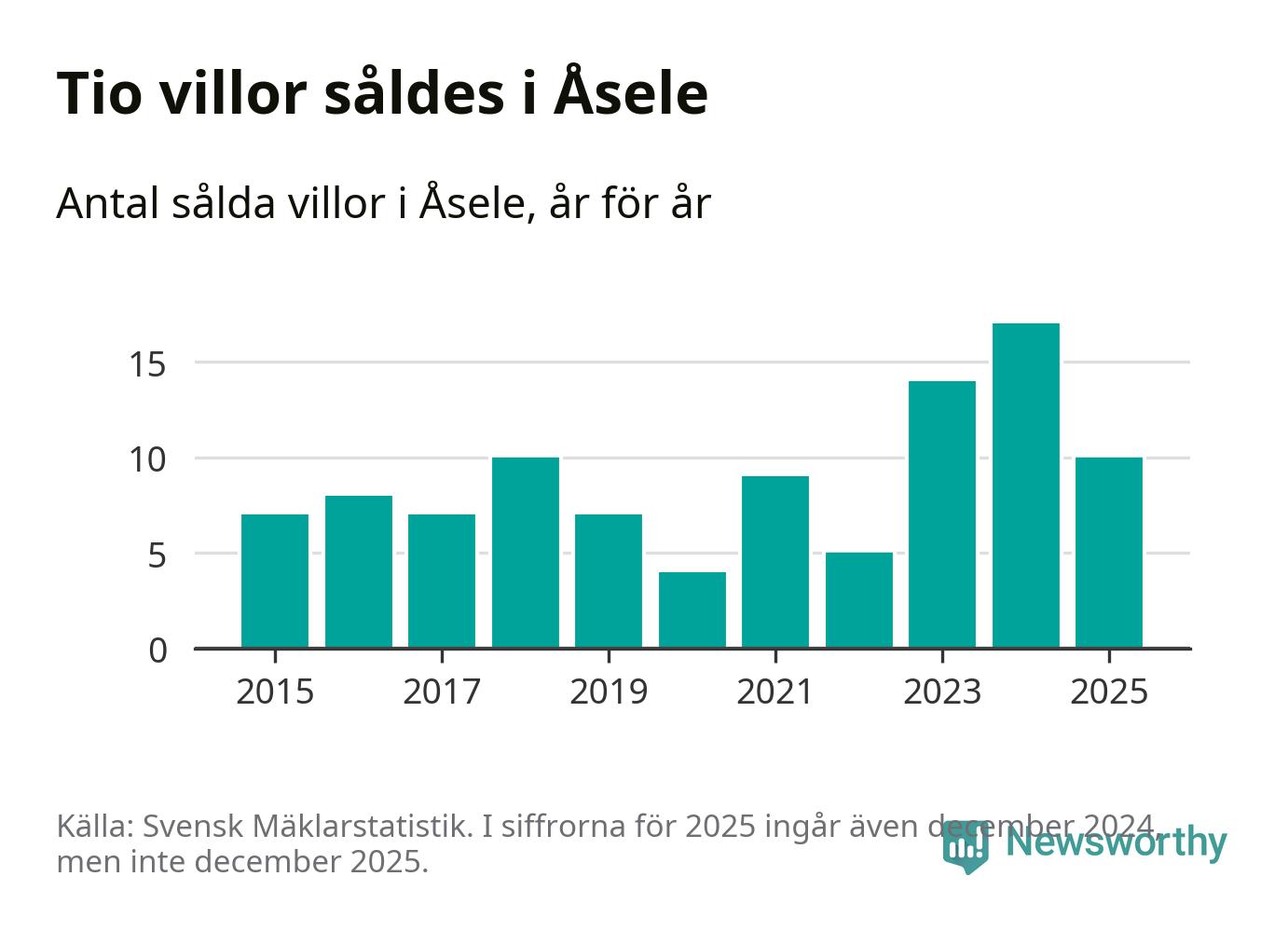 Däremot minskade antalet sålda villor. Totalt såldes tio villor, att jämföra med 17 under 2024.