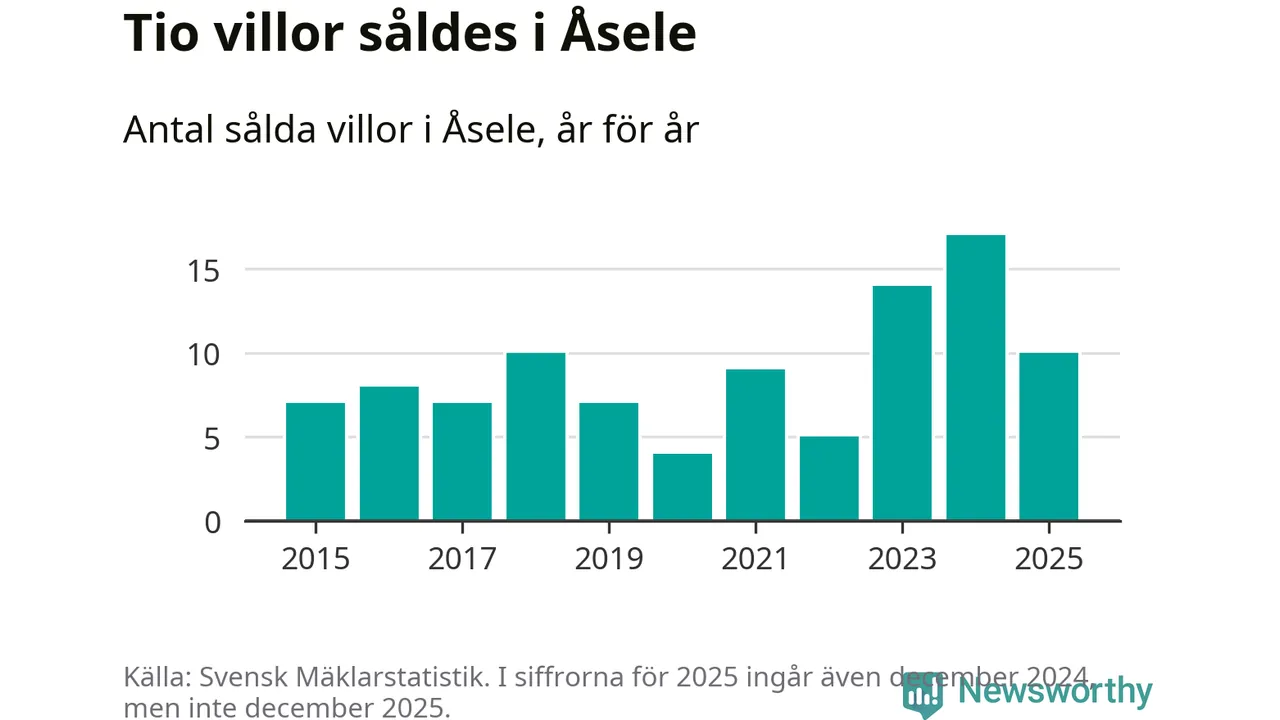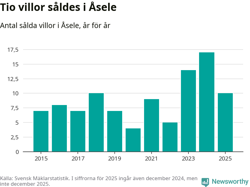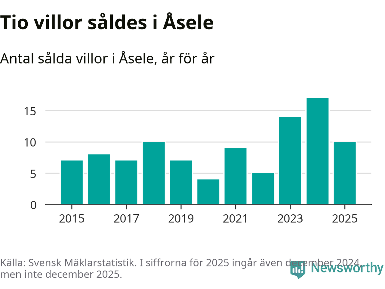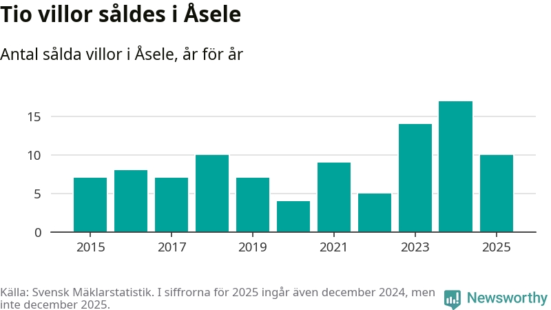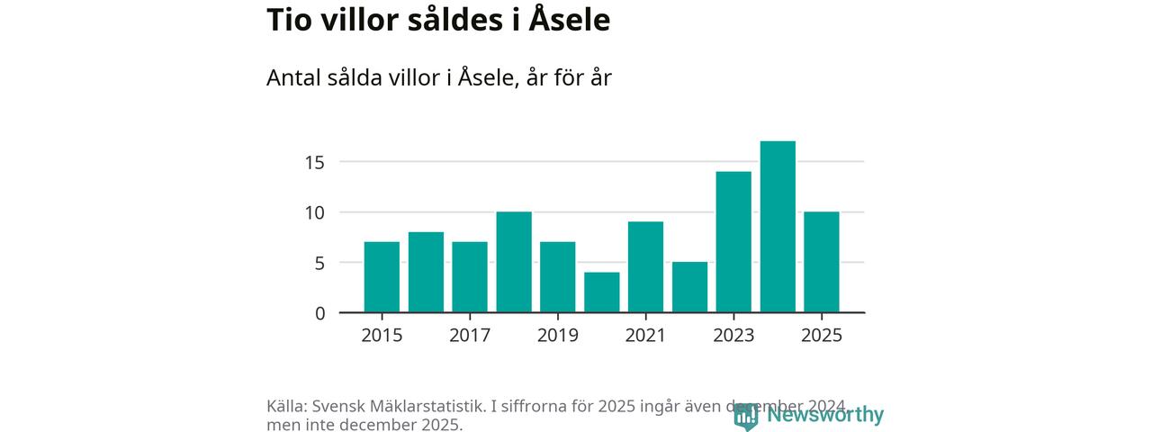 Däremot minskade antalet sålda villor. Totalt såldes tio villor, att jämföra med 17 under 2024.