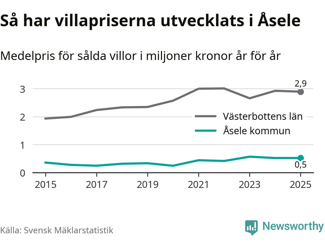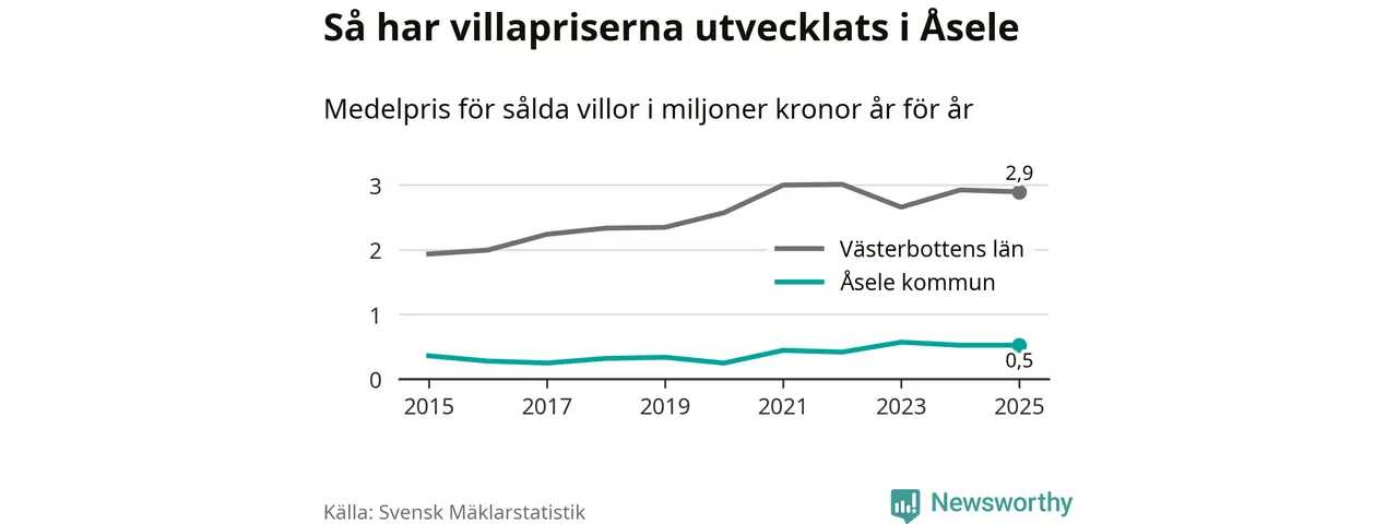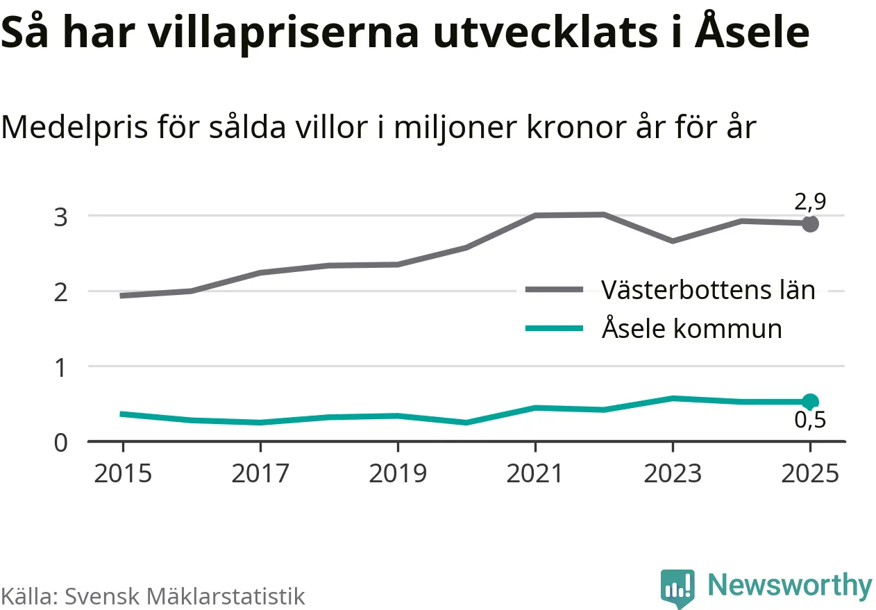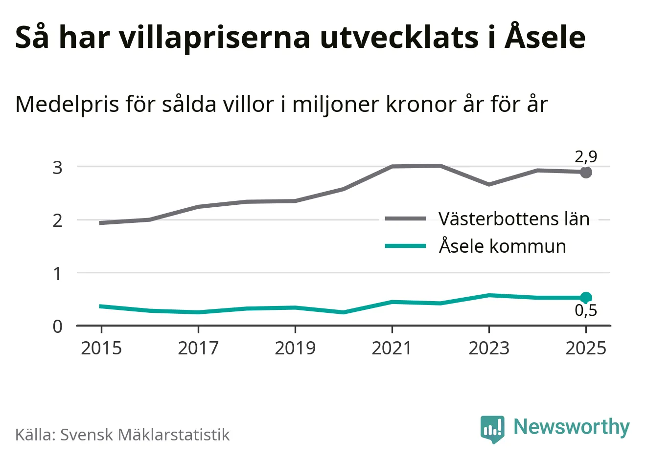 Villapriserna skiljer sig överlag markant i Västerbottens län. Du får åtta hus i Åsele kommun till priset av en typisk Umeåvilla.
