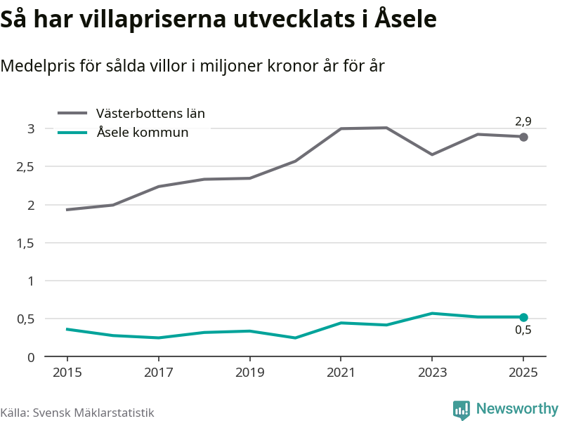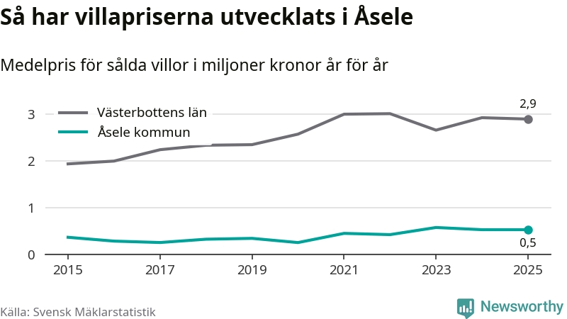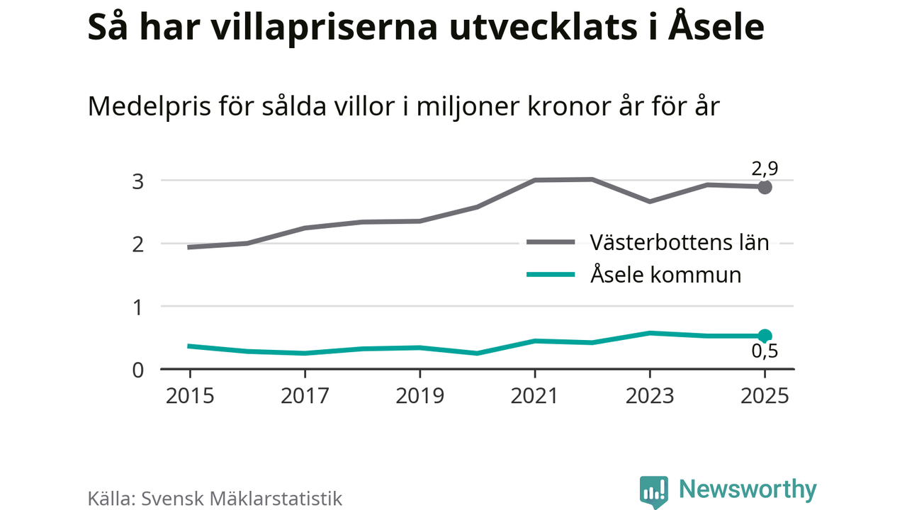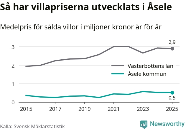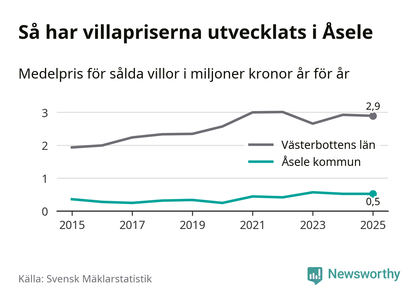 Villapriserna skiljer sig överlag markant i Västerbottens län. Du får åtta hus i Åsele kommun till priset av en typisk Umeåvilla.