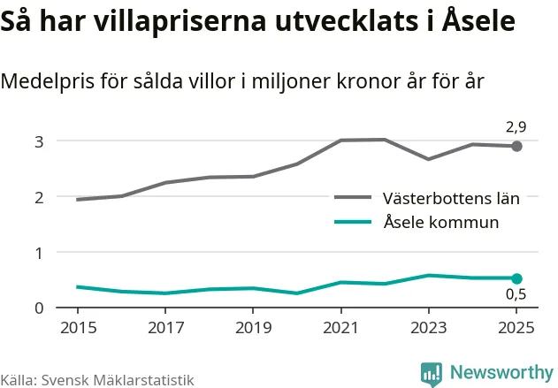 Bostadsmarknaden i Sverige närmar sig nivån före räntesmockan 2022. I Åsele har priserna legat i stort sett stilla under året, däremot såldes färre villor.