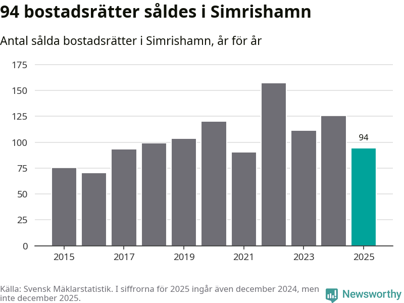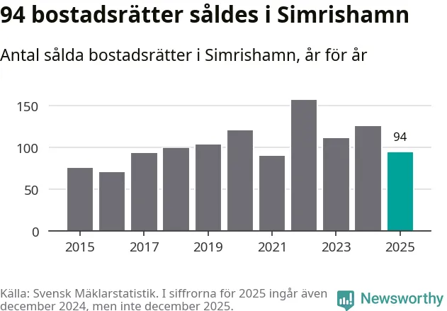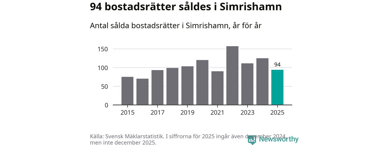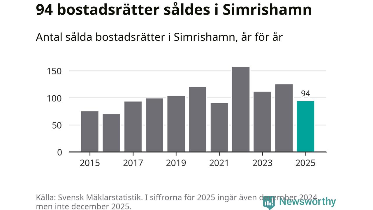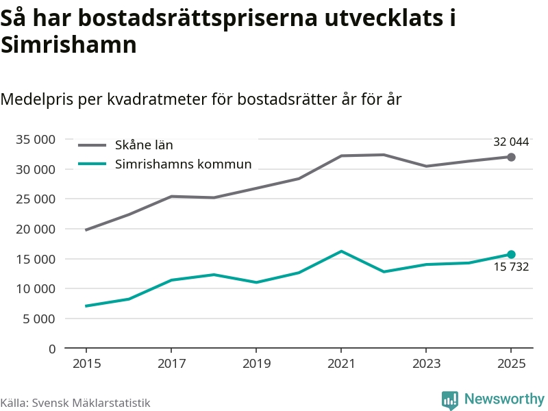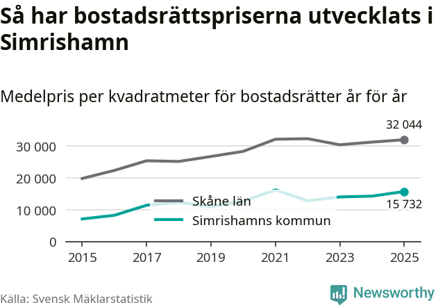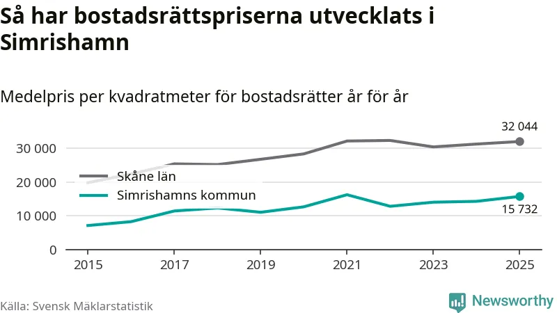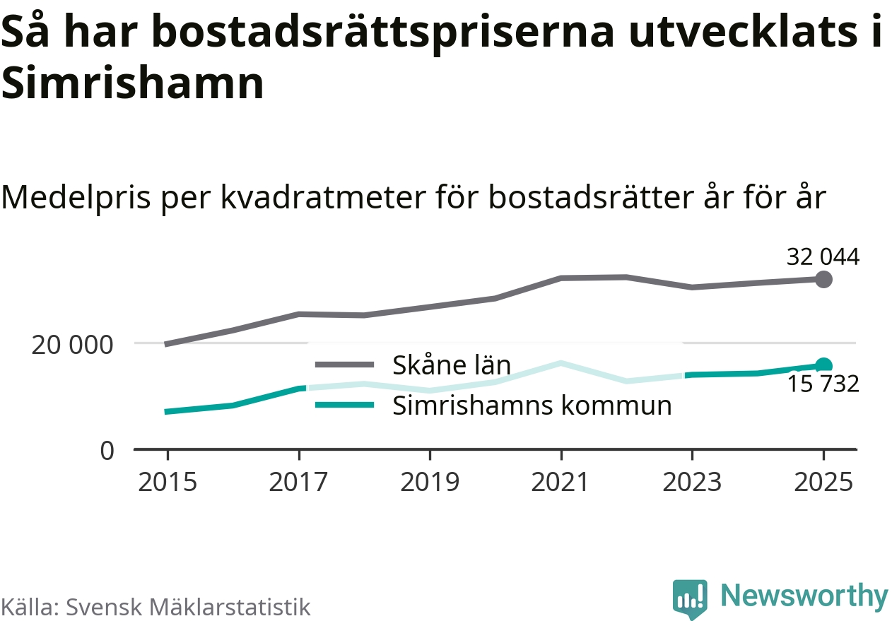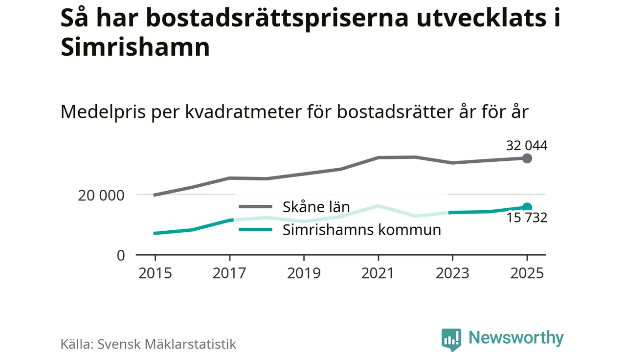 Det såldes totalt 94 bostadsrätter i Simrishamns kommun under året. Genomsnittspriset per kvadratmeter landade på 15 732 kronor. Det är en ökning med tio procent i kommunen på ett år.
