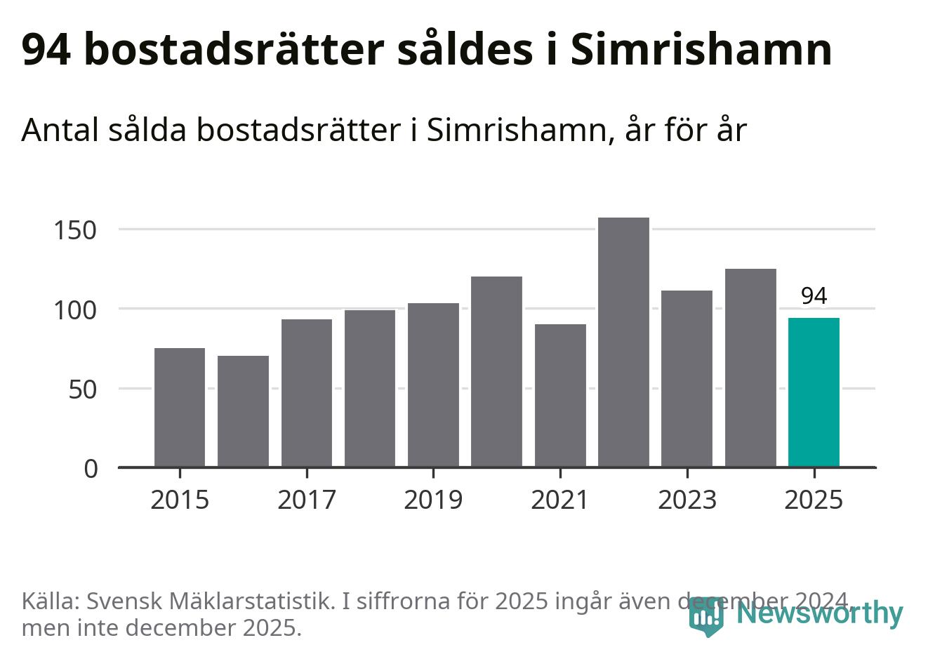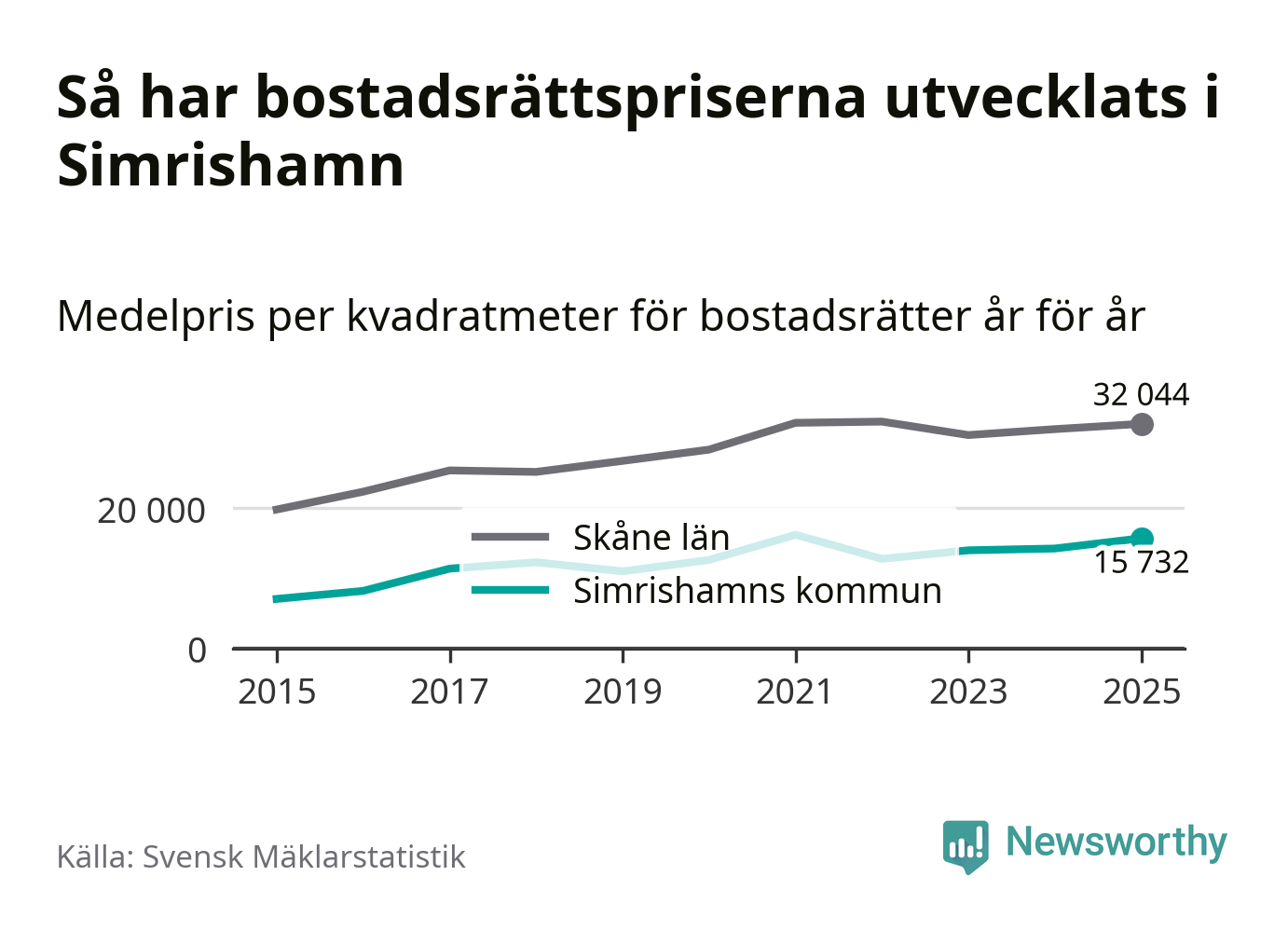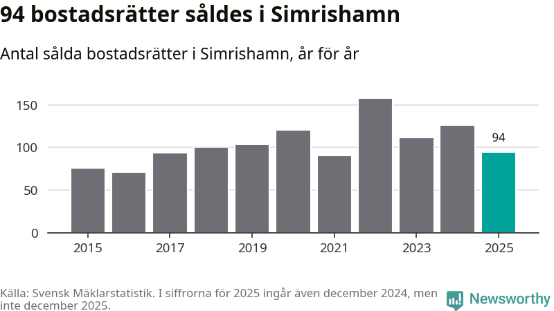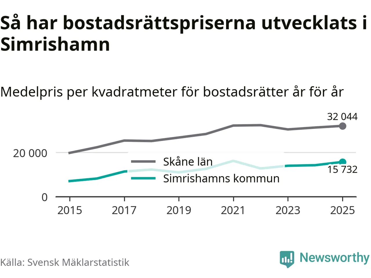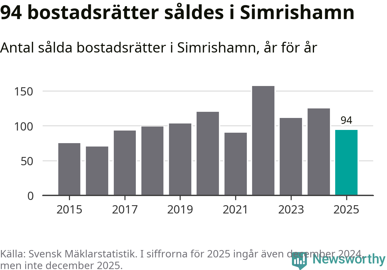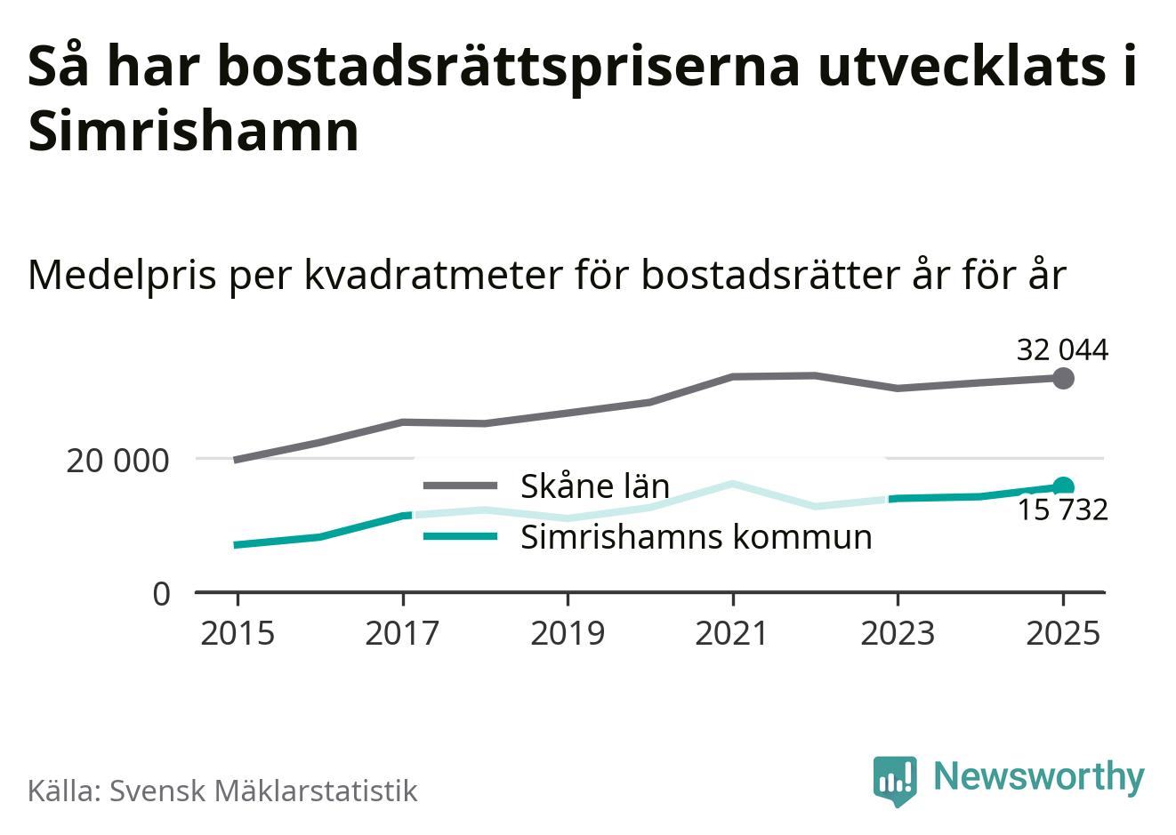 Det såldes totalt 94 bostadsrätter i Simrishamns kommun under året. Genomsnittspriset per kvadratmeter landade på 15 732 kronor. Det är en ökning med tio procent i kommunen på ett år.