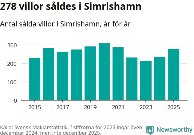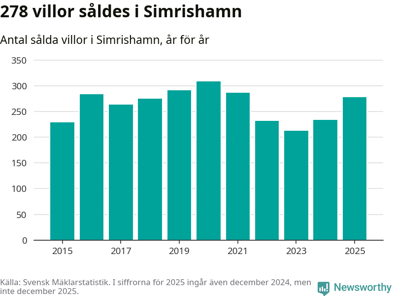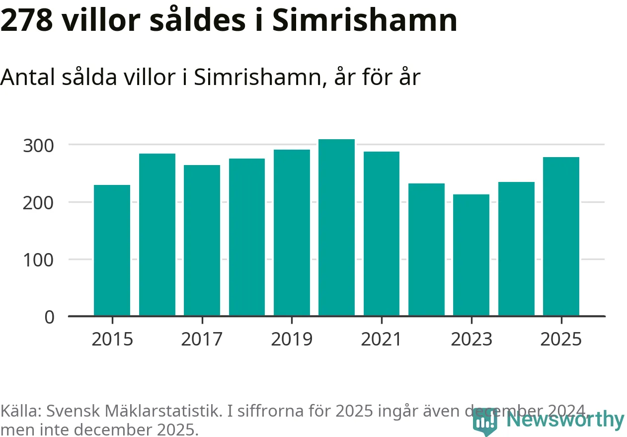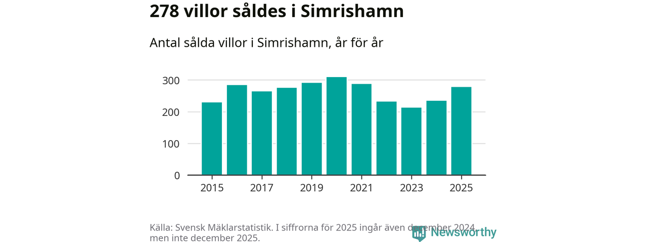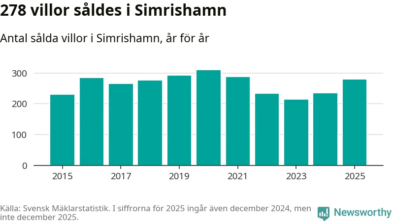 Antalet sålda villor ökade också. Totalt såldes 278 villor, att jämföra med 234 under 2024. Det är andra året i rad som antalet sålda villor ökar i kommunen.