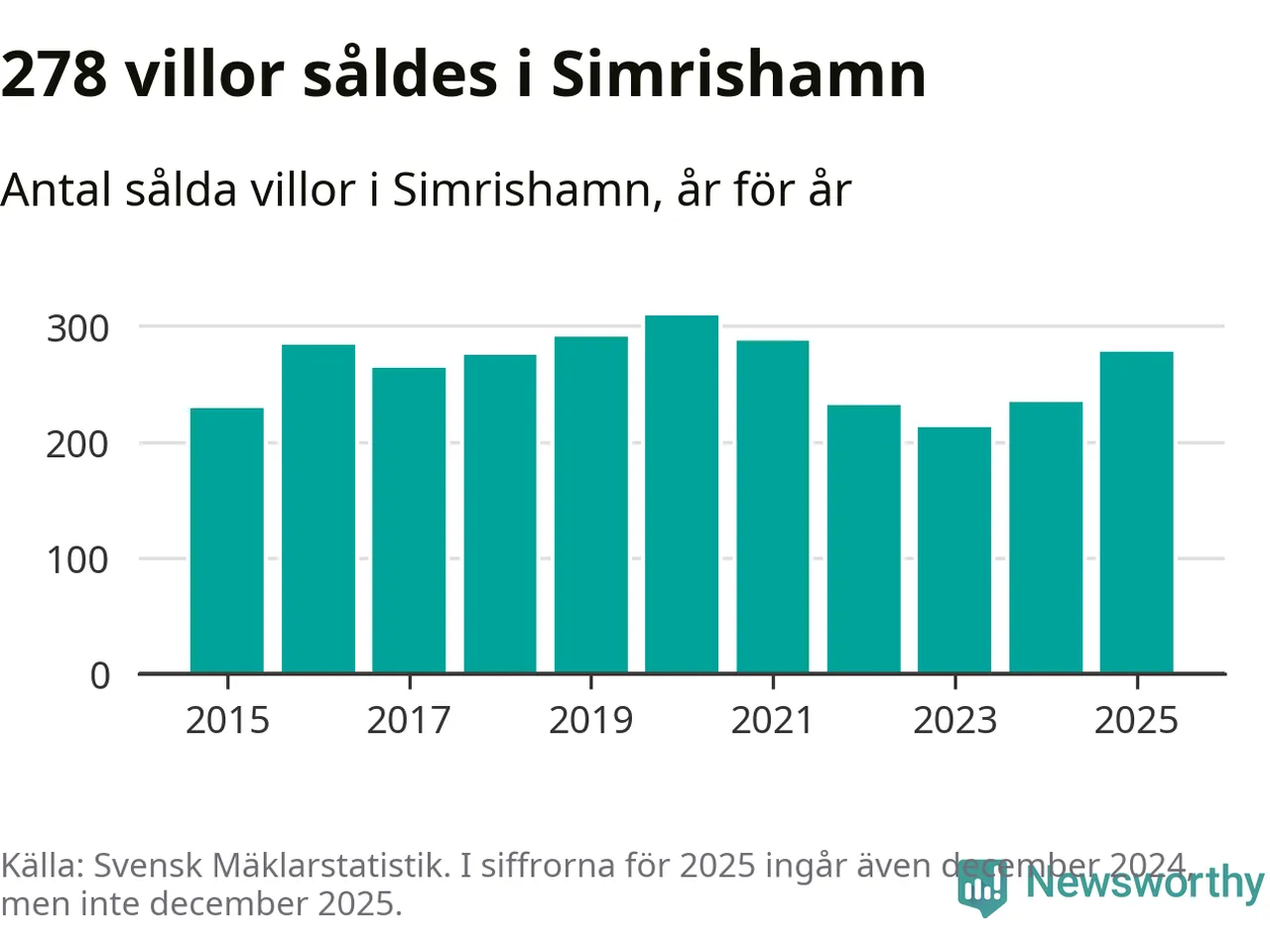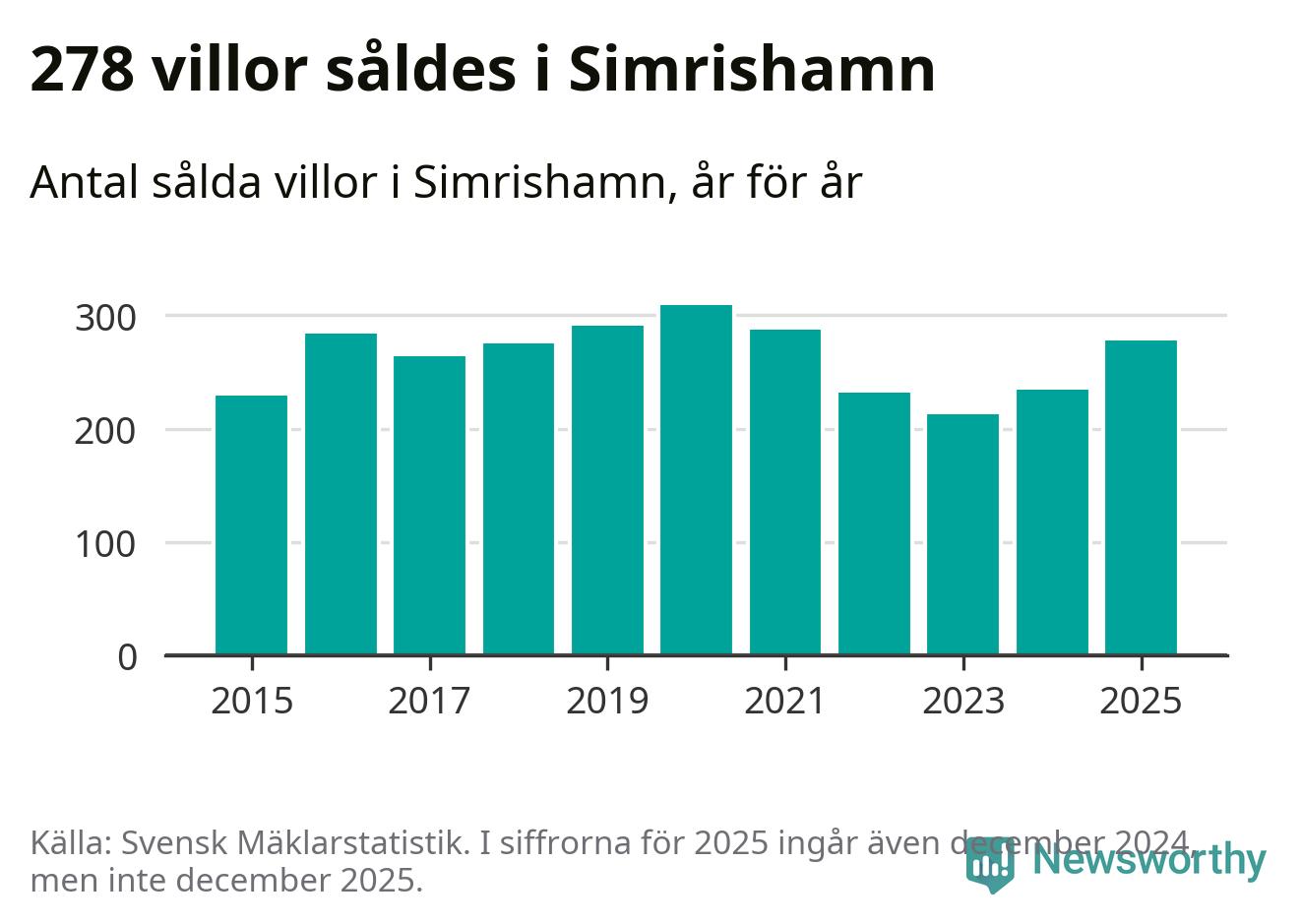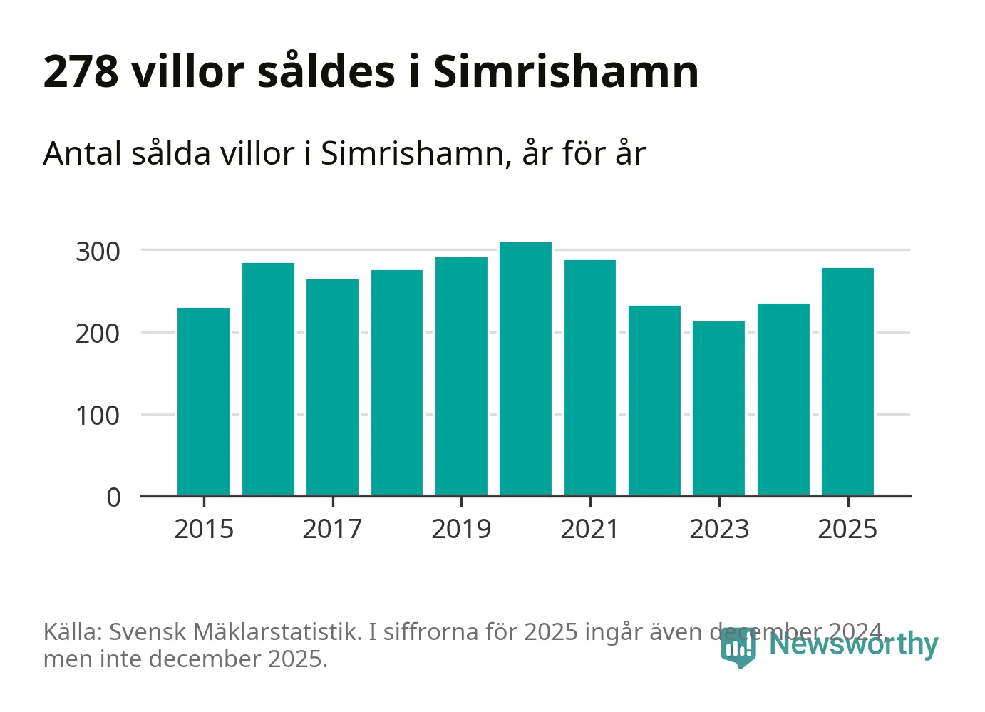 Antalet sålda villor ökade också. Totalt såldes 278 villor, att jämföra med 234 under 2024. Det är andra året i rad som antalet sålda villor ökar i kommunen.