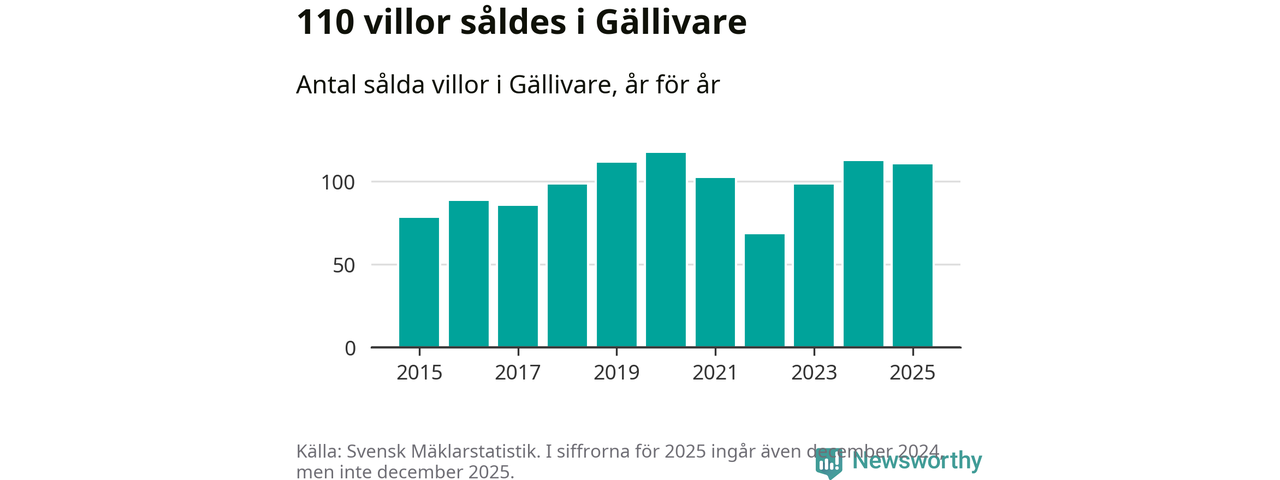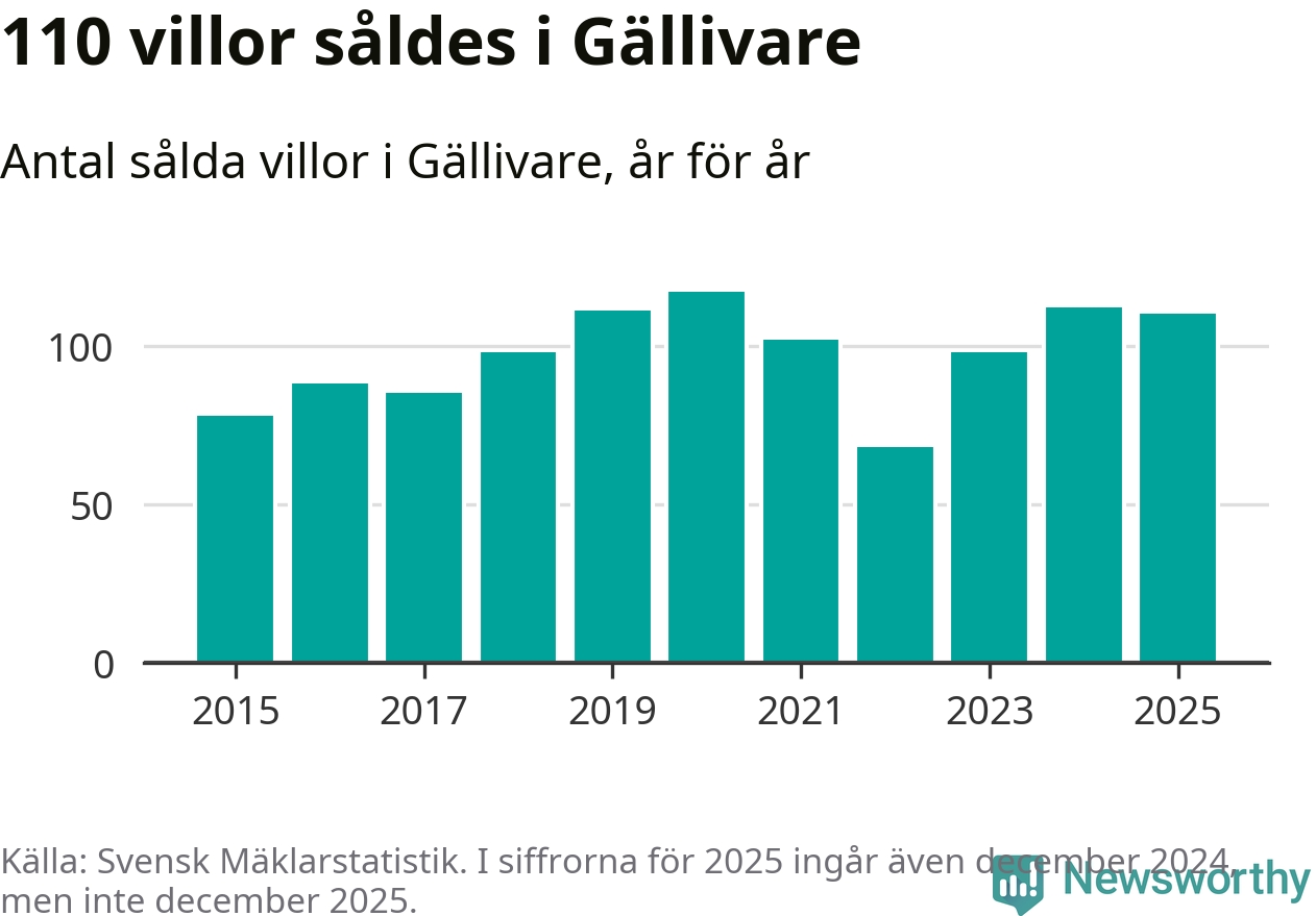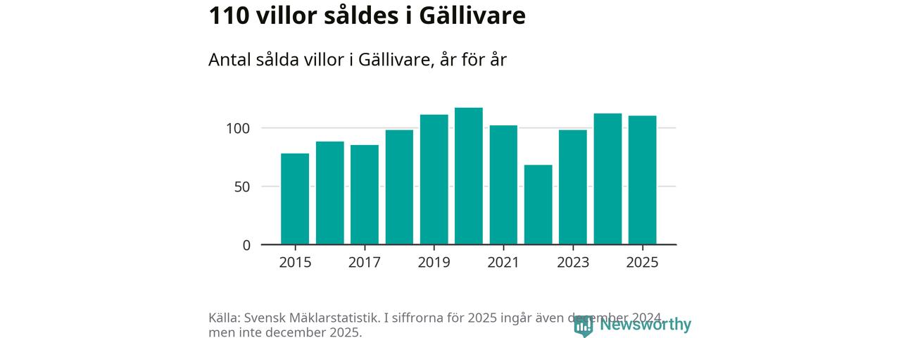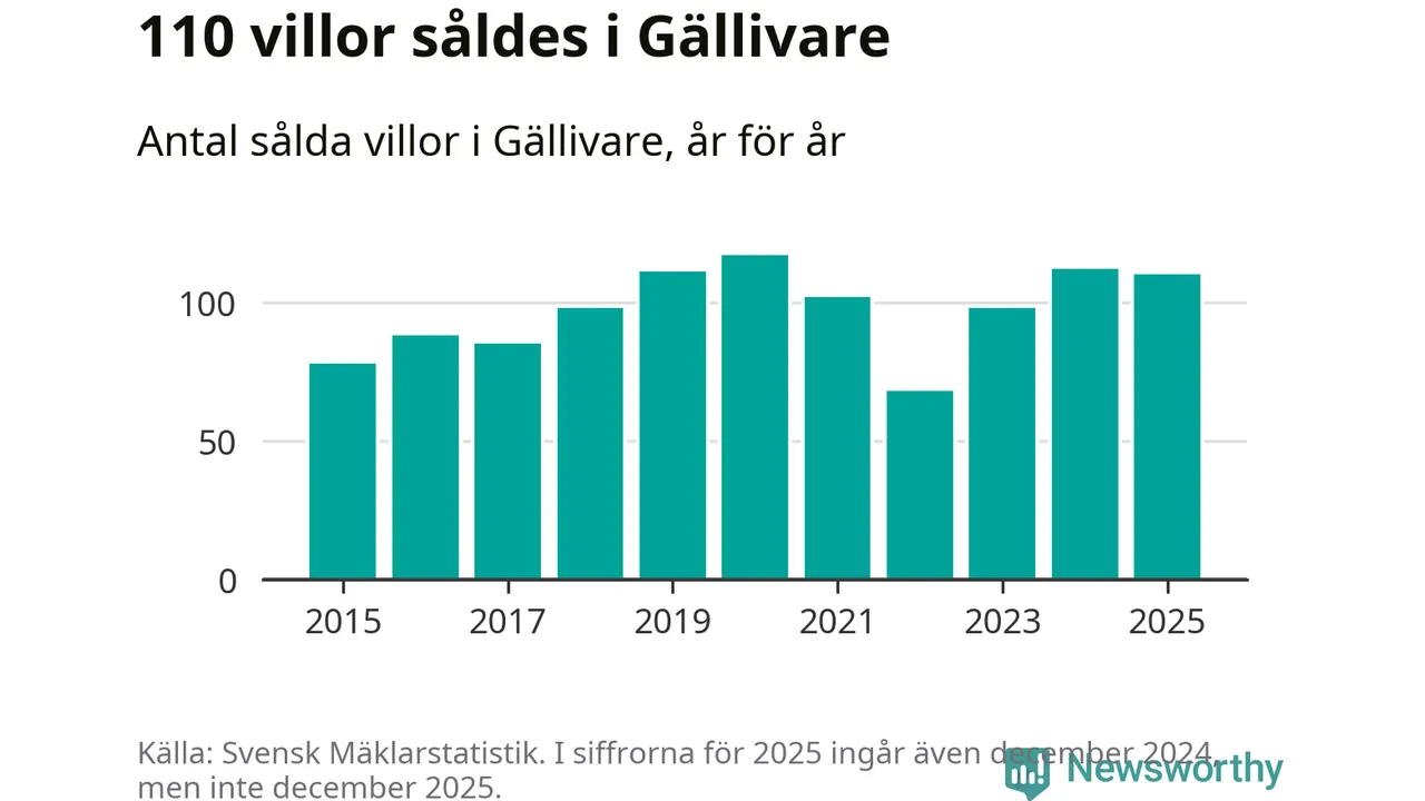 Däremot minskade antalet sålda villor något. Totalt såldes 110 villor, att jämföra med 112 under 2024.