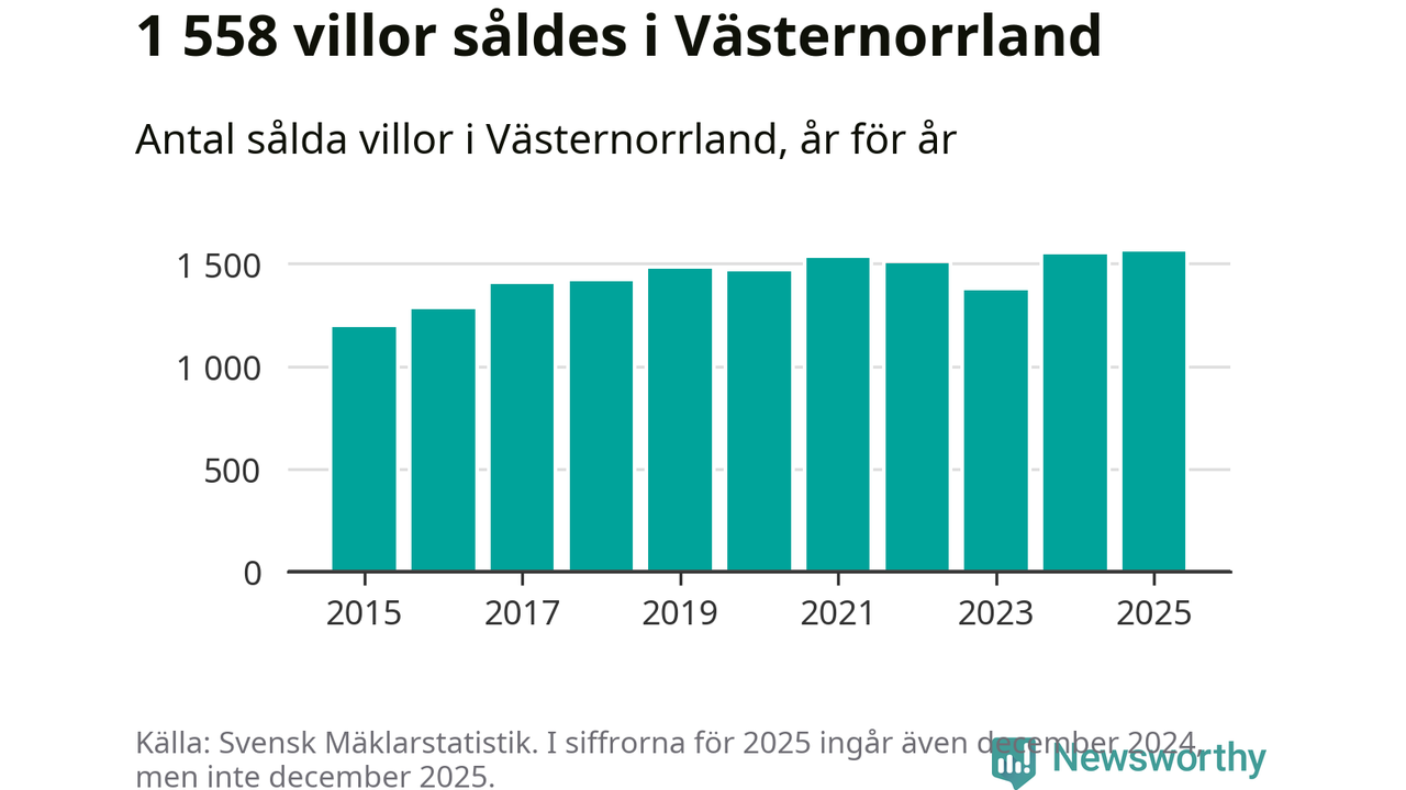 Totalt såldes 59 375 villor i hela Sverige under 2025, vilket är 3 020 fler än året före. Villapriserna ökade också överlag med tre procent i riket som helhet.