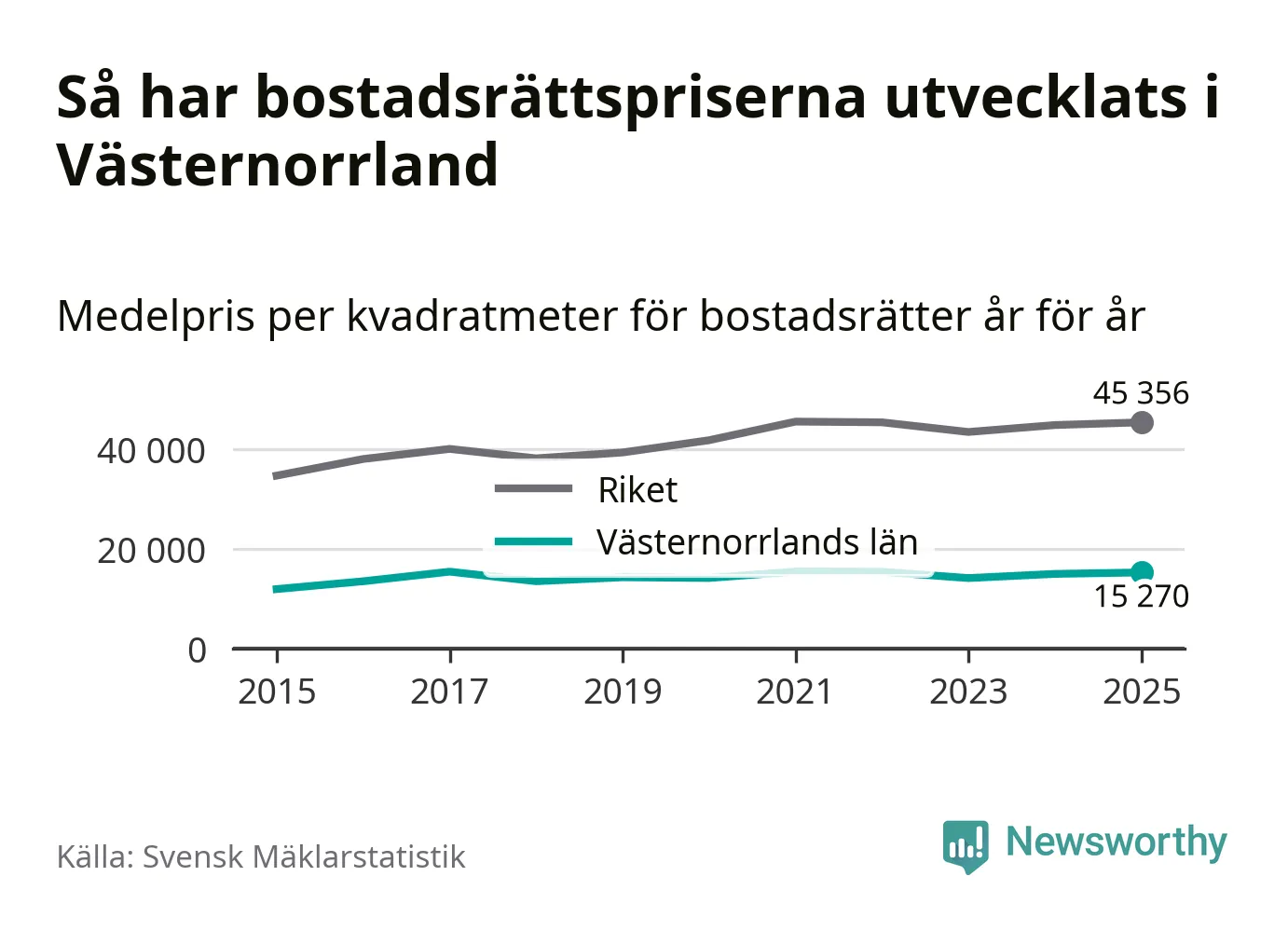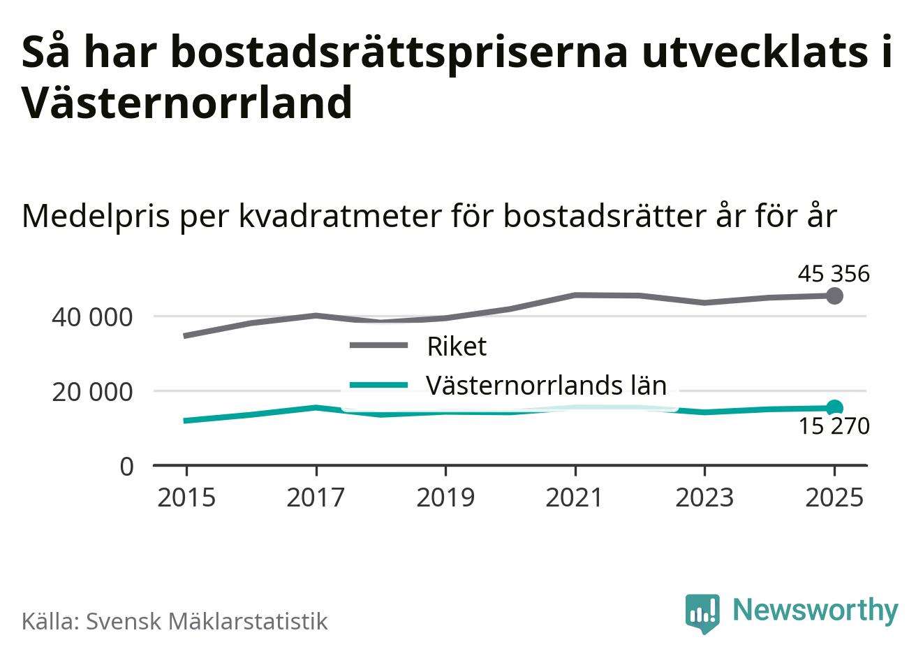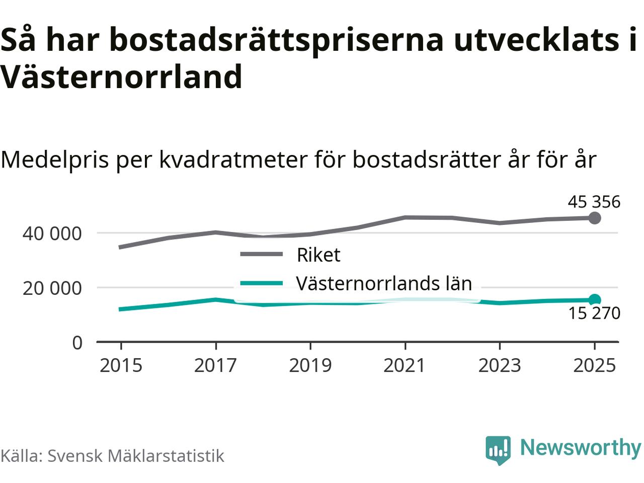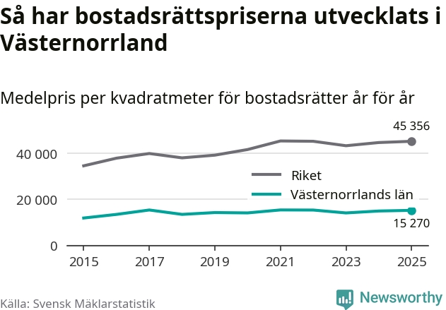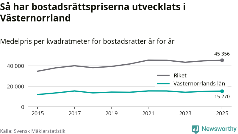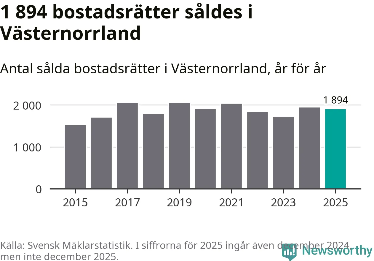 Det såldes totalt 1 894 bostadsrätter i Västernorrlands län under året. Genomsnittspriset per kvadratmeter landade på 15 270 kronor. Det är en ökning med två procent i länet på ett år.