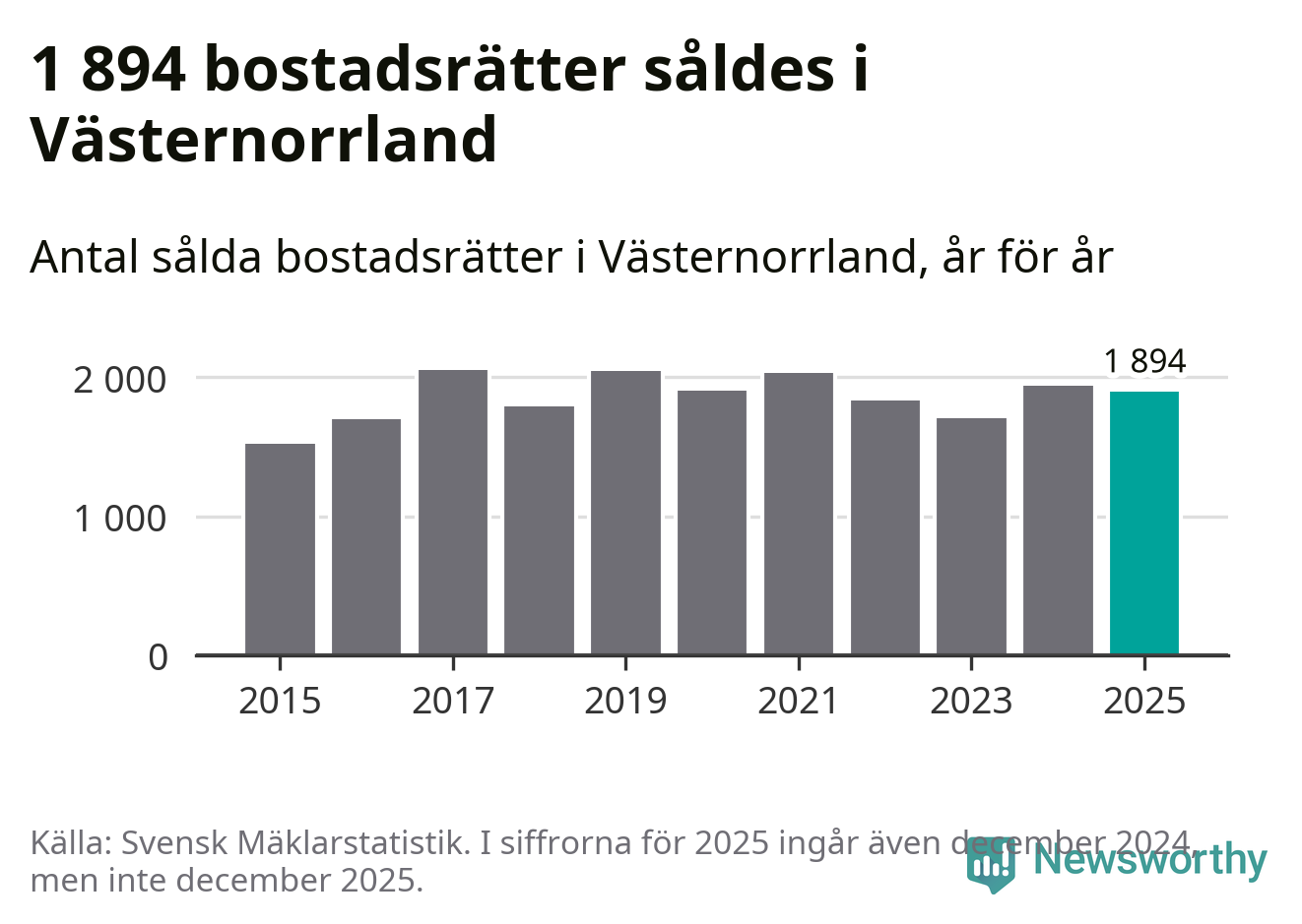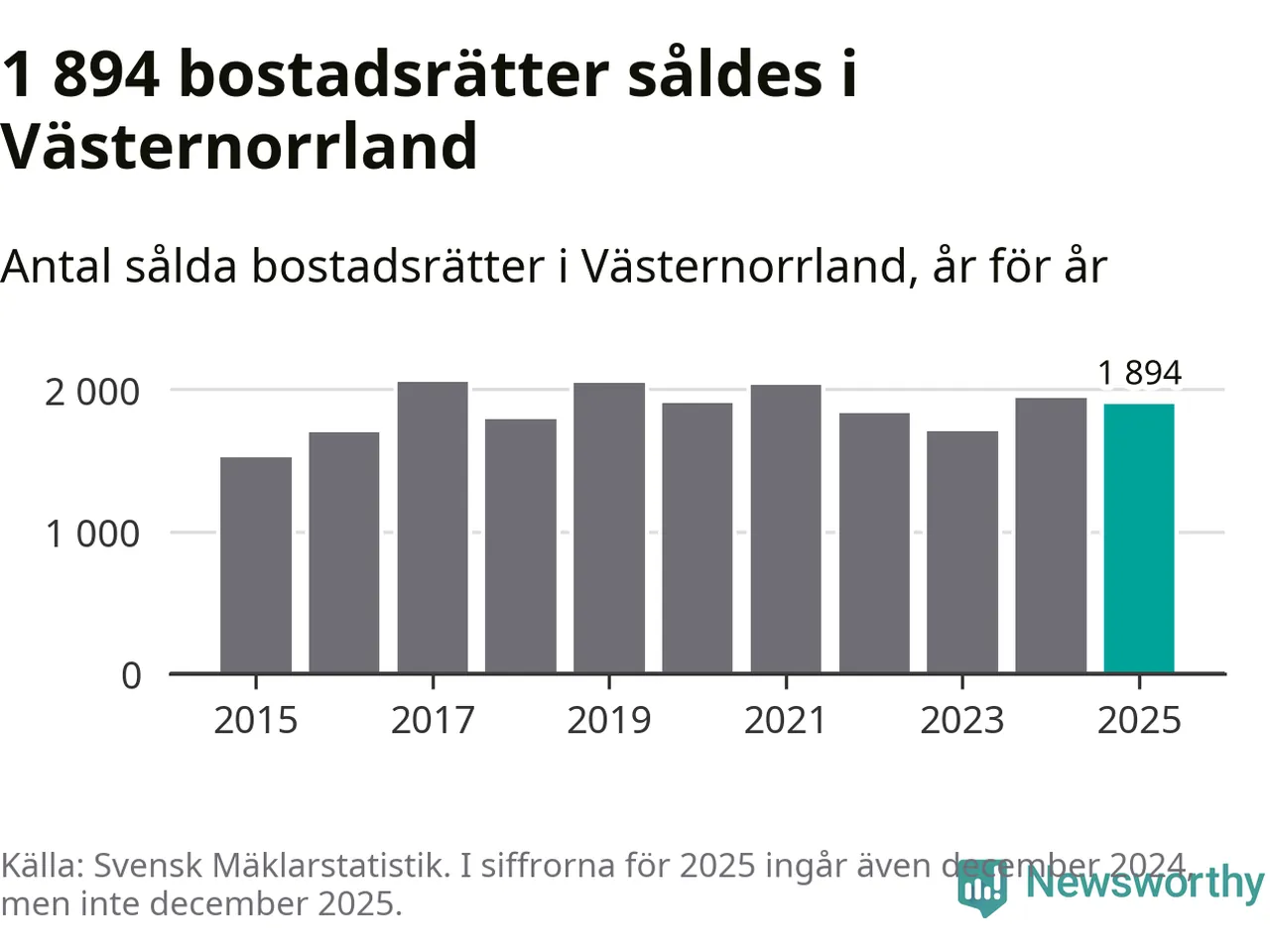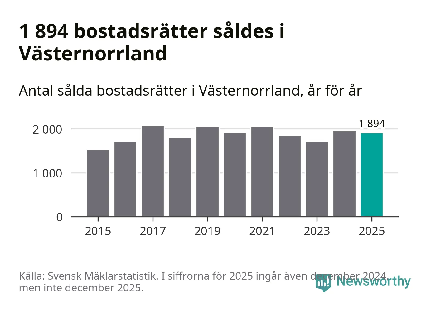 Det visar årsstatistik från Svensk Mäklarstatistik som Newsworthy har sammanställt.