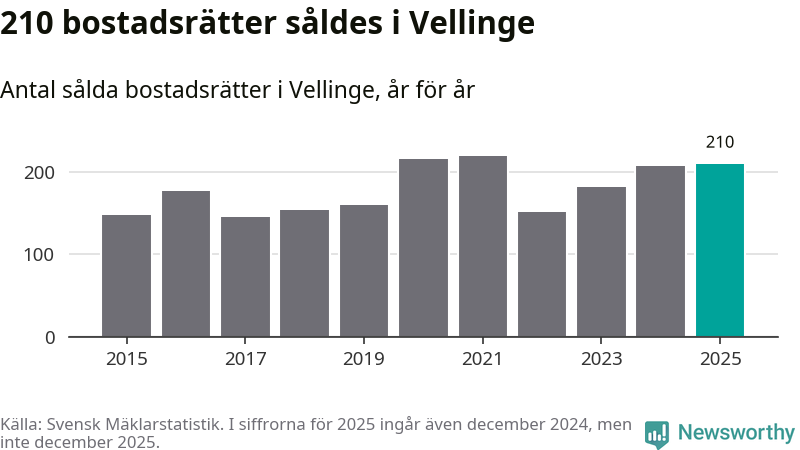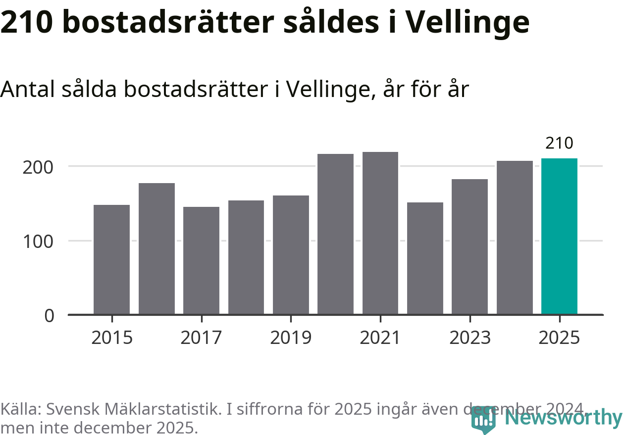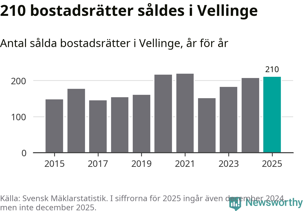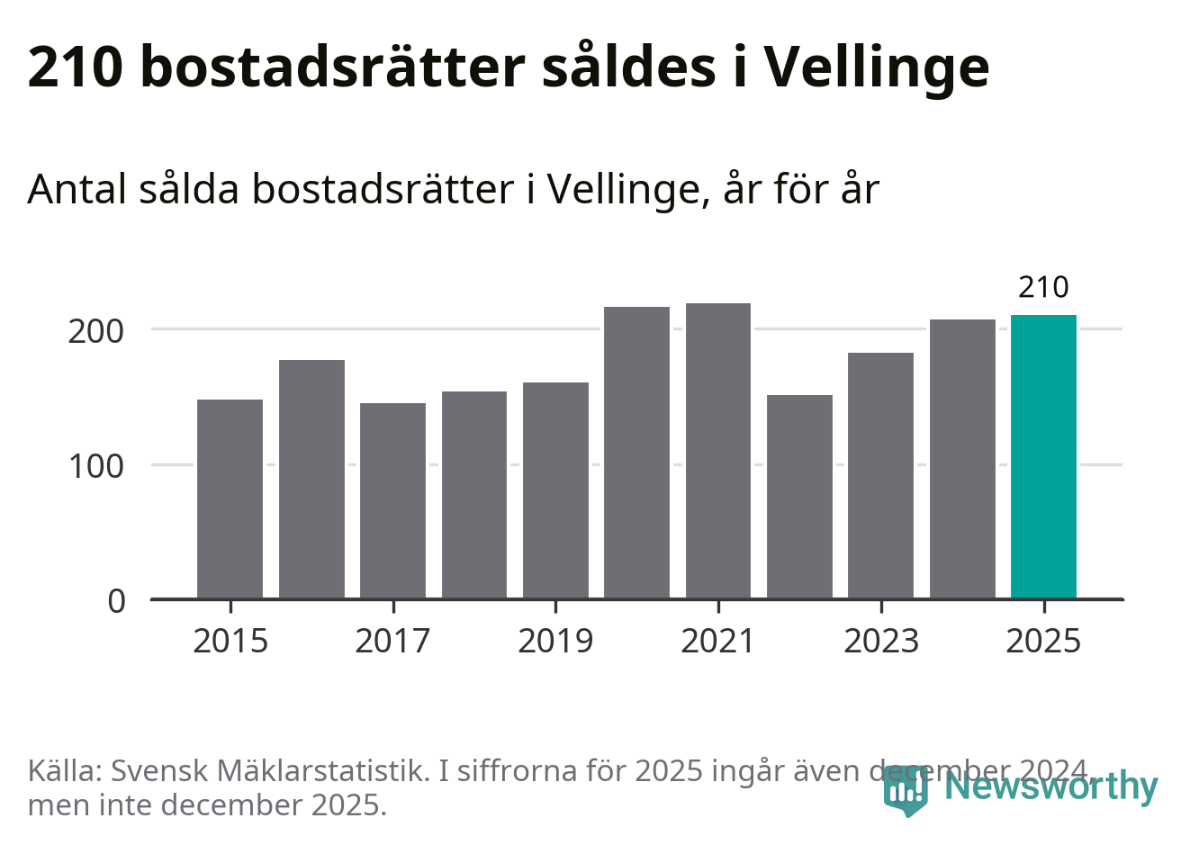 Det visar årsstatistik från Svensk Mäklarstatistik som Newsworthy har sammanställt.