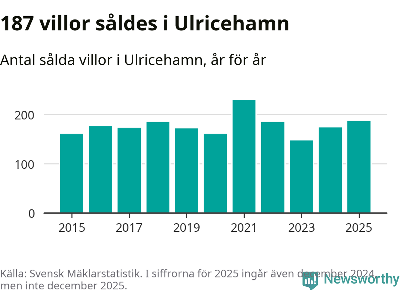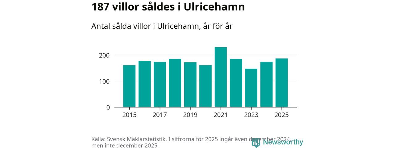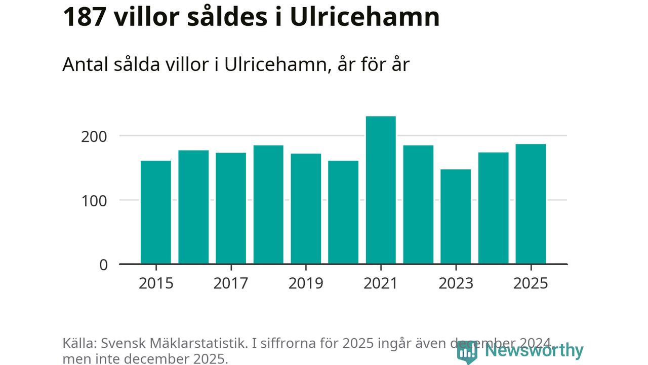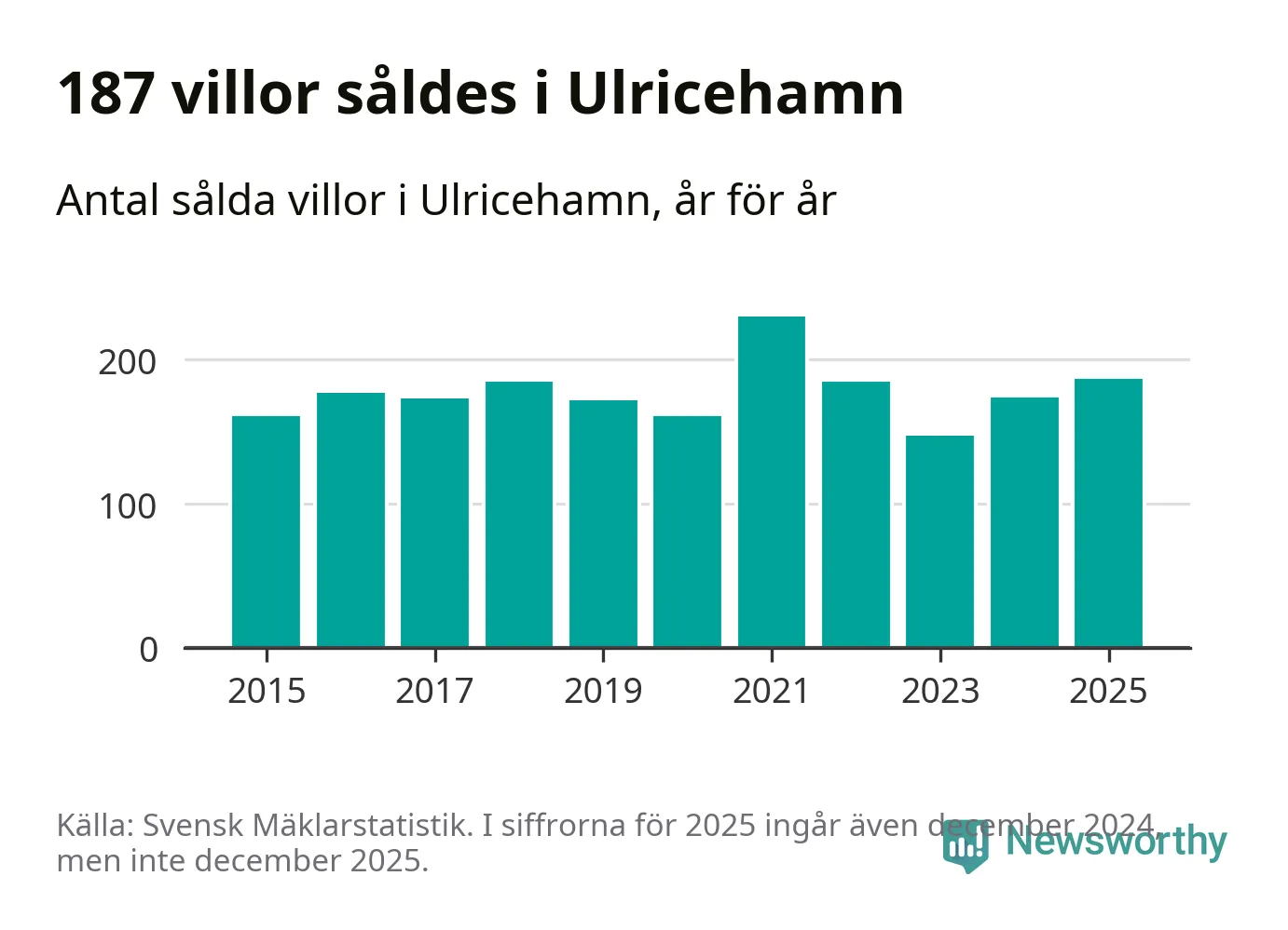 Däremot ökade antalet sålda villor. Totalt såldes 187 villor, att jämföra med 174 under 2024. Det är andra året i rad som antalet sålda villor ökar i kommunen.
