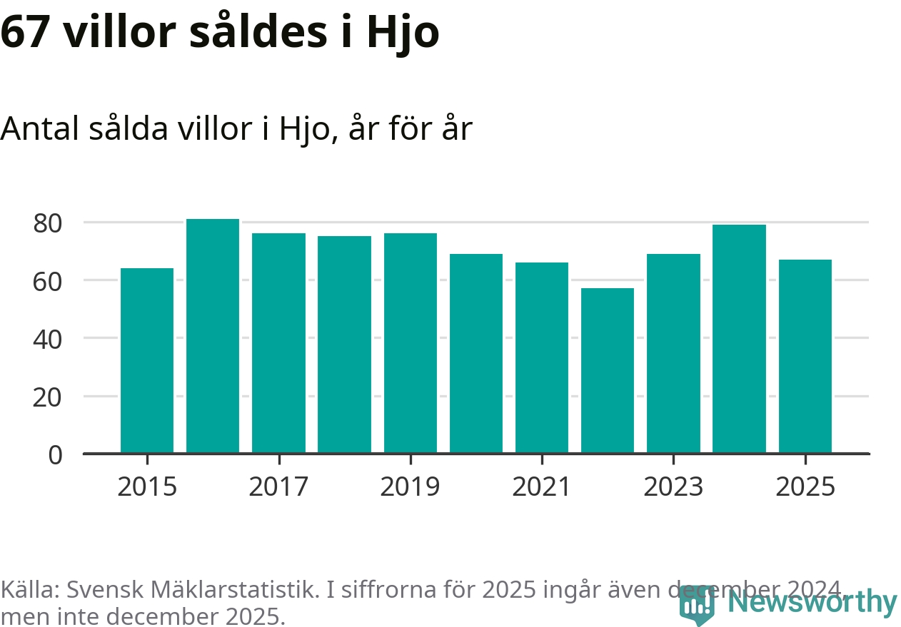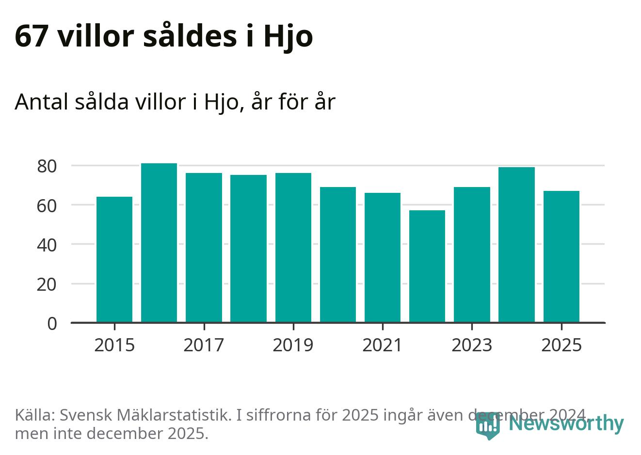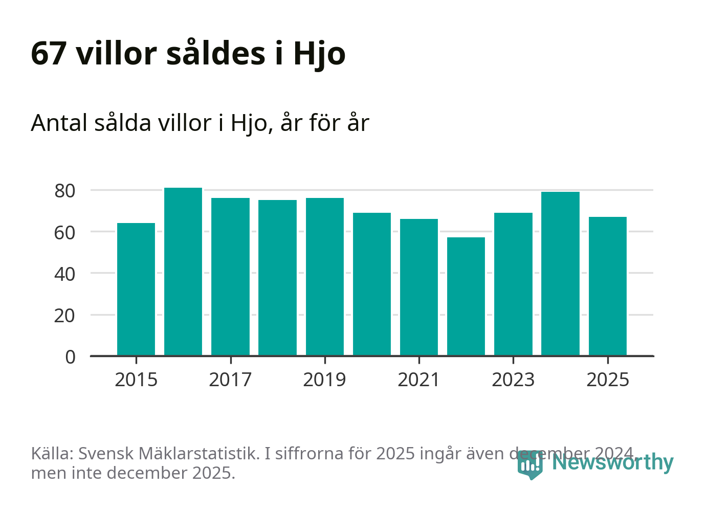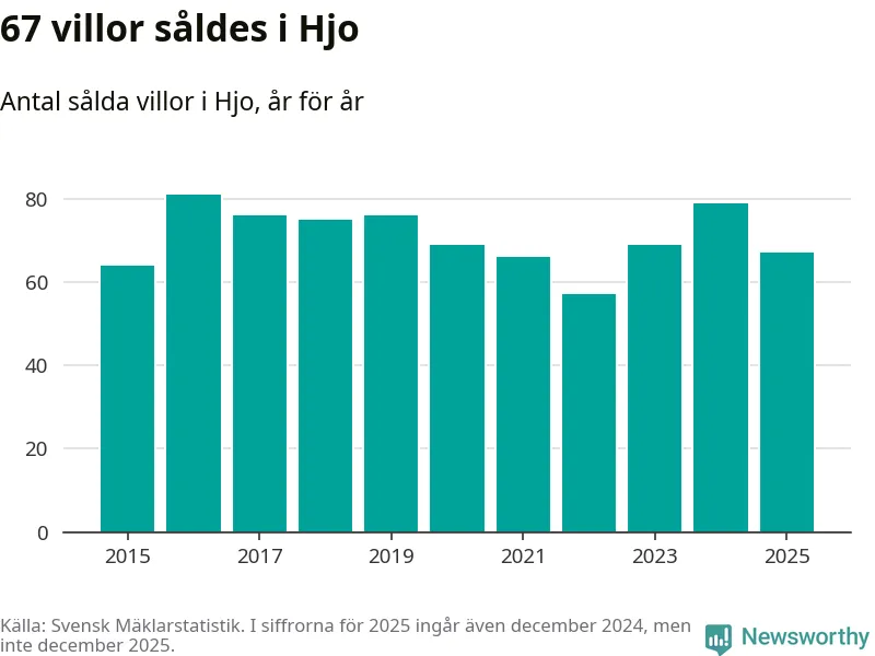 Däremot minskade antalet sålda villor. Totalt såldes 67 villor, att jämföra med 79 under 2024.