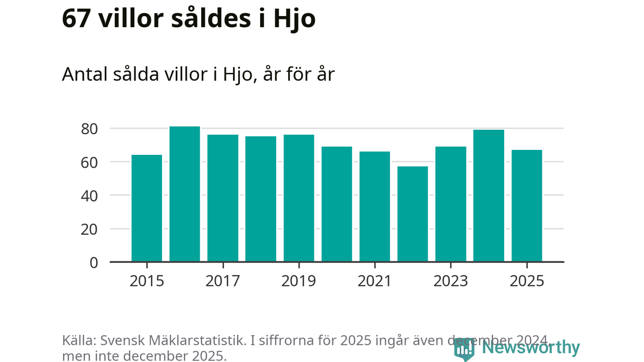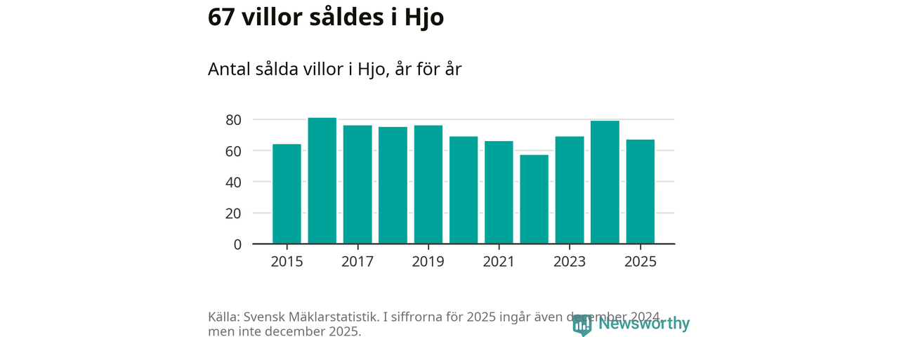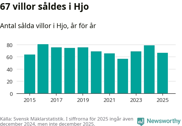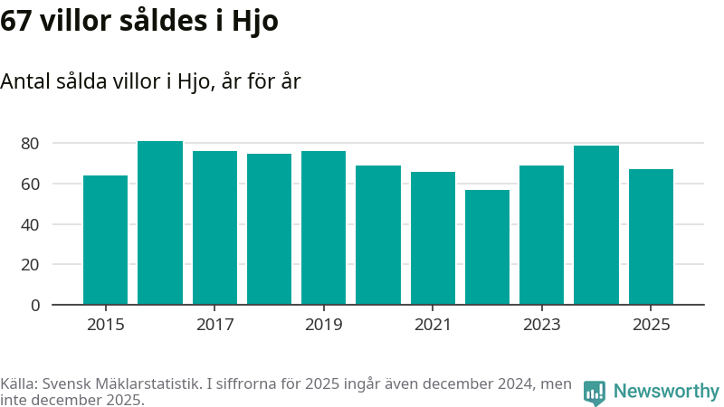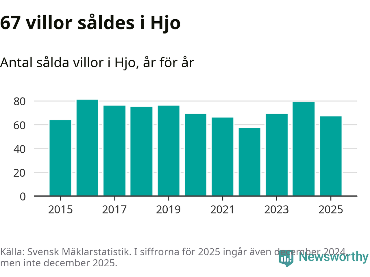 Däremot minskade antalet sålda villor. Totalt såldes 67 villor, att jämföra med 79 under 2024.