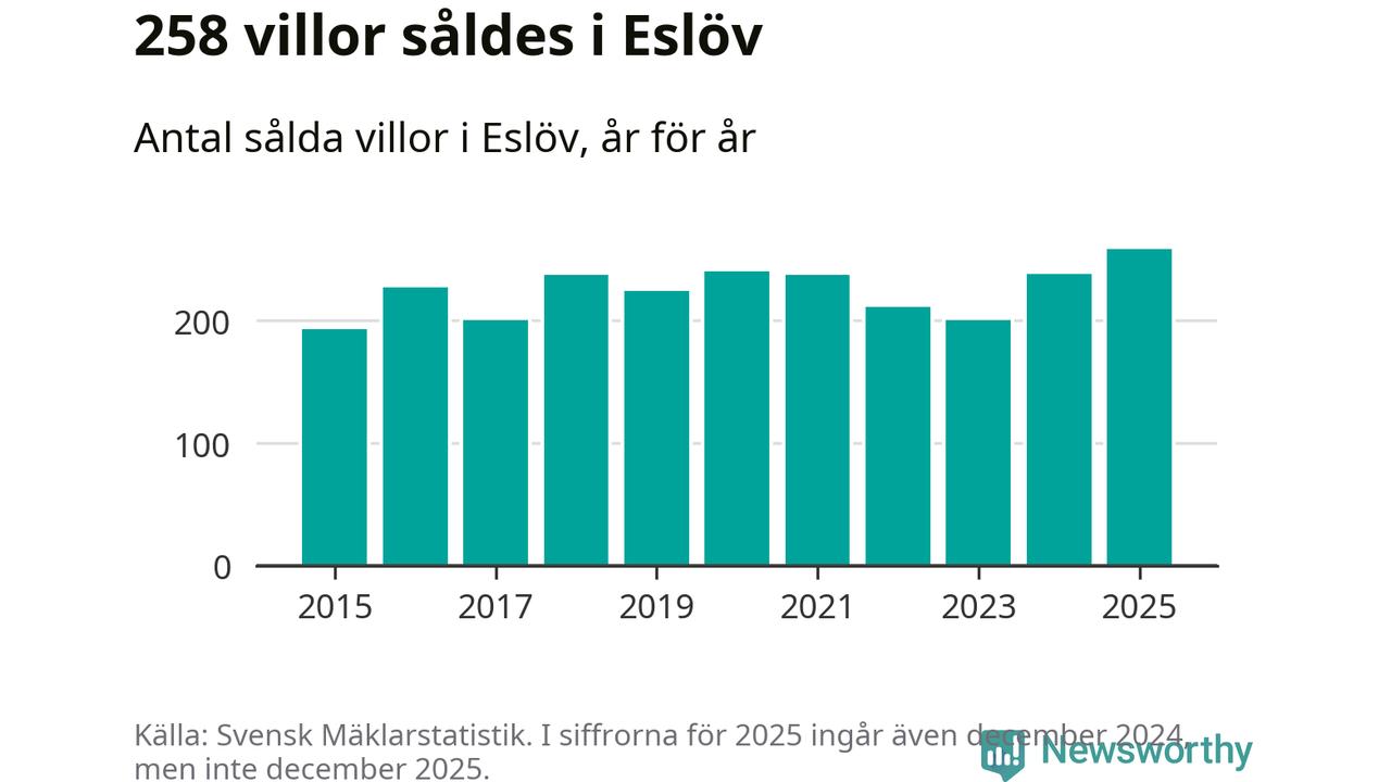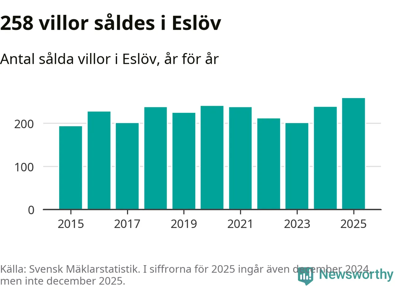 Bostadsmarknaden i Sverige närmar sig nivån före räntesmockan 2022. I Eslöv såldes fler villor än på över ett decennium.