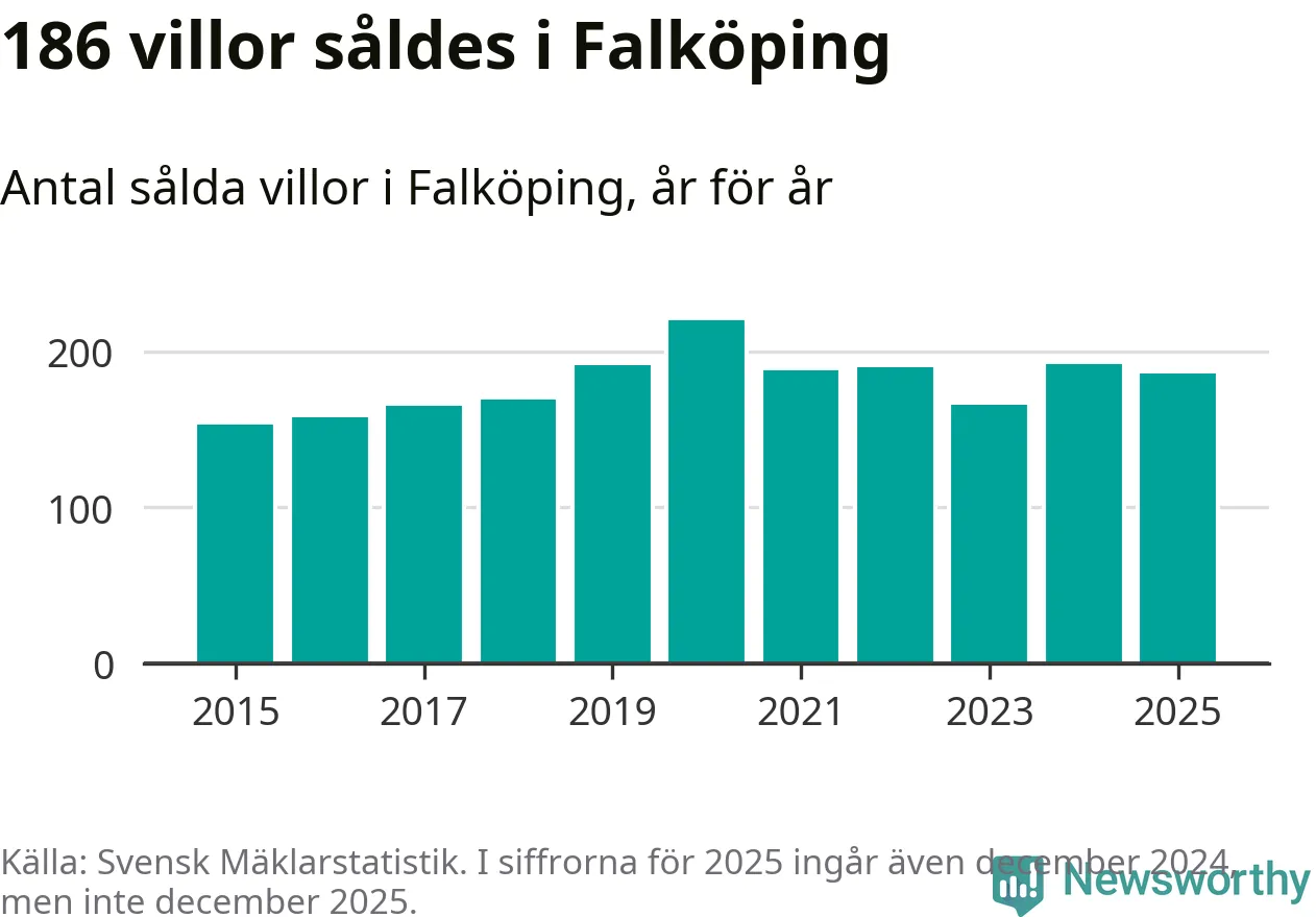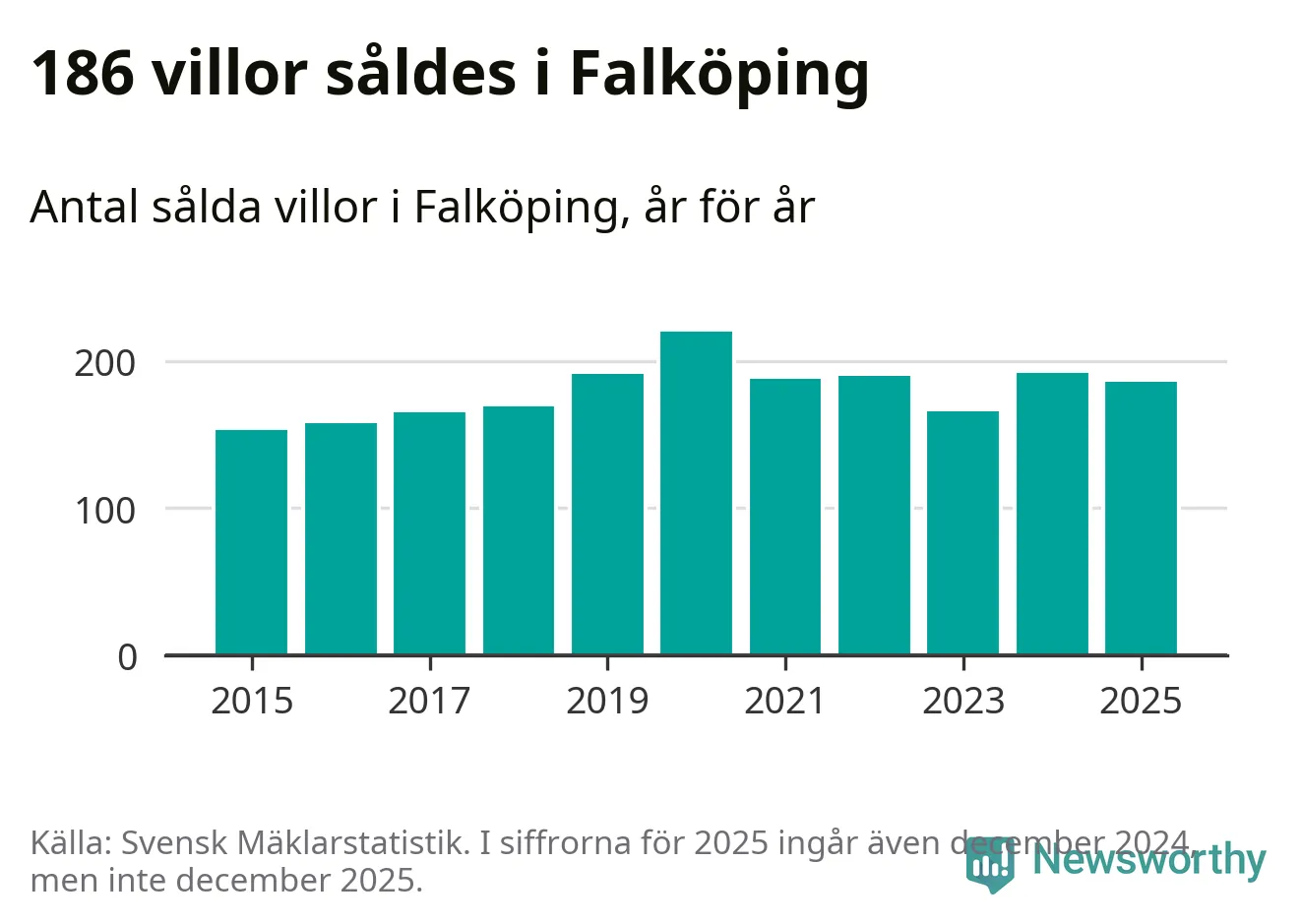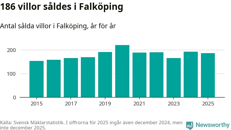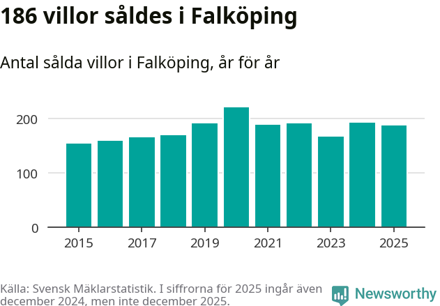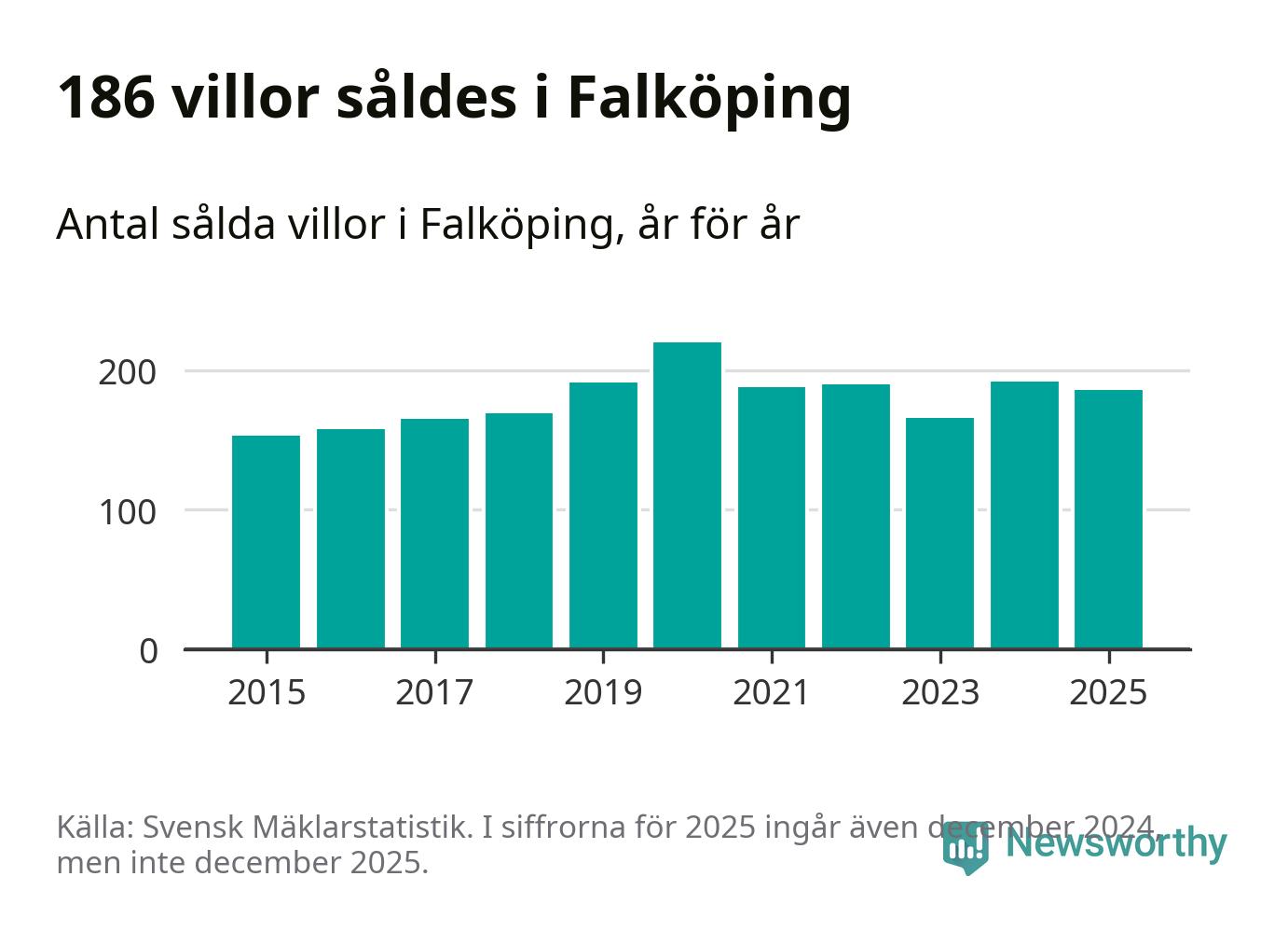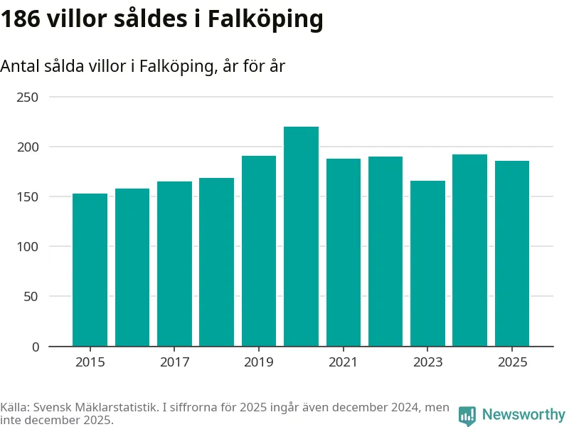 Däremot minskade antalet sålda villor. Totalt såldes 186 villor, att jämföra med 192 under 2024.