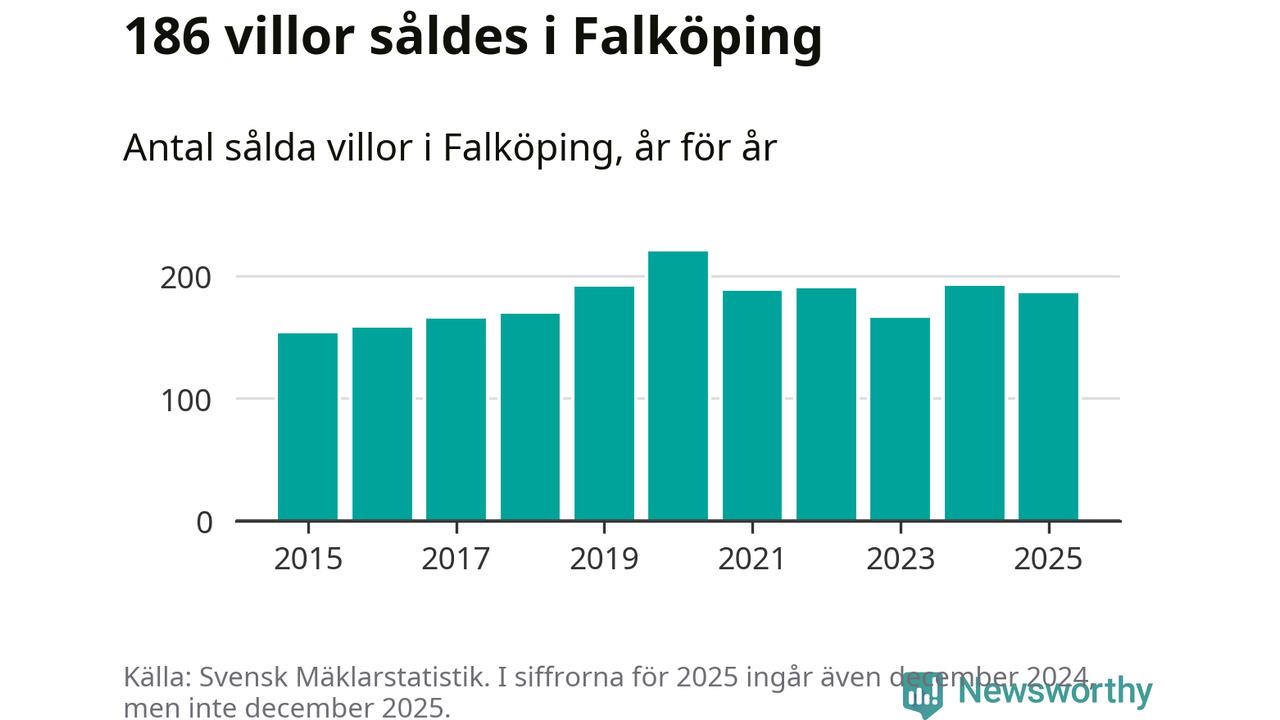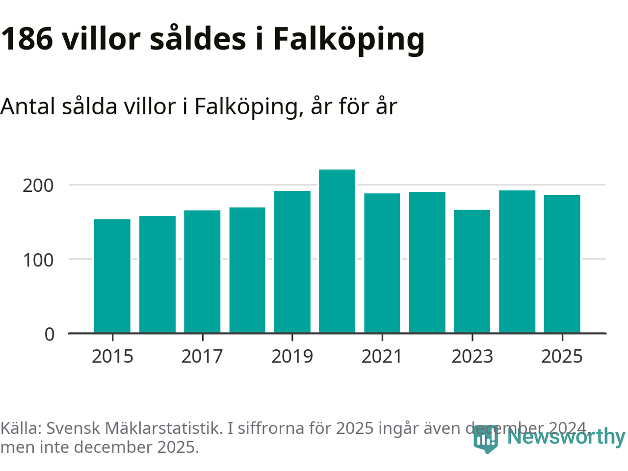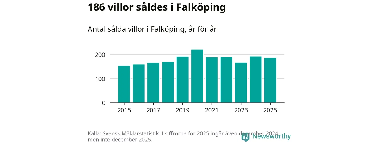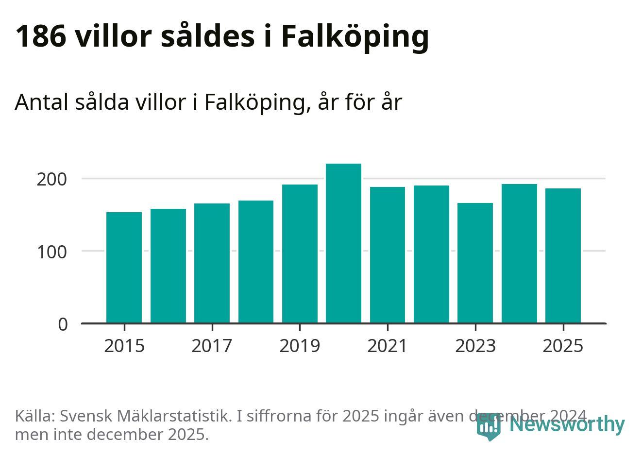 Däremot minskade antalet sålda villor. Totalt såldes 186 villor, att jämföra med 192 under 2024.