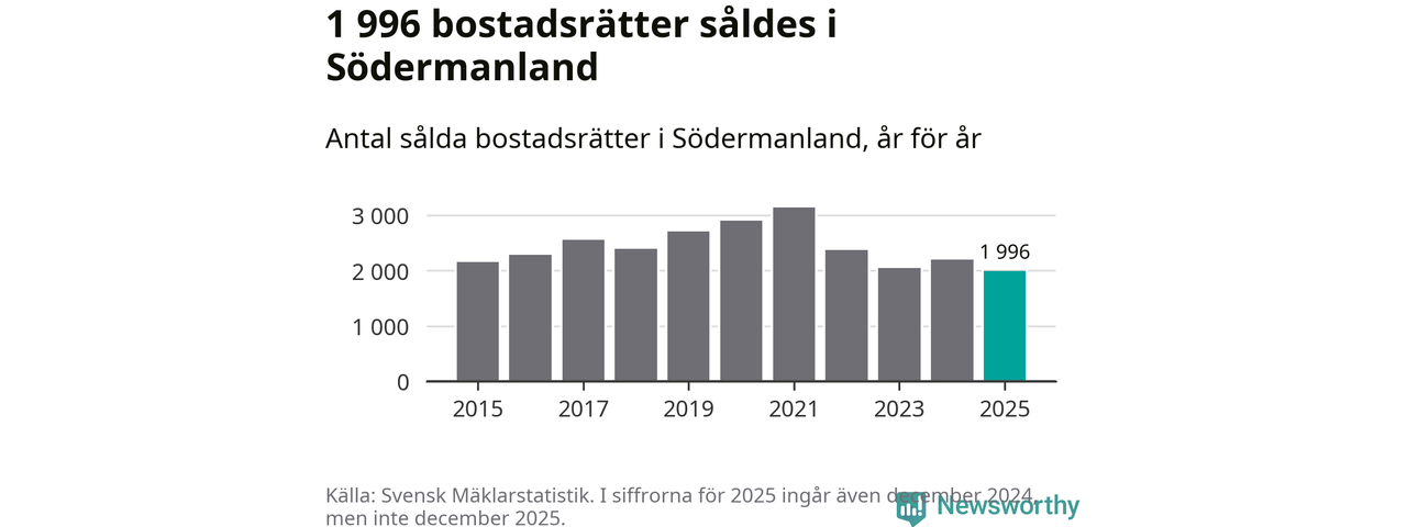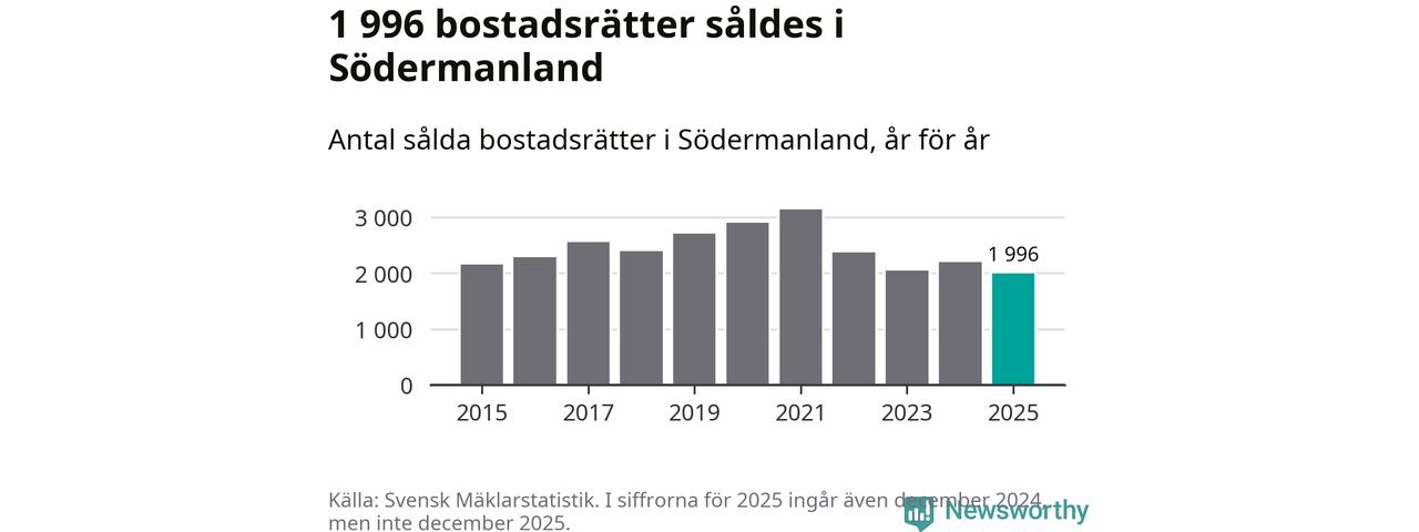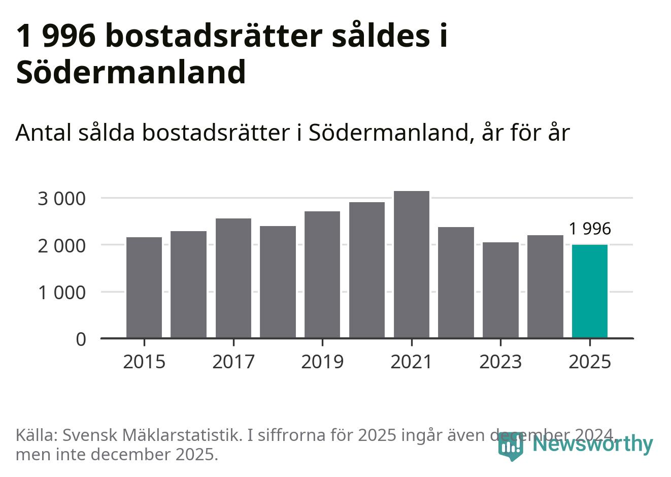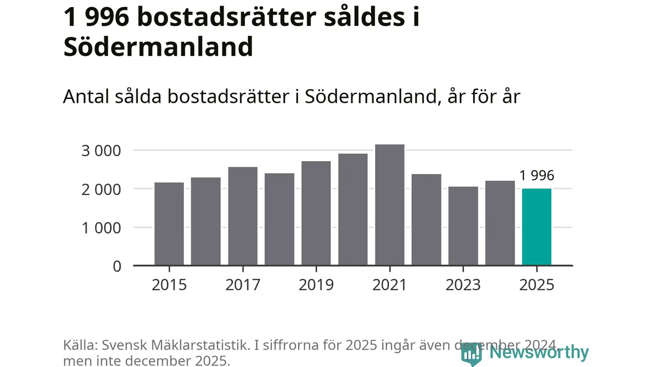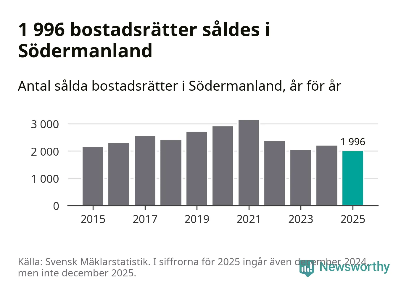 Så många bostadsrätter såldes i Södermanlands län 2025