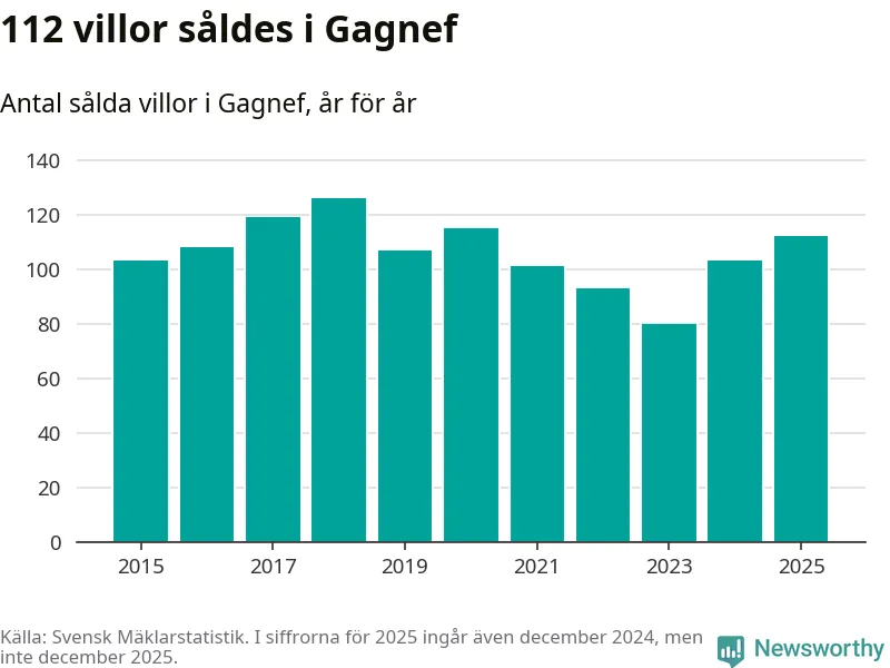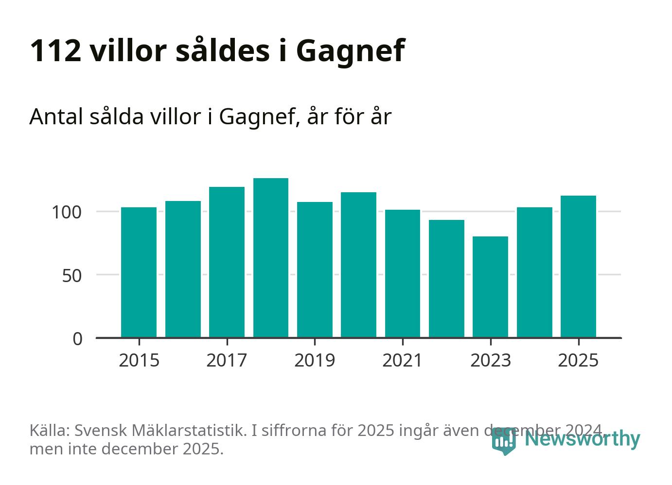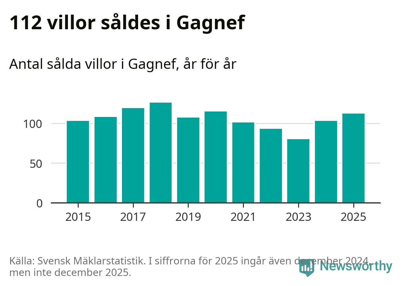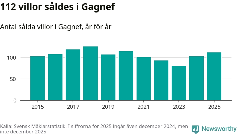 Antalet sålda villor ökade också. Totalt såldes 112 villor, att jämföra med 103 under 2024. Det är andra året i rad som antalet sålda villor ökar i kommunen.