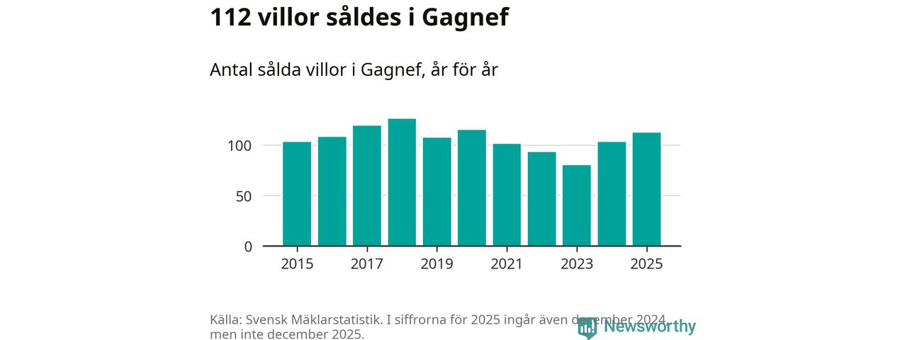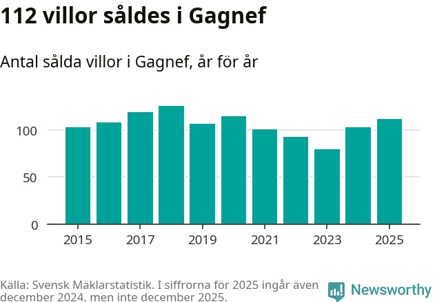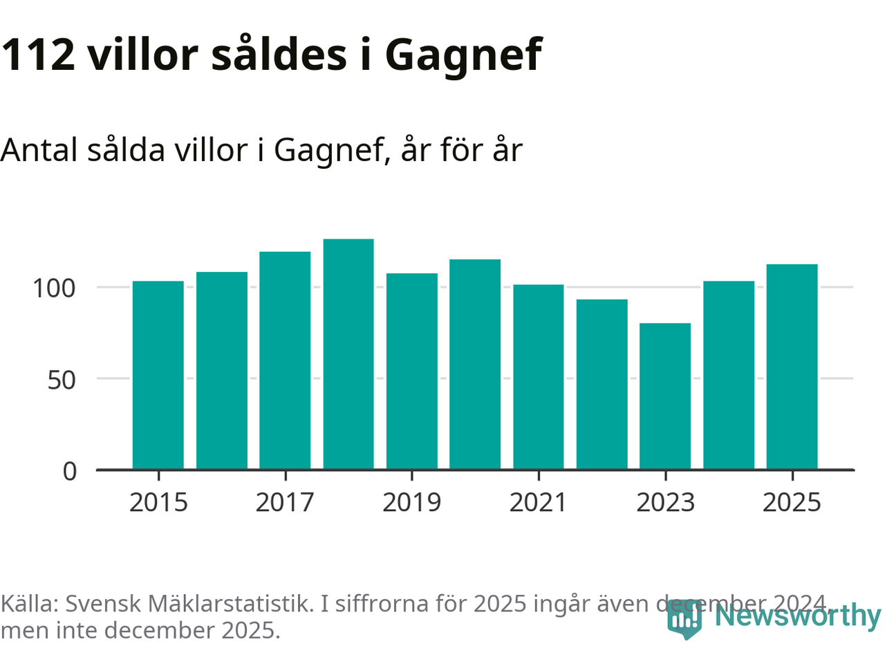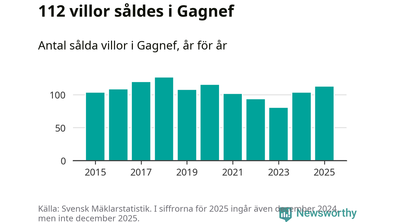 Antalet sålda villor ökade också. Totalt såldes 112 villor, att jämföra med 103 under 2024. Det är andra året i rad som antalet sålda villor ökar i kommunen.