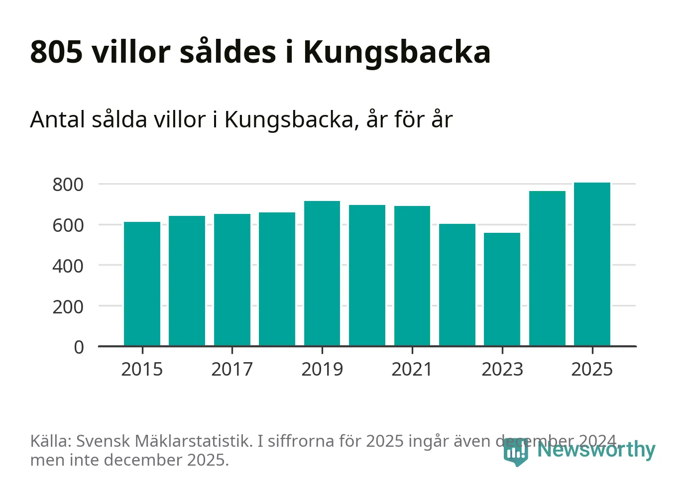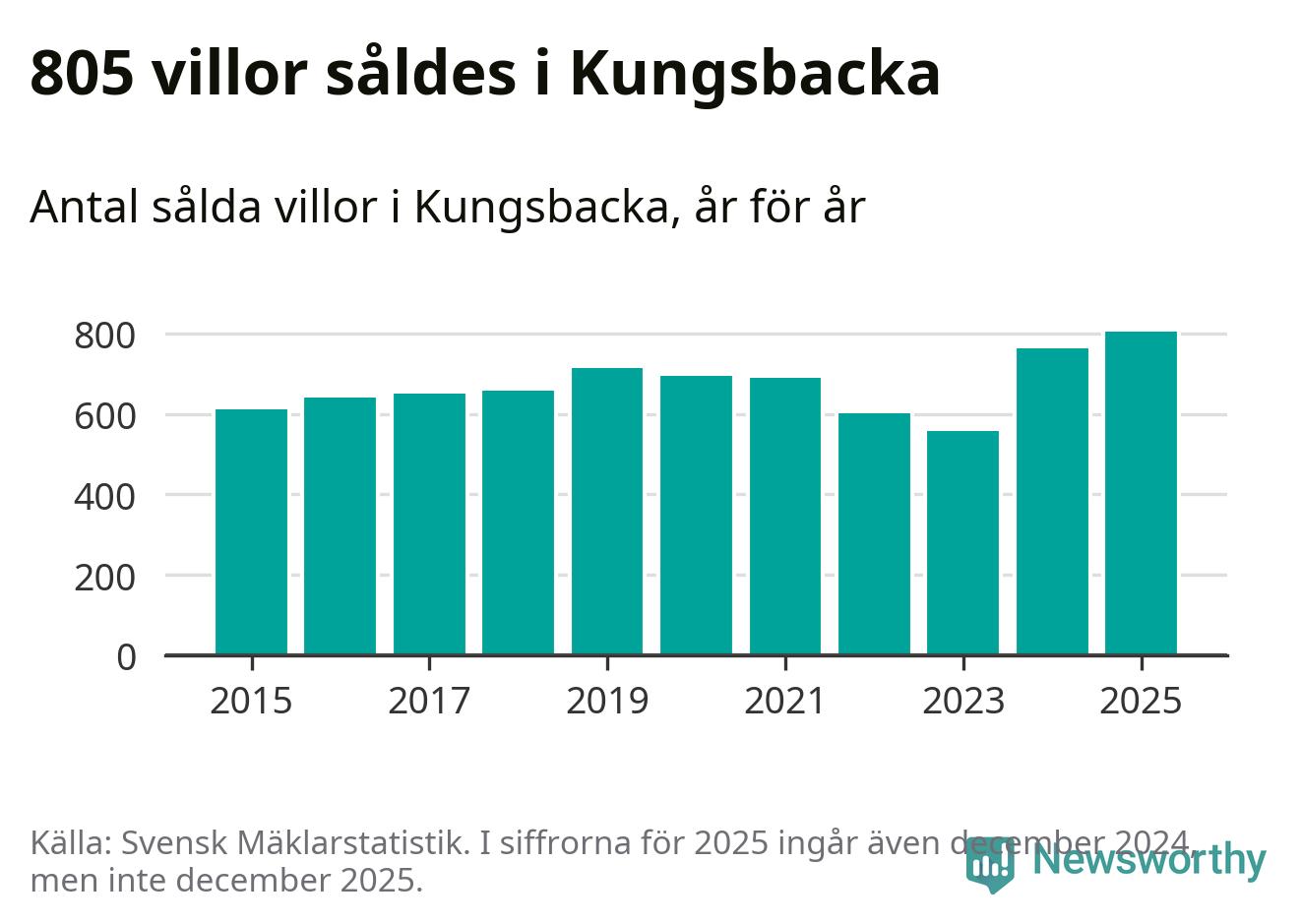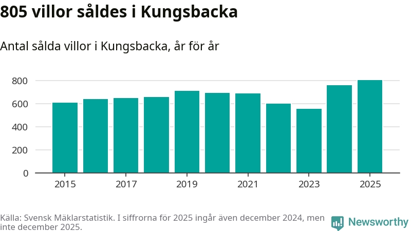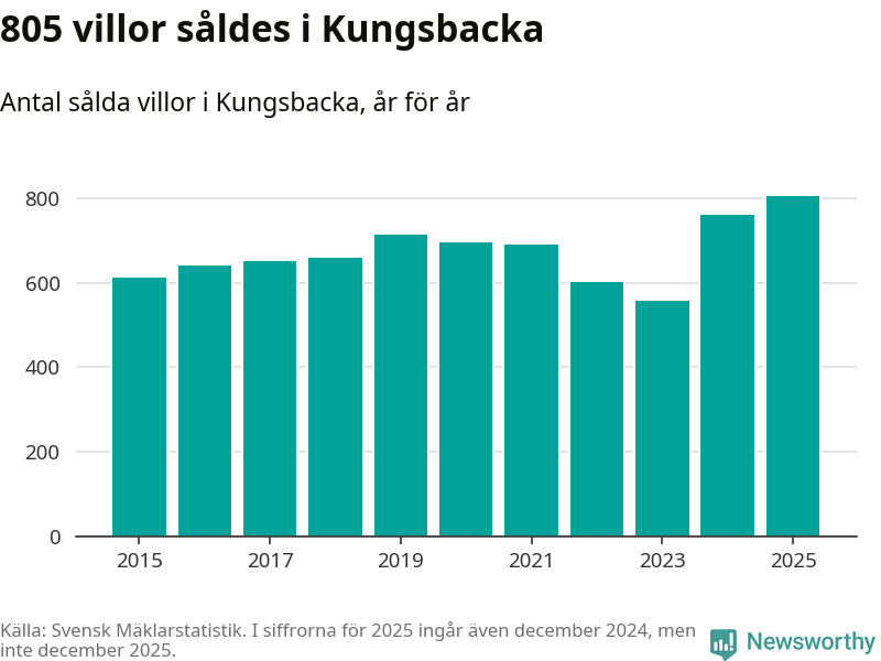 Antalet sålda villor ökade också. Totalt såldes 805 villor, att jämföra med 762 under 2024. Det är fler än något annat år sedan 2015.