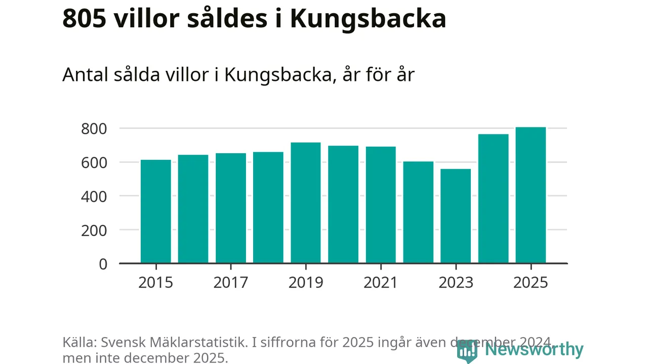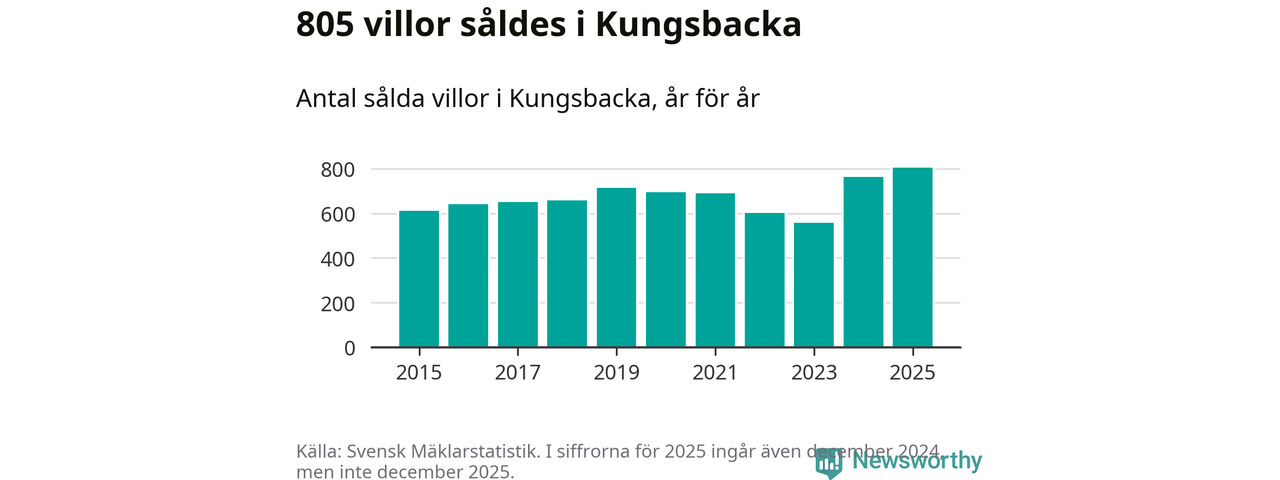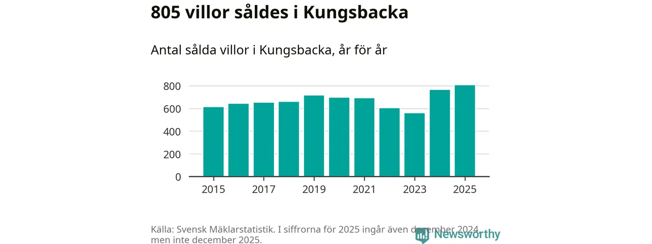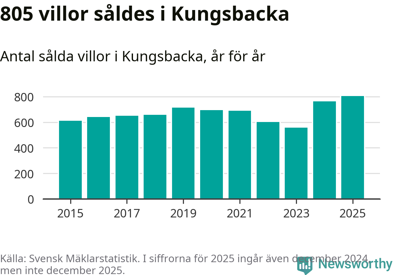 Antalet sålda villor ökade också. Totalt såldes 805 villor, att jämföra med 762 under 2024. Det är fler än något annat år sedan 2015.