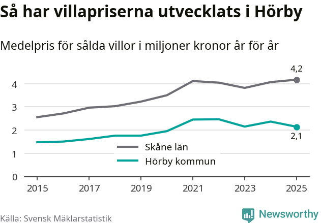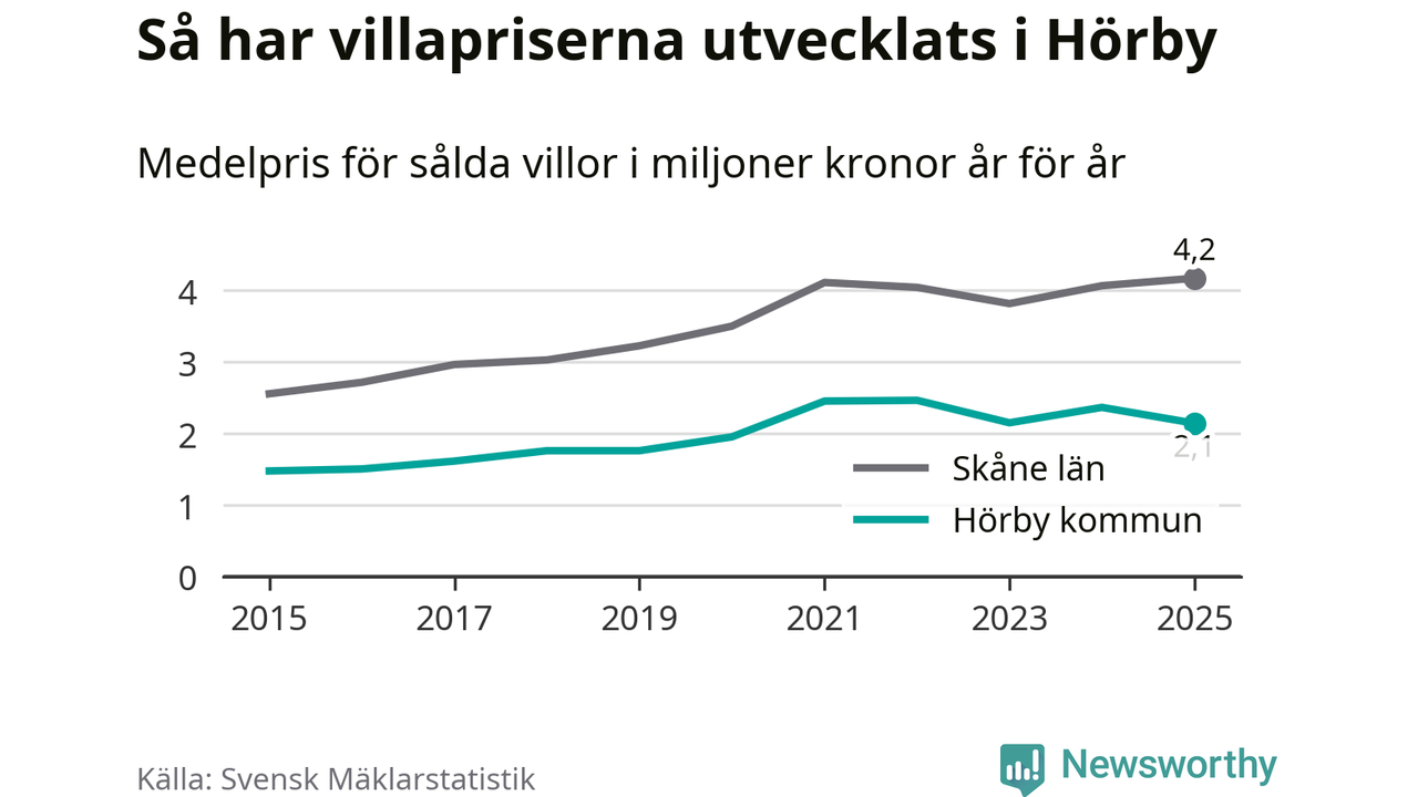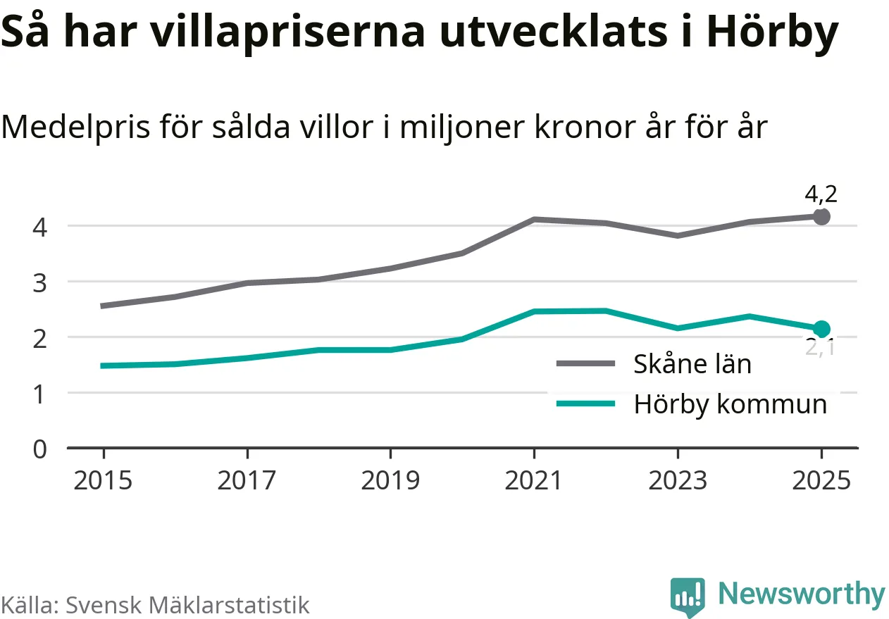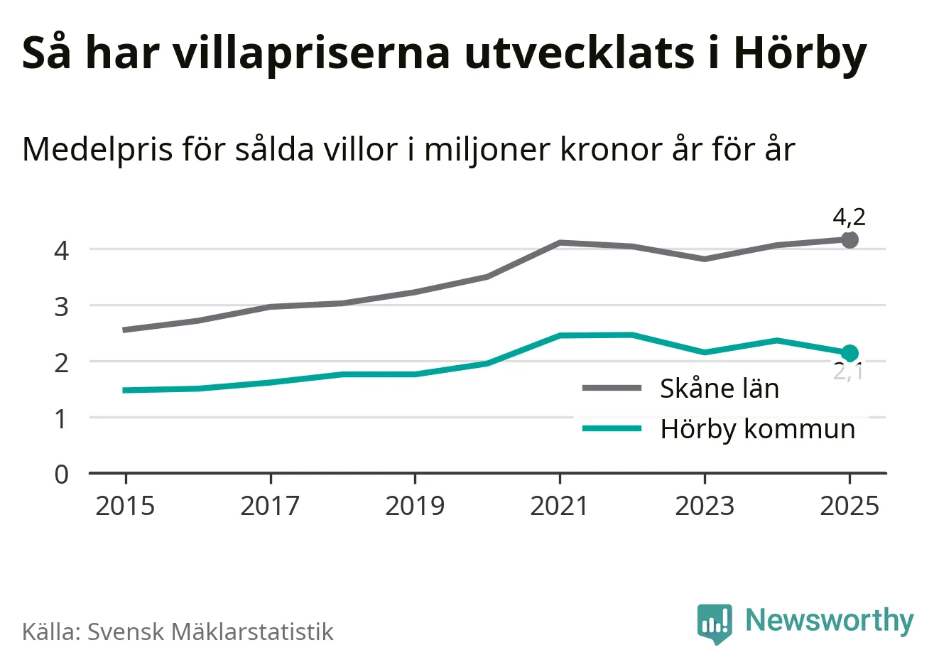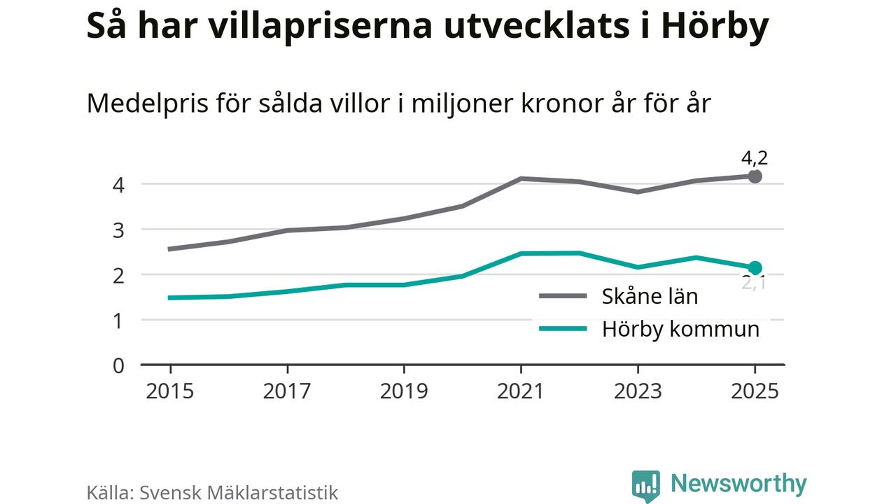 Bostadsmarknaden i Sverige närmar sig nivån före räntesmockan 2022. I Hörby sjönk dock villapriserna.