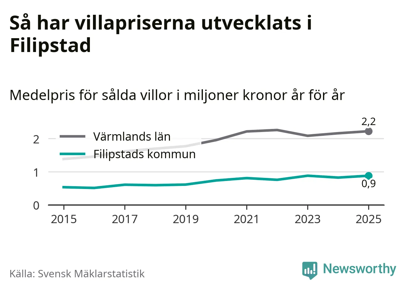 Bostadsmarknaden i Sverige närmar sig nivån före räntesmockan 2022. Även i Filipstad steg villapriserna.