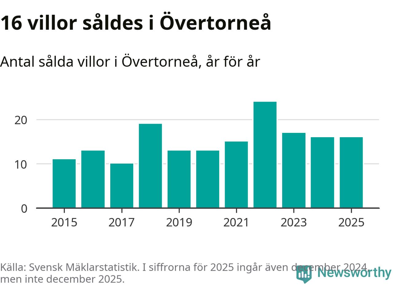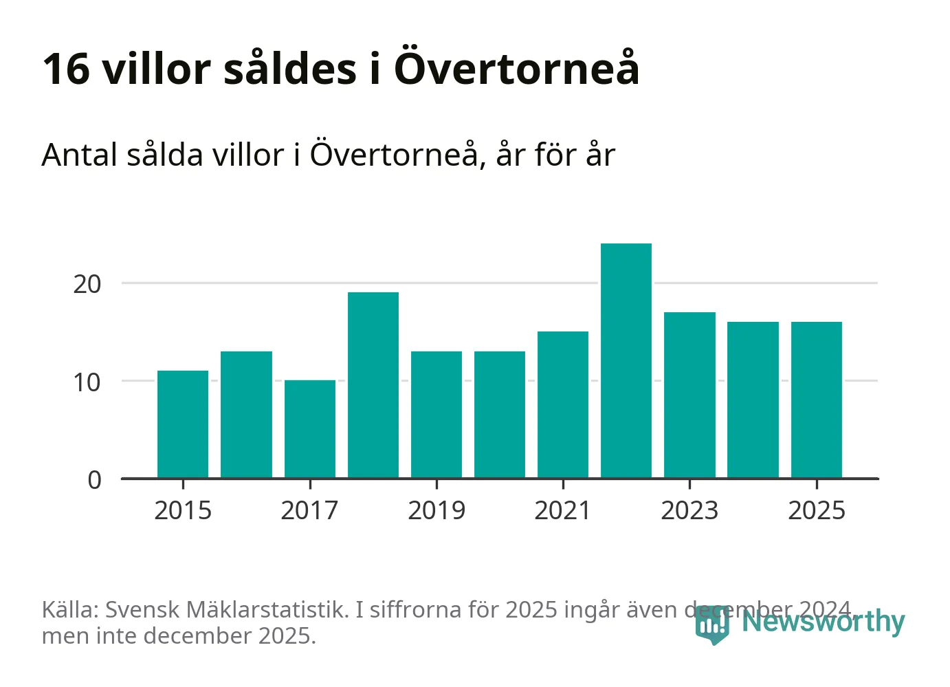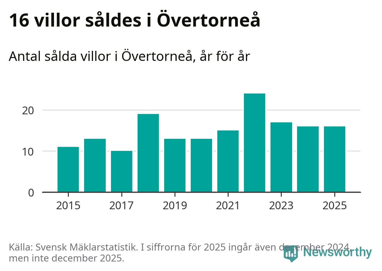 något. Totalt såldes 16 villor, vilket är lika många som året innan.Totalt såldes 16 villor, att jämföra med 16 under 2024.